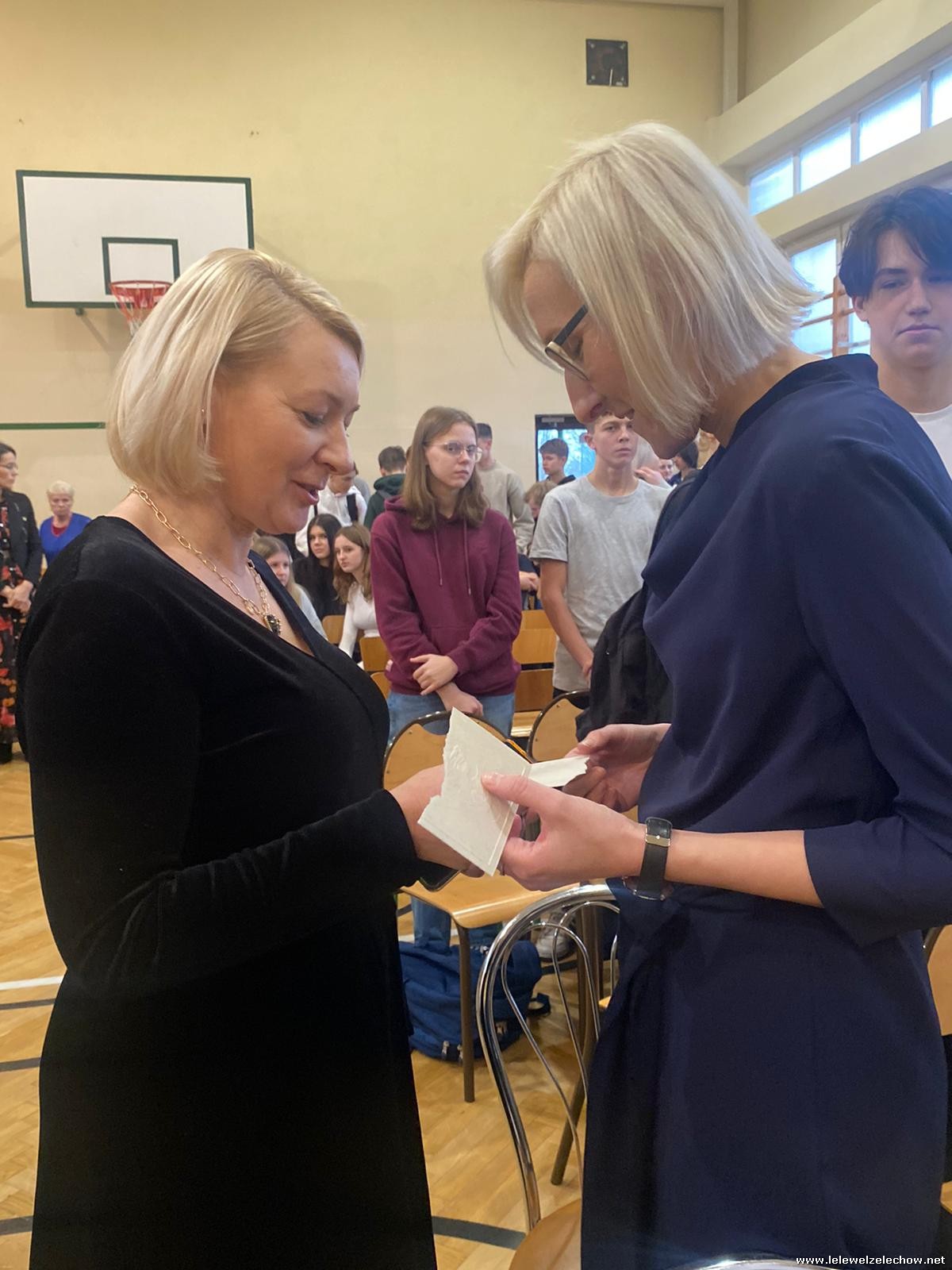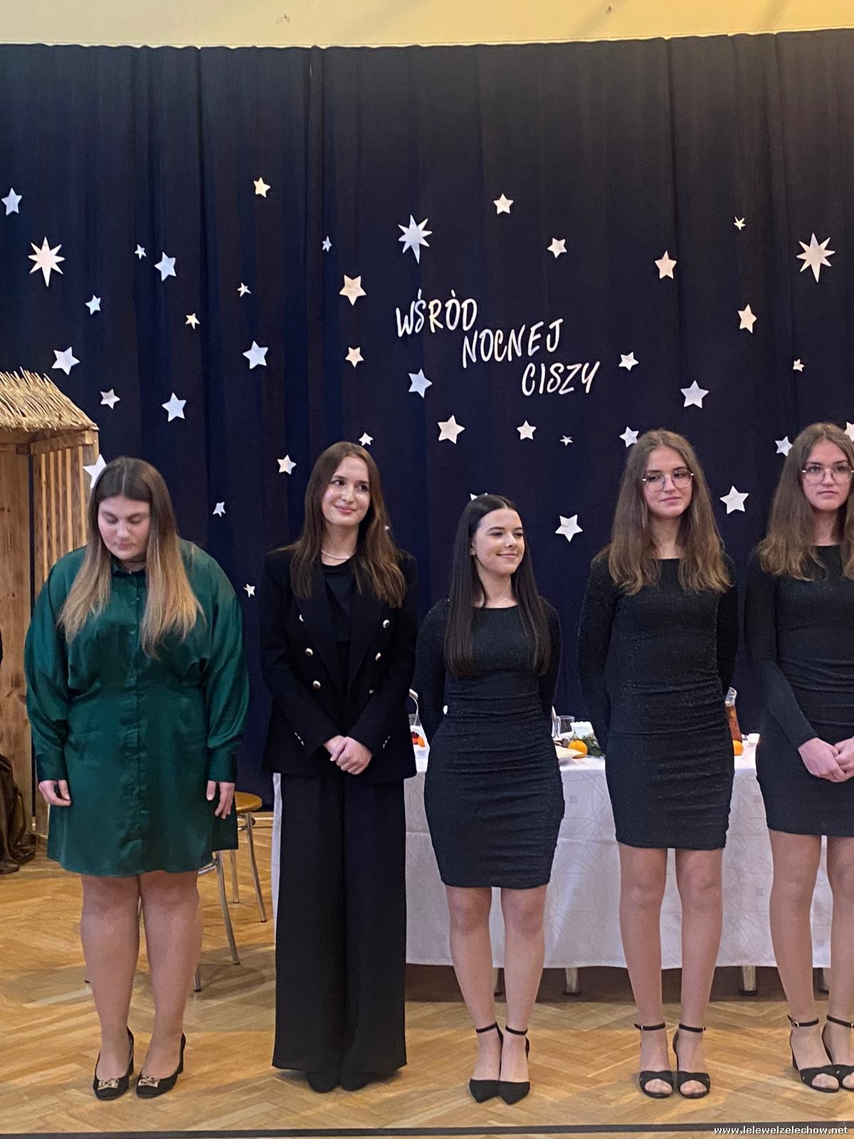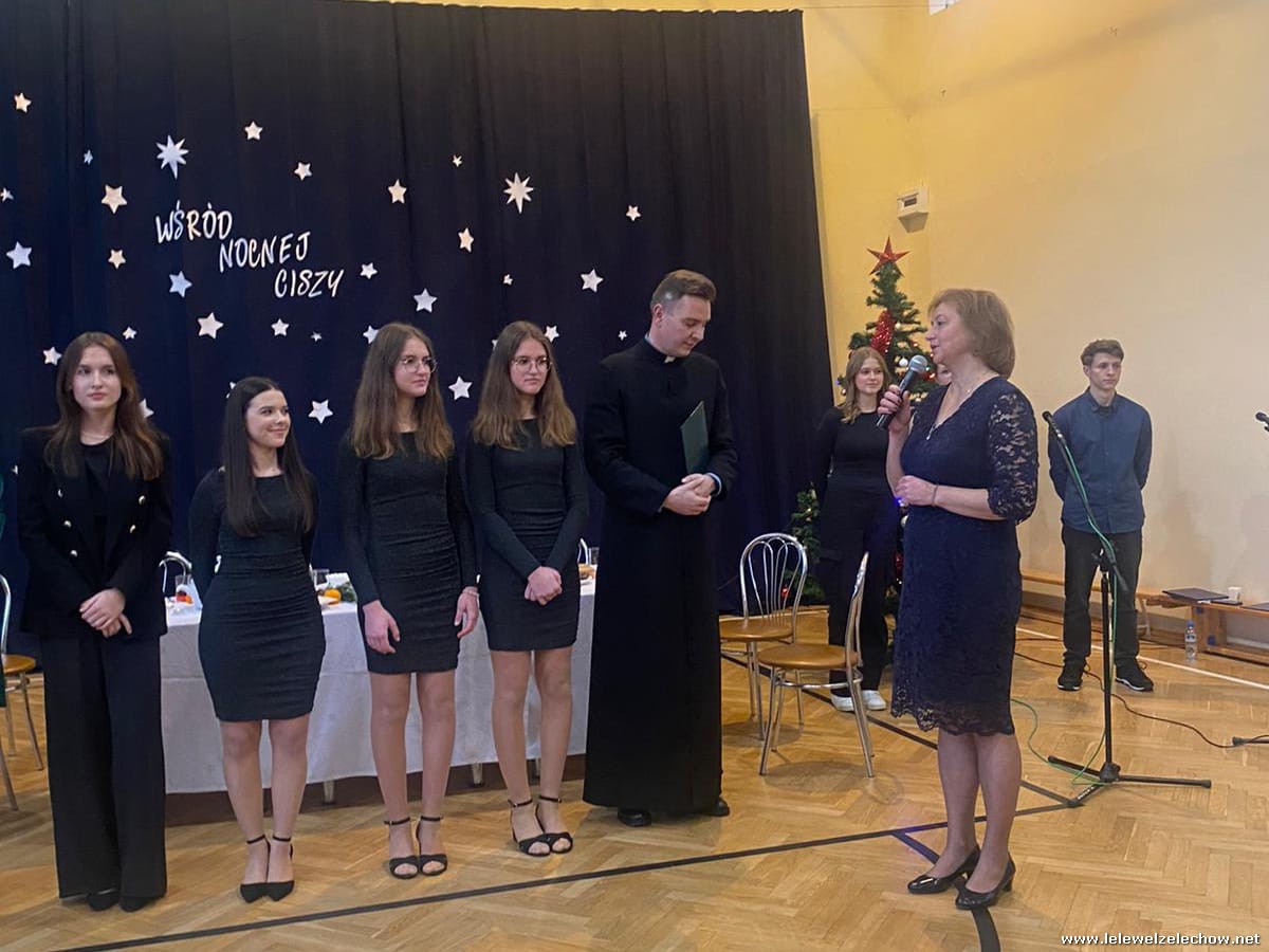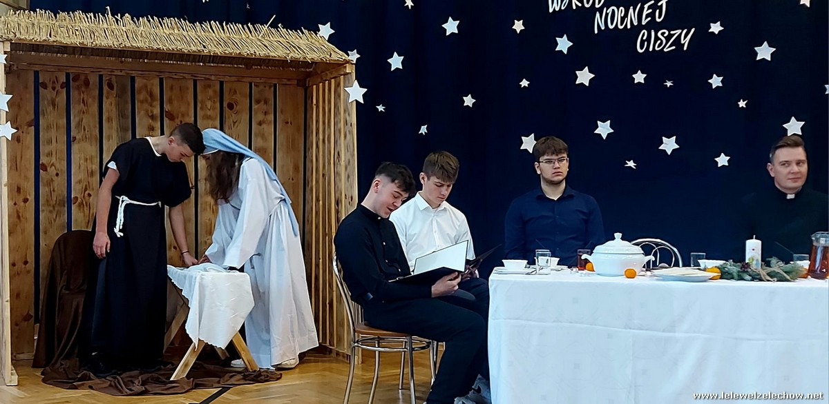 Tak było i tym razem. Piękny śpiew kolęd i pastorałek wprowadził nas w świąteczny nastrój, a ksiądz Mariusz z uczniami klas III przypomniał nam świąteczne tradycje, np. dlaczego na święta ubiera się choinkę, skąd wziął się zwyczaj obdarowywania innych prezentami i jaką symbolikę niesie ze sobą pusty talerz na wigilijnym stole. Przygotowany program i życzenia, które złożyli: obecny na uroczystości pan Łukasz Bogusz – burmistrz Żelechowa, pani dyrektor, ksiądz Mariusz, samorząd szkolny zachęcały do tego, aby nie koncentrować się na tym, co zewnętrzne, ale spojrzeć głębiej – w siebie, w drugiego człowieka. I – tak jak to było śpiewane podczas spotkania - „choć tyle żalu w nas i gniew uśpiony trwa, przekażmy sobie znak pokoju, przekażmy sobie znak”. Może właśnie po to jest Wigilia.