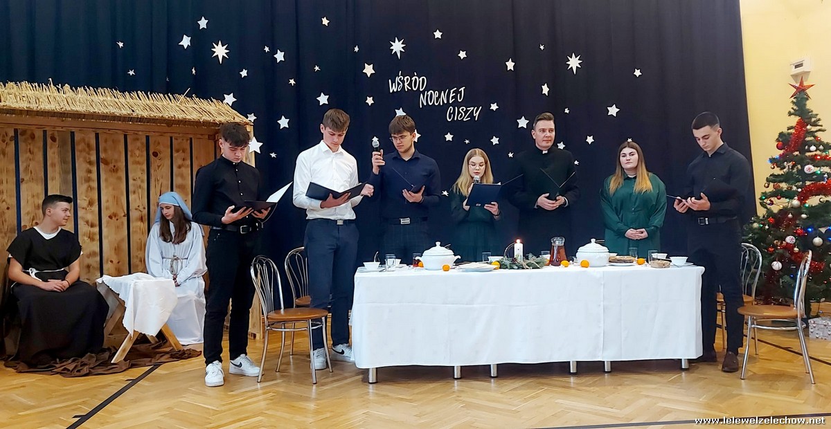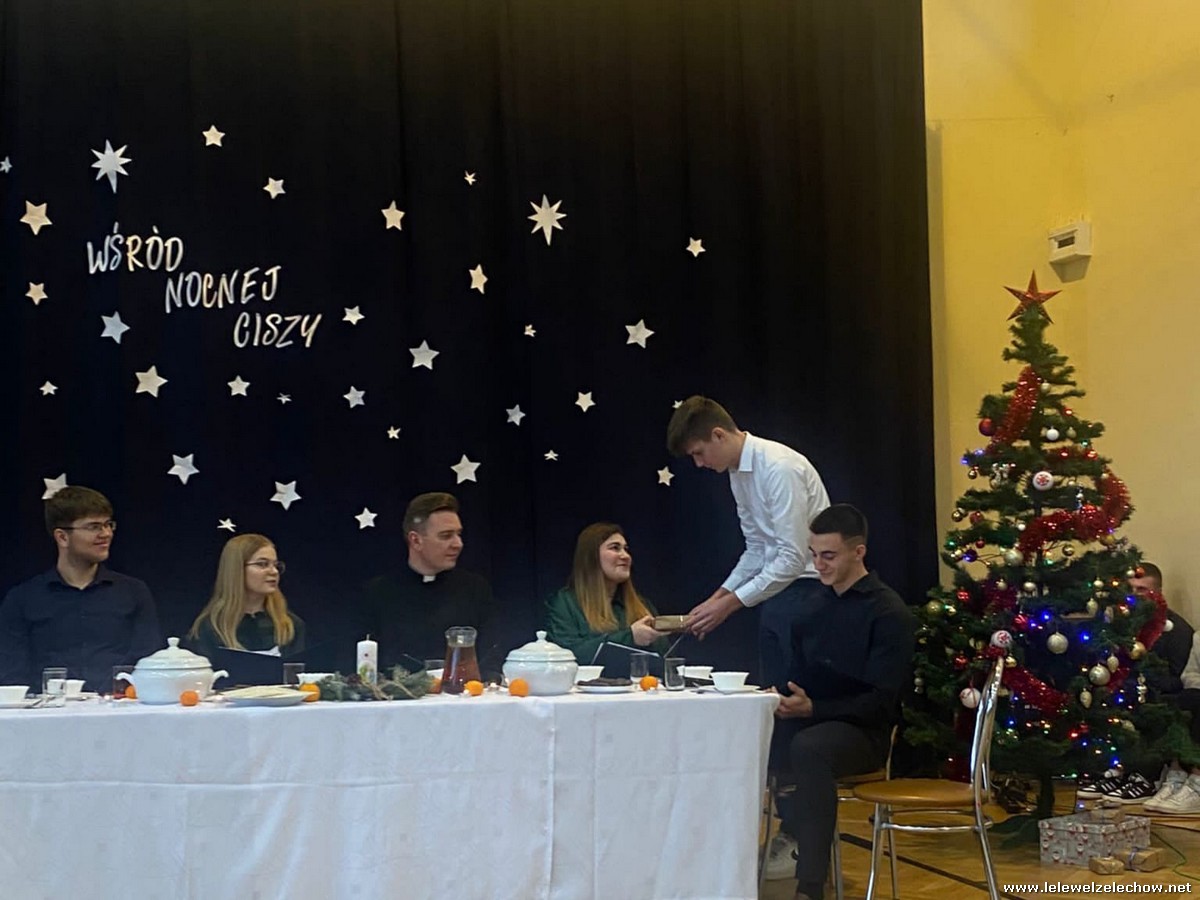 Szkolne Wigilie mają swój urok i niepowtarzalny klimat. Ten dzień tuż przed świętami Bożego Narodzenia zawsze w naszej szkole jest wyjątkowy. Społeczność Lelewela spotyka się na sali gimnastycznej, by wspólnie śpiewać kolędy, przełamać się opłatkiem i obejrzeć program artystyczny przygotowany przez młodzież.