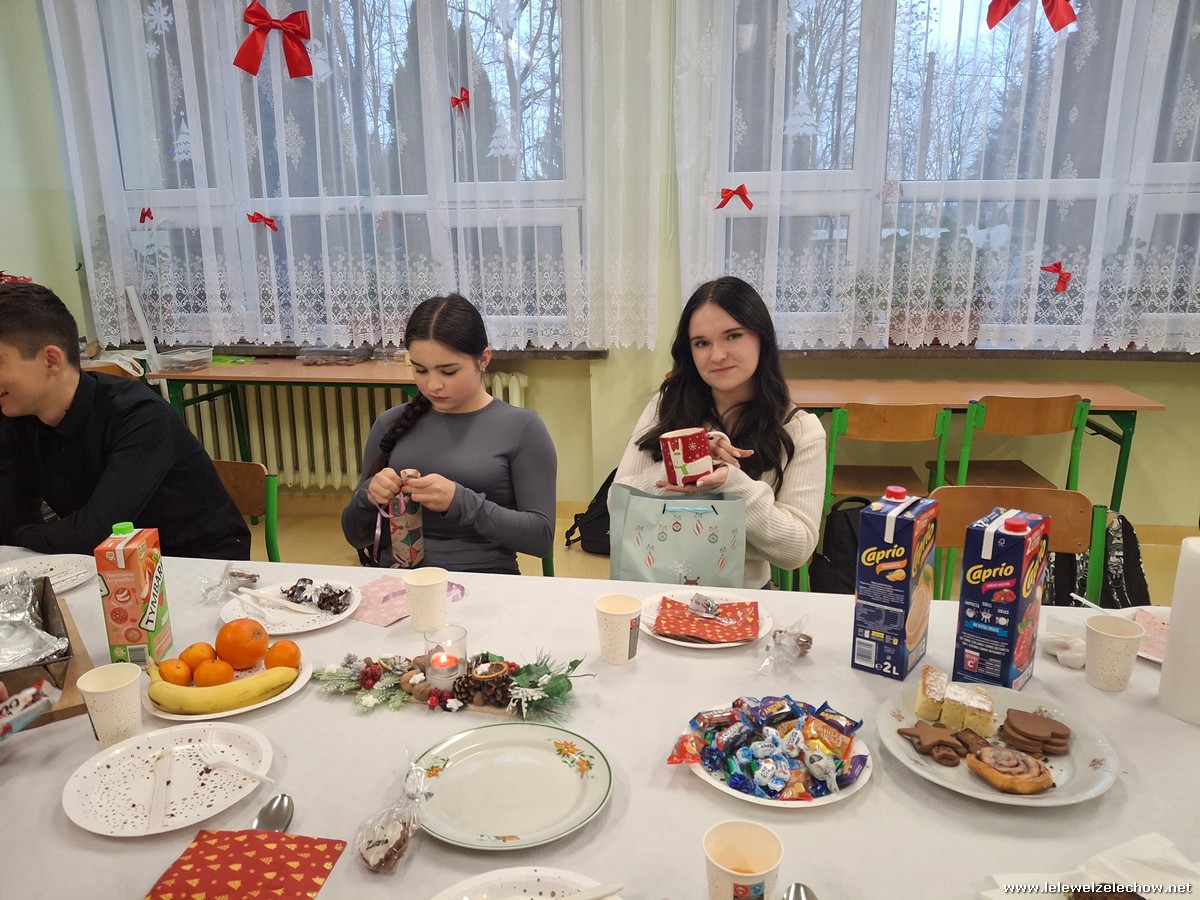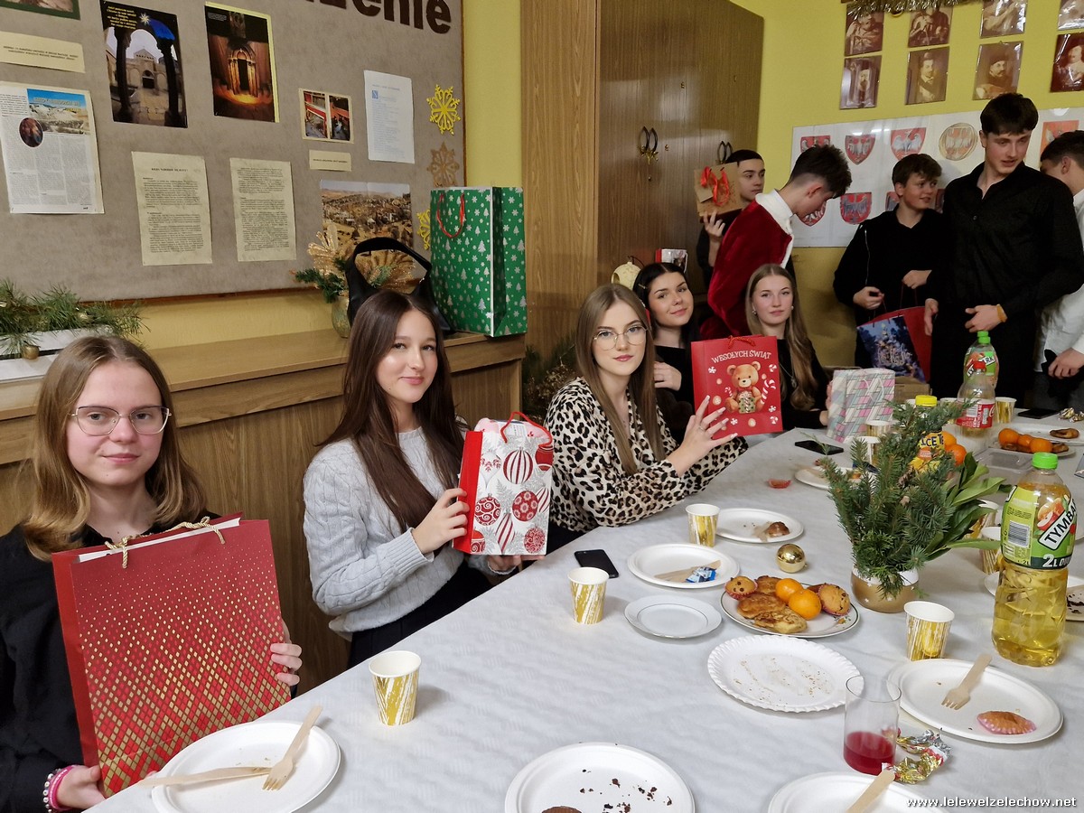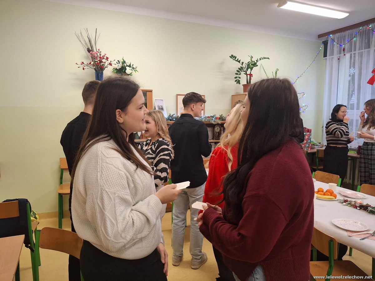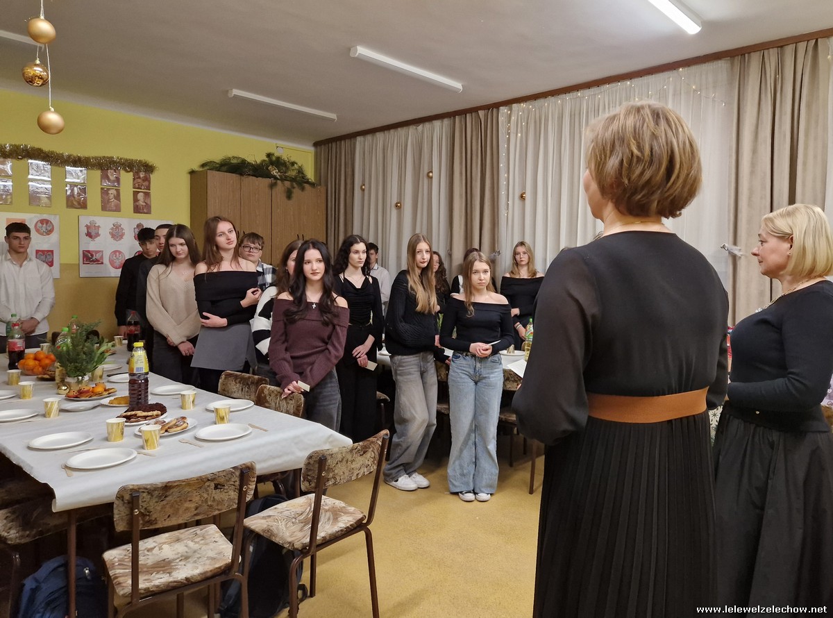 Już po raz drugi w liceum w odświętnej radosnej atmosferze klasa 2c spotyka się aby złożyć sobie życzenia, połamać się opłatkiem i przy wigilijnych potrawach świętować zbliżające się Boże Narodzenie. Gośćmi tegorocznej wigilii klasowej były: pani Dyrektor Sylwia Tomaszek i pani pedagog Anna Majewska oraz ,,nieoczekiwany gość” - Dominik. Święty Mikołaj obdarował wszystkich prezentami a z sali do godzin wieczornych dobiegał radosny szum i śpiew kolęd…