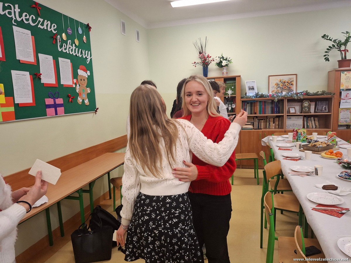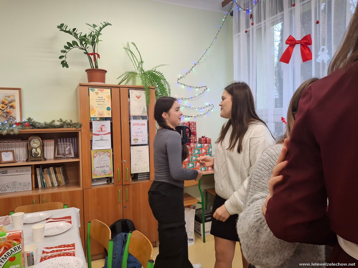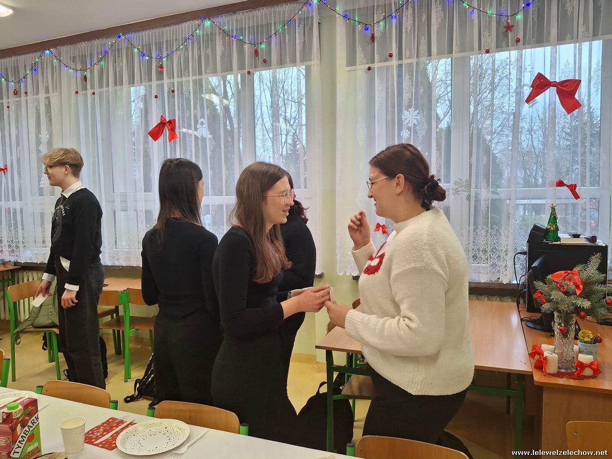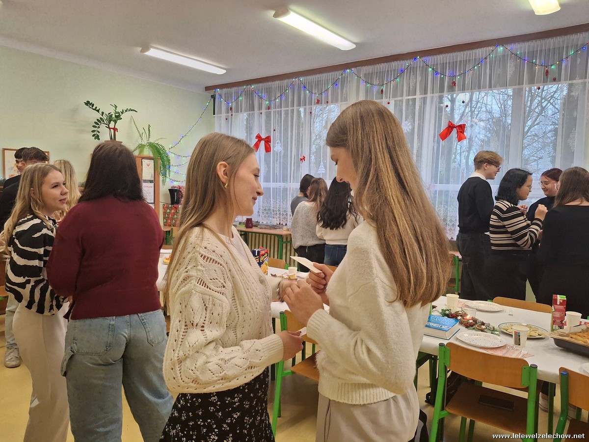 Już po raz drugi w liceum w odświętnej radosnej atmosferze klasa 2c spotyka się aby złożyć sobie życzenia, połamać się opłatkiem i przy wigilijnych potrawach świętować zbliżające się Boże Narodzenie. Gośćmi tegorocznej wigilii klasowej były: pani Dyrektor Sylwia Tomaszek i pani pedagog Anna Majewska oraz ,,nieoczekiwany gość” - Dominik. Święty Mikołaj obdarował wszystkich prezentami a z sali do godzin wieczornych dobiegał radosny szum i śpiew kolęd…