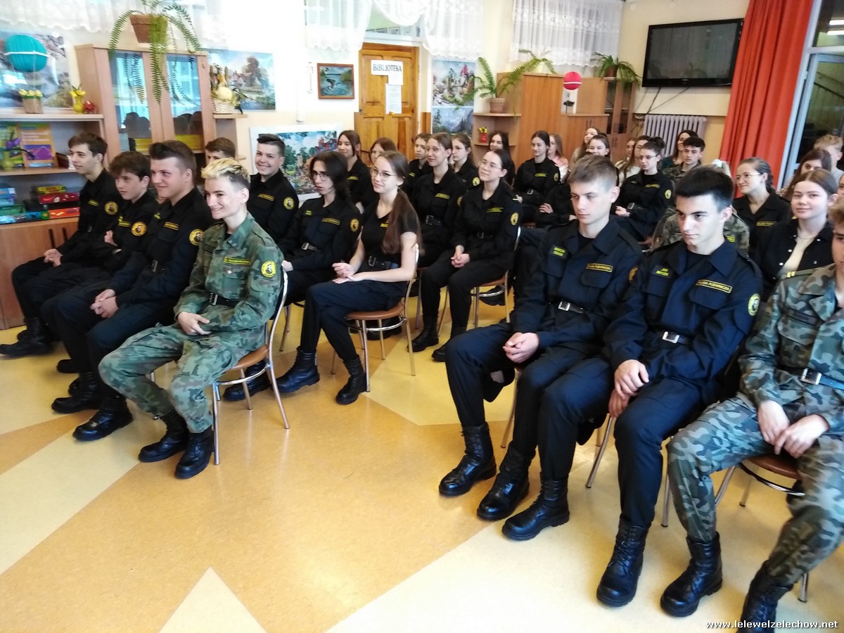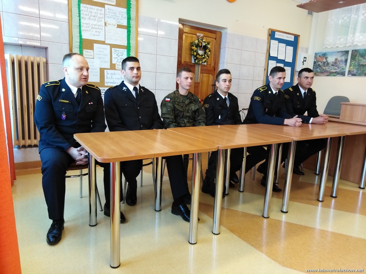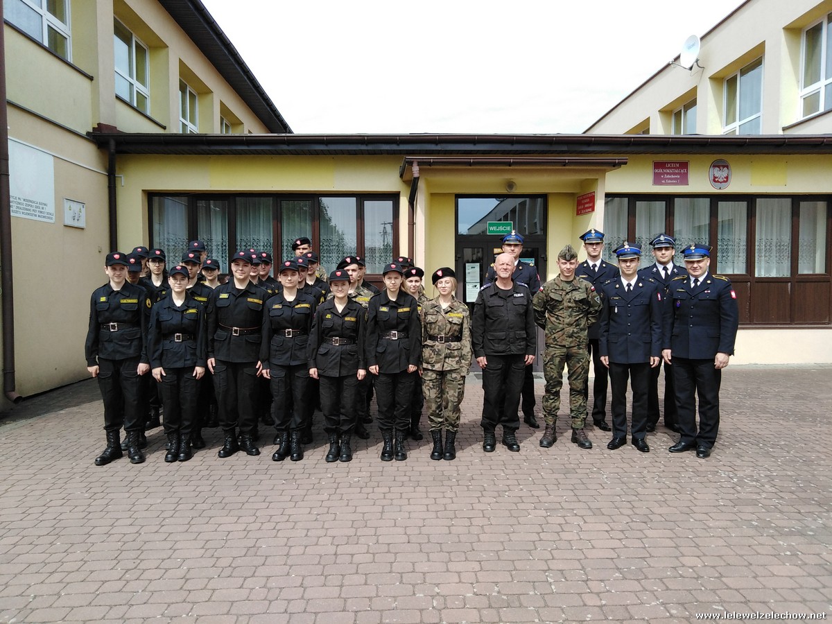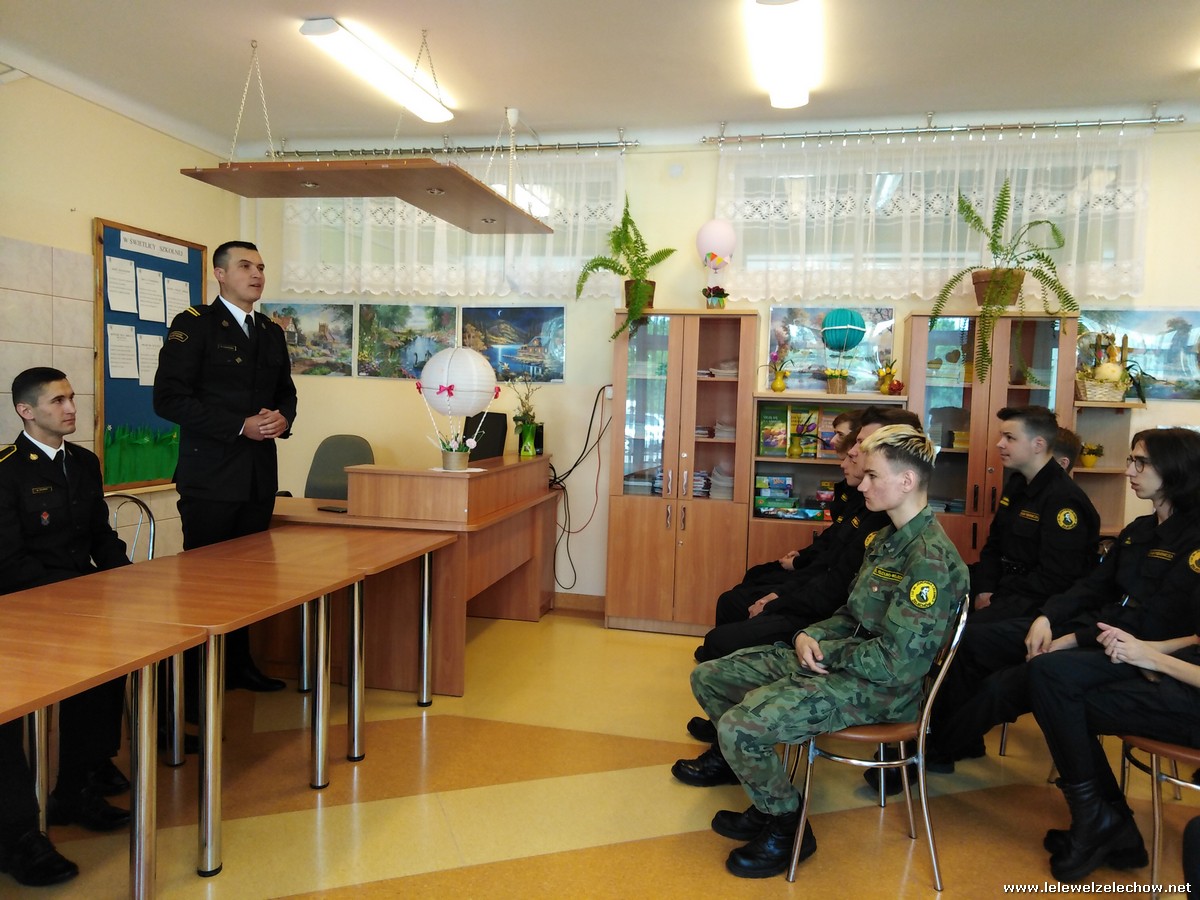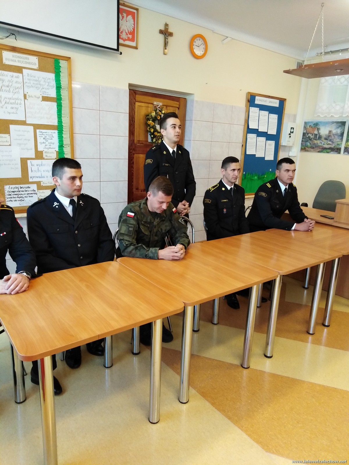 Na zaproszenie naszego niezastąpionego sora pana asp. Marcina Cicheckiego (który również jest funkcjonariuszem KP PSP w Garwolinie) panowie opowiedzieli zgromadzonej młodzieży "mundurowej" o swojej ścieżce do służby w Straży Pożarnej i odpowiedzieli na pytania uczniów. Chyba każdemu ze słuchaczy zaimponowała wytrwałość, z jaką realizowali swe cele i nadal pracują nad rozwojem osobistym. Dla nauczycieli to również było bardzo miłe spotkanie ze swoimi niedawnymi przecież uczniami Mamy nadzieję, że nasi goście z nie mniejszą radością odwiedzili szkolne mury