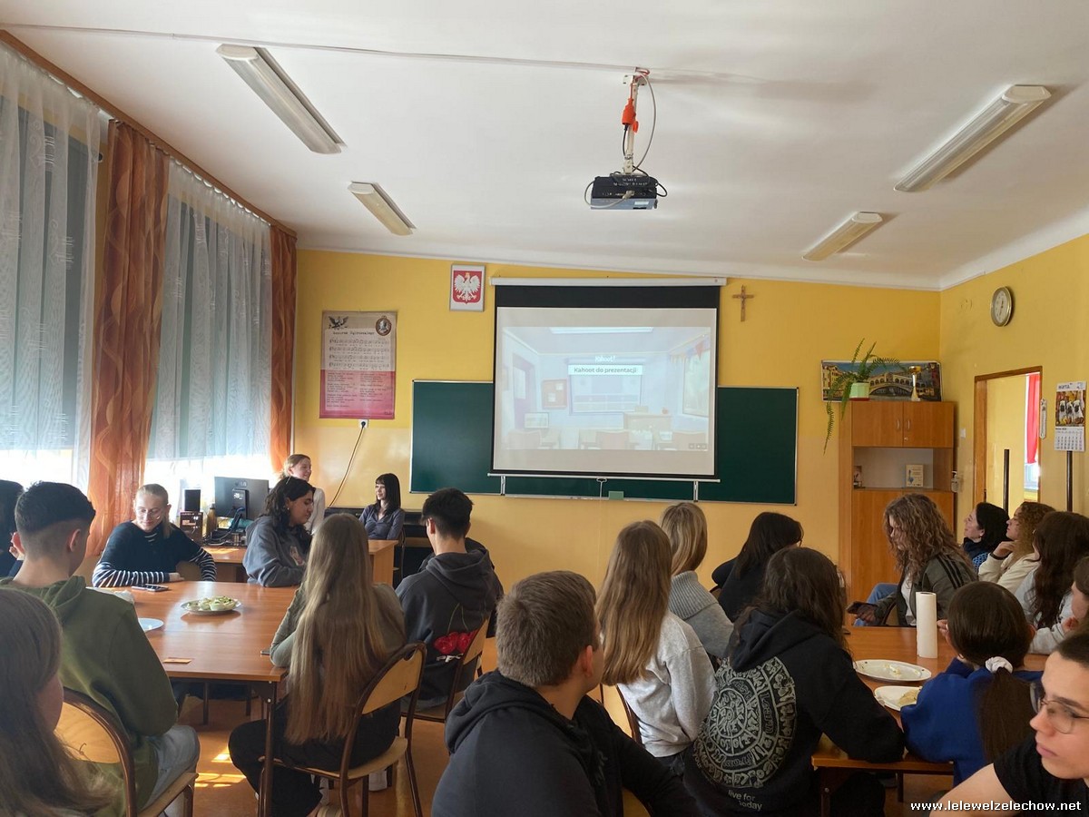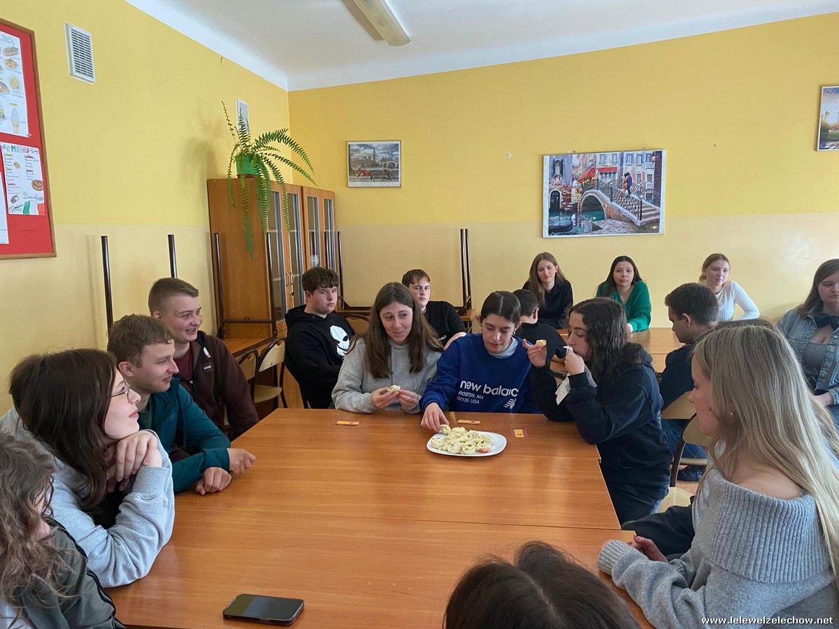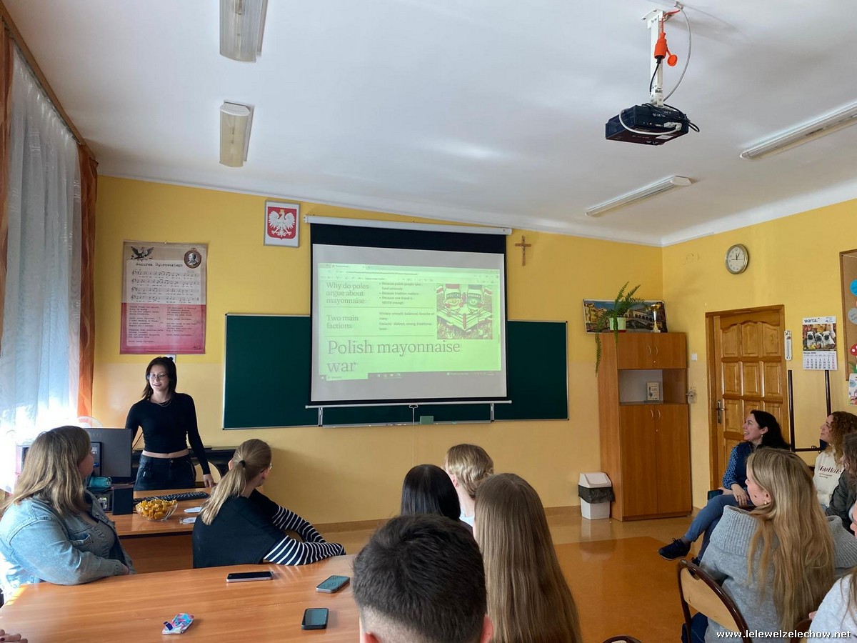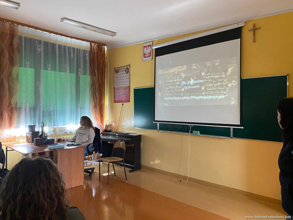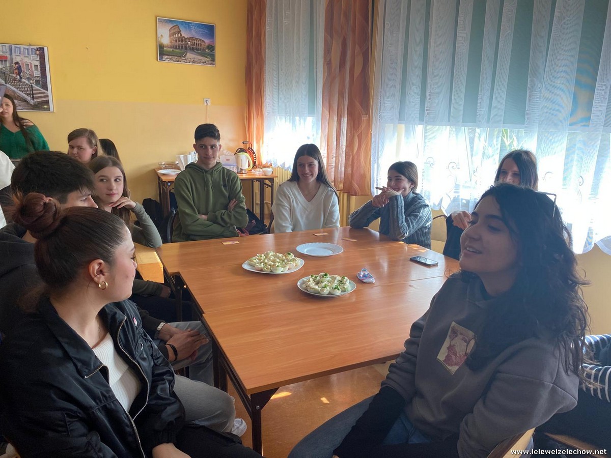 Podczas dwugodzinnych zajęć z panią Olgą Witek-Cichecką uczniowie z Hiszpanii poznali polskie tradycje związane ze Świętami Wielkanocnymi. Nasi uczniowie zaprezentowali nakręcone przez siebie filmiki o topieniu Marzanny, przygotowaniu święconki i pomogli naszym gościom stworzyć pisanki. Przybliżono także polski system edukacji. Zajęcia zakończono degustacją polskich słodyczy.