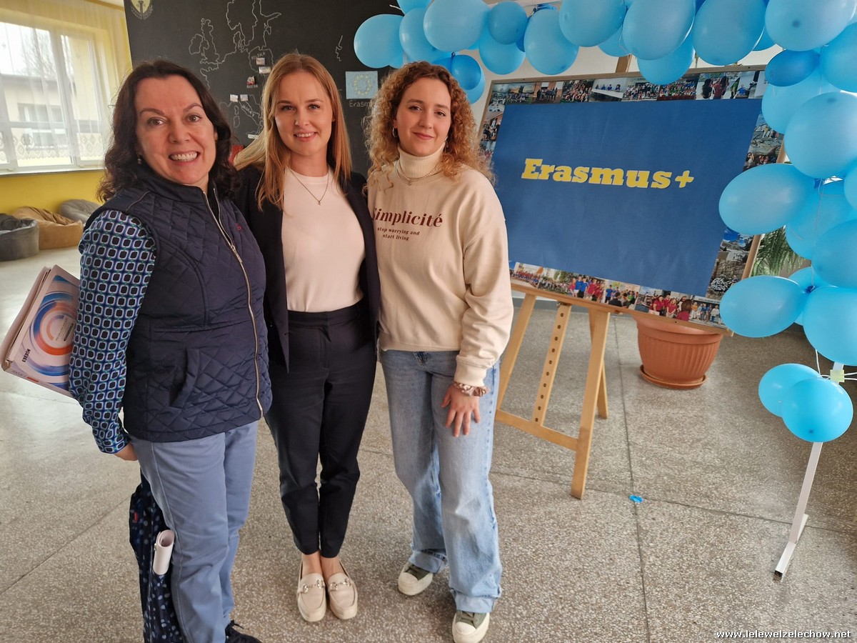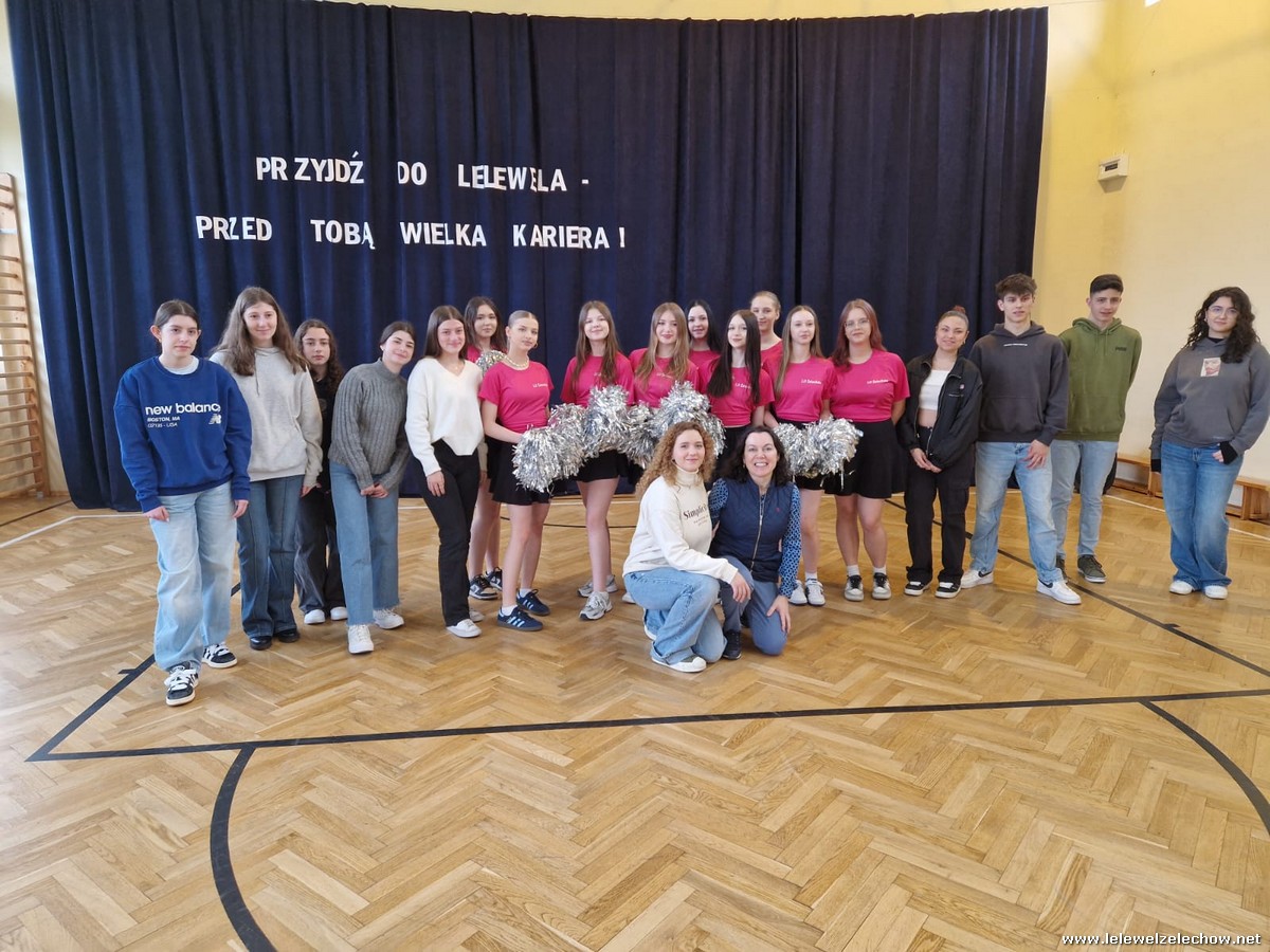 We wtorek Pani Dyrektor Sylwia Tomaszek wraz z przedstawicielami społeczności uczniowskiej przywitali naszych gości ciepłymi słowami, były też słodkości (tradycyjna szarlotka i sernik) oraz występy grupy energicznych cheerleadek, które pod kierownictwem Pani Joanny Włodarczyk przygotowały wspaniały układ taneczny.