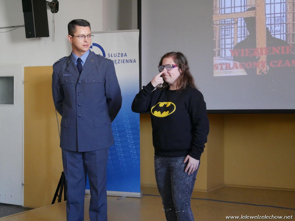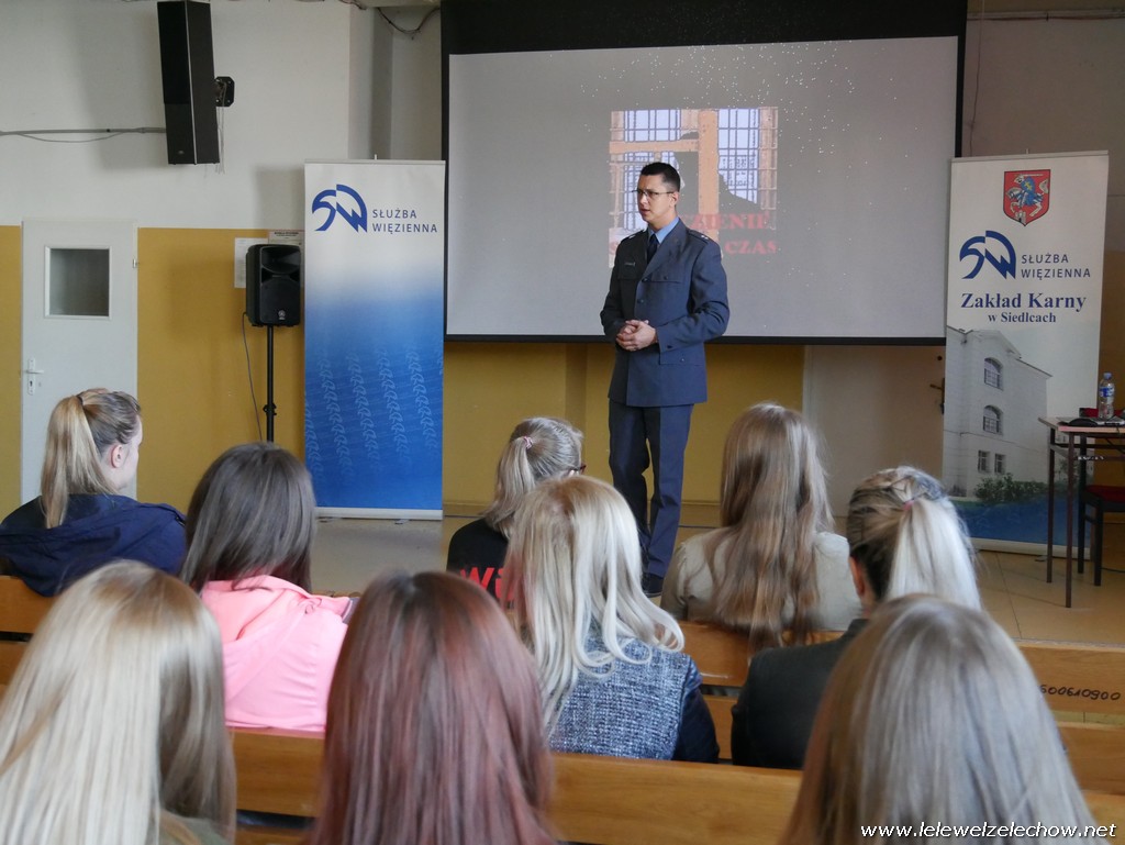 18 października uczniowie klas III udali się z wycieczką do Zakładu Karnego w Siedlcach aby uczestniczyć w zajęciach profilaktyczno- edukacyjnych ,,Więzienie – stracony czas” , realizowanych dla młodzieży na terenach zakładów karnych w Polsce od 2012 roku. Uczniowie mogli także zwiedzić jednostkę – zobaczyli salę mieszkalną osadzonych, spacerniak, świetlicę, siłownię, kaplicę. Dowiedzieli się wielu ciekawych rzeczy na temat funkcjonowania zakładu karnego w szczególności zakładu karnego w Siedlcach. Wizytę uczniów przygotował i prowadził ppor Zbigniew Śpiewak. Opiekę sprawowały Urszula Kobielus i Joanna Włodarczyk.