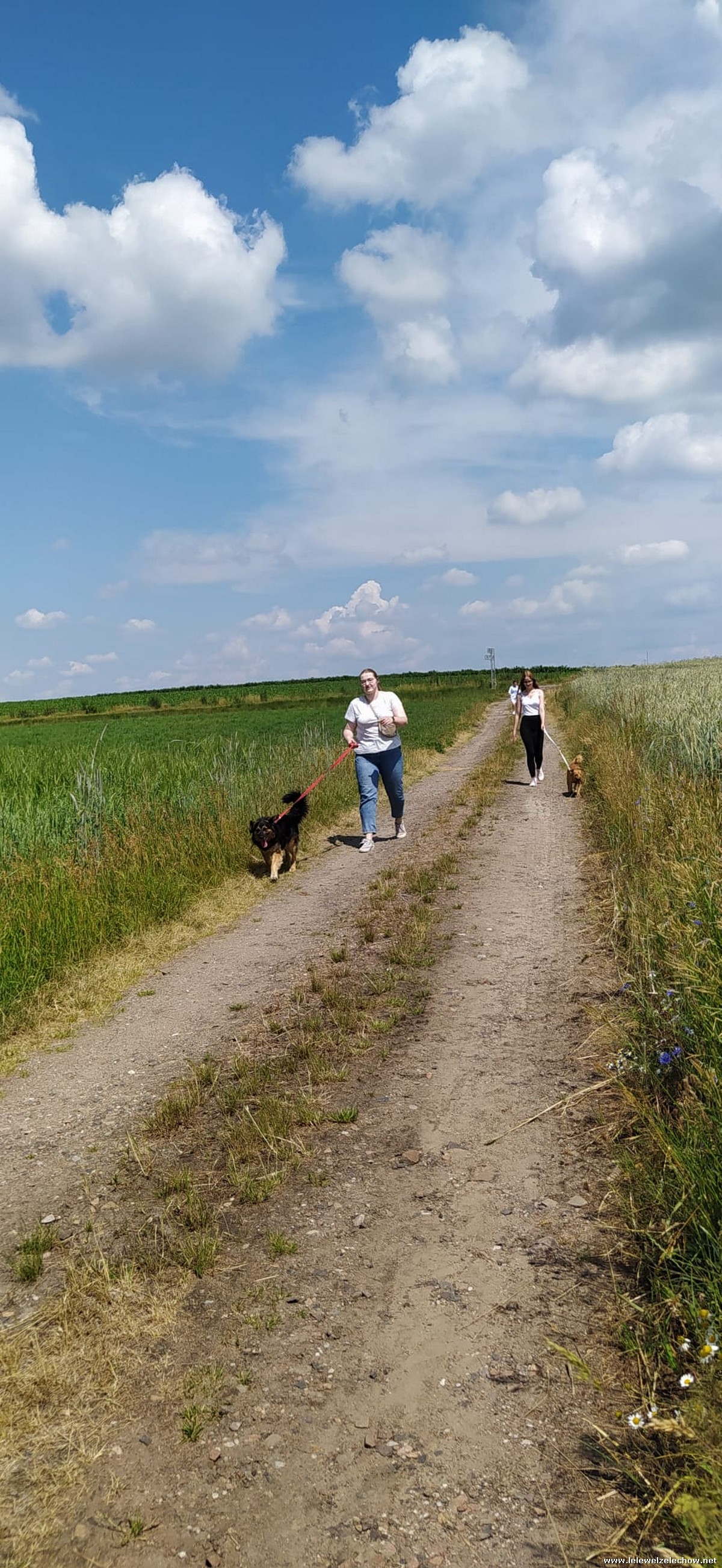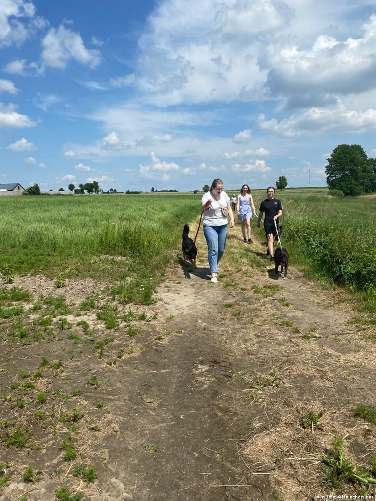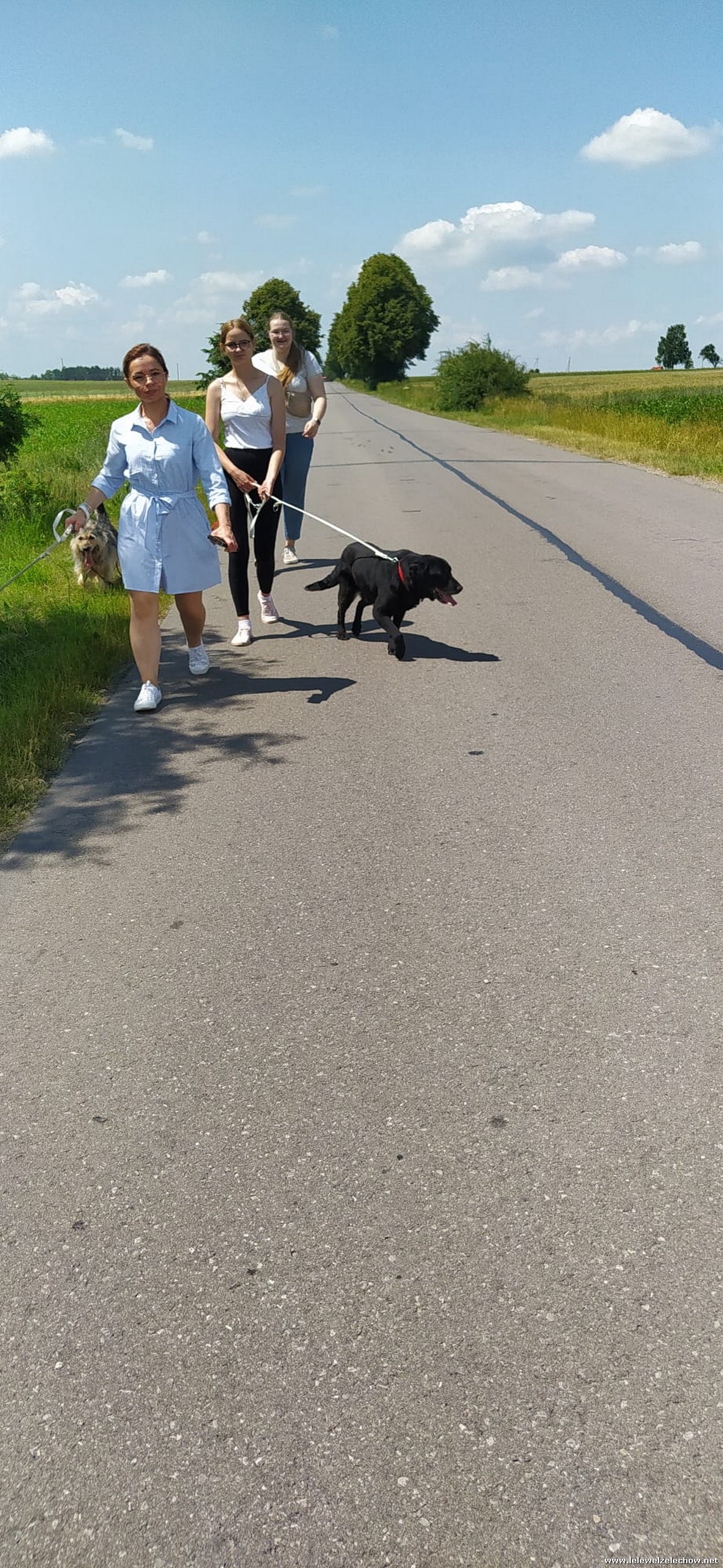 Dzisiaj w dwóch turach wyprowadziliśmy na spacery 16 psów, co dało nam ok. 5 km marszu, biegu a czasami nawet sprintu za nimi. Zawieźliśmy również zebraną karmę.