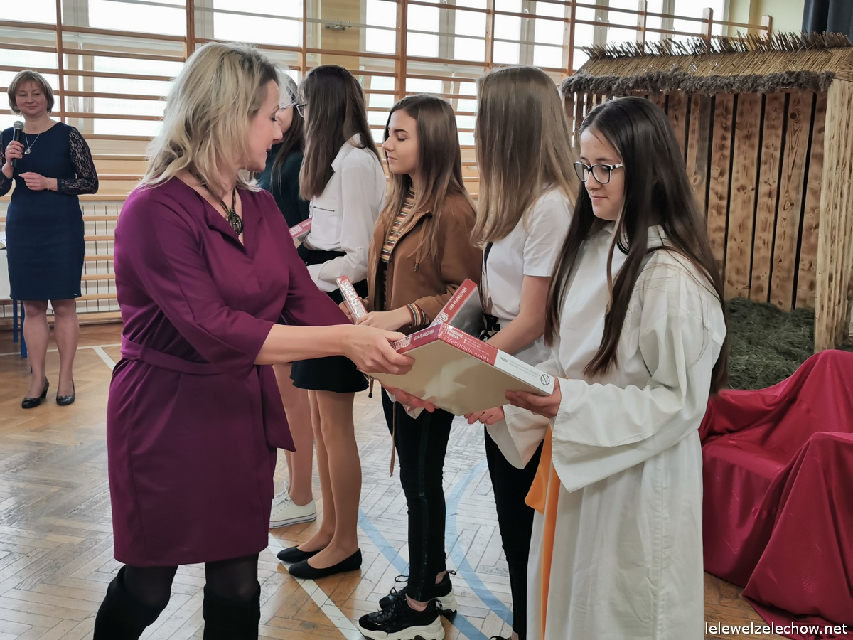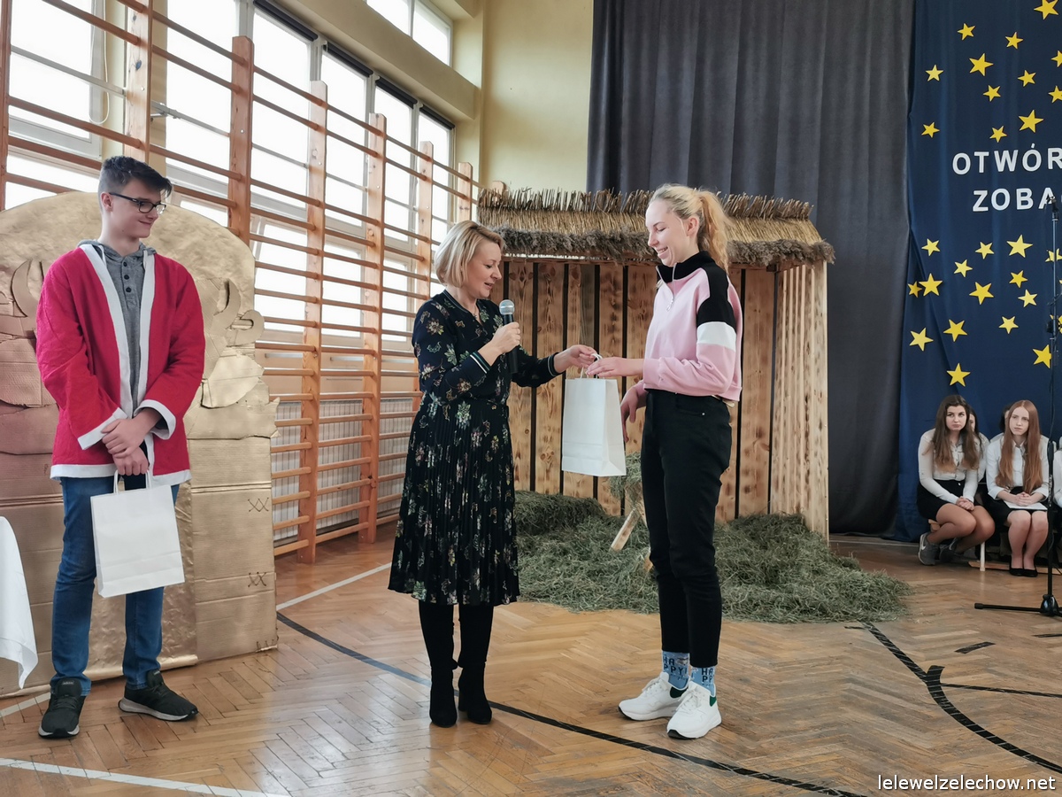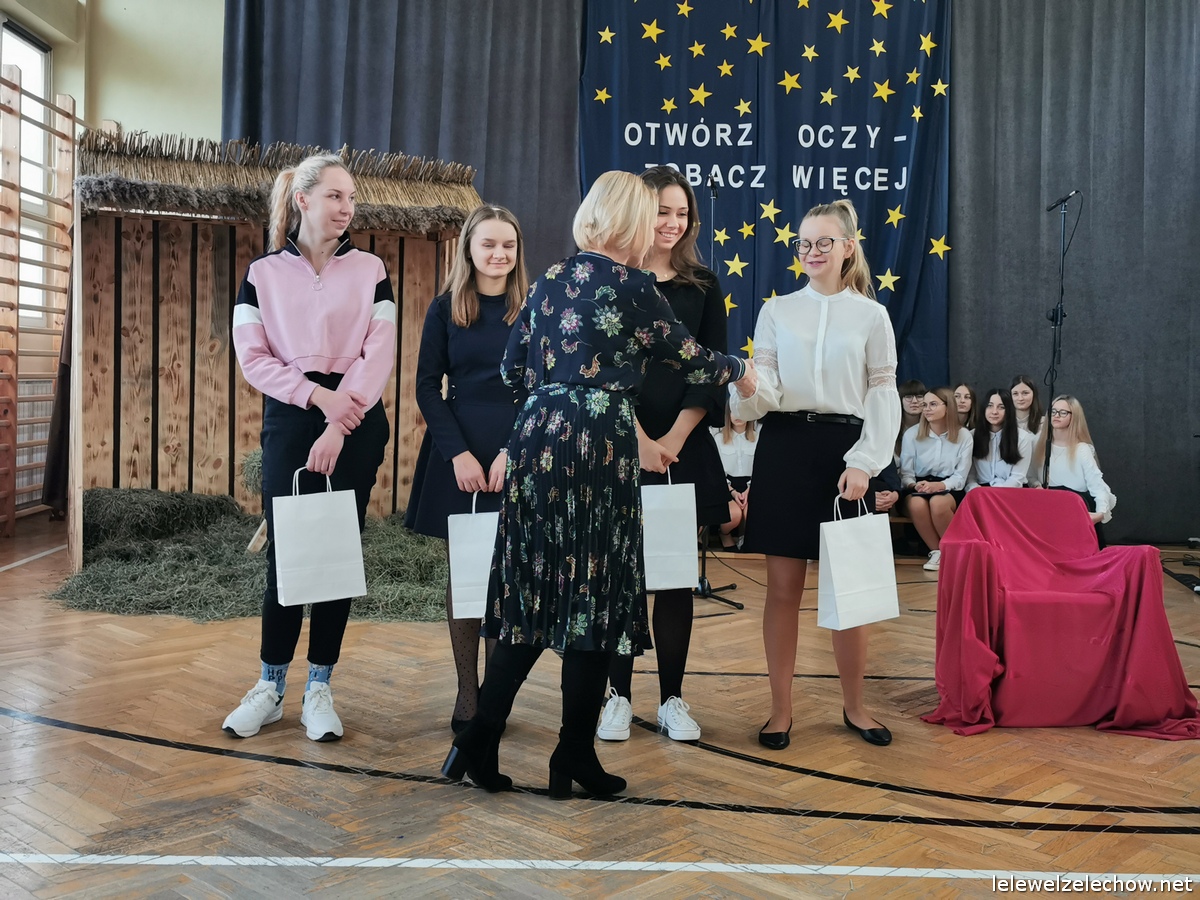 Wręczenie nagród w konkursach: szkolnym ortograficznym, Samorządu Uczniowskiego na najpiękniejszy stroik i dekorację bożonarodzeniową klasy oraz za udział w ogólnopolskim konkursie ,,Mistrzowie i patrioci".