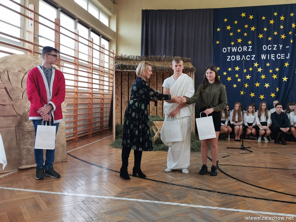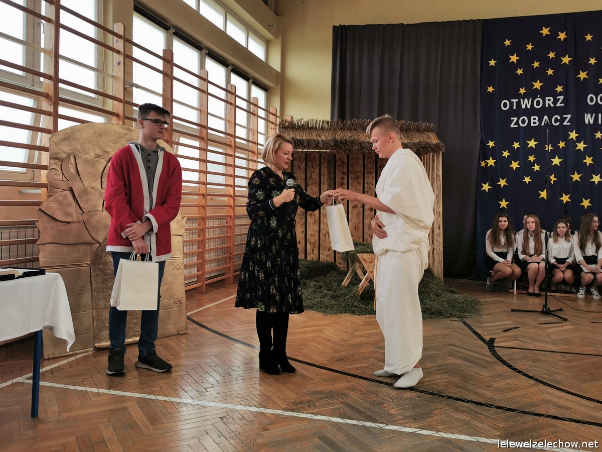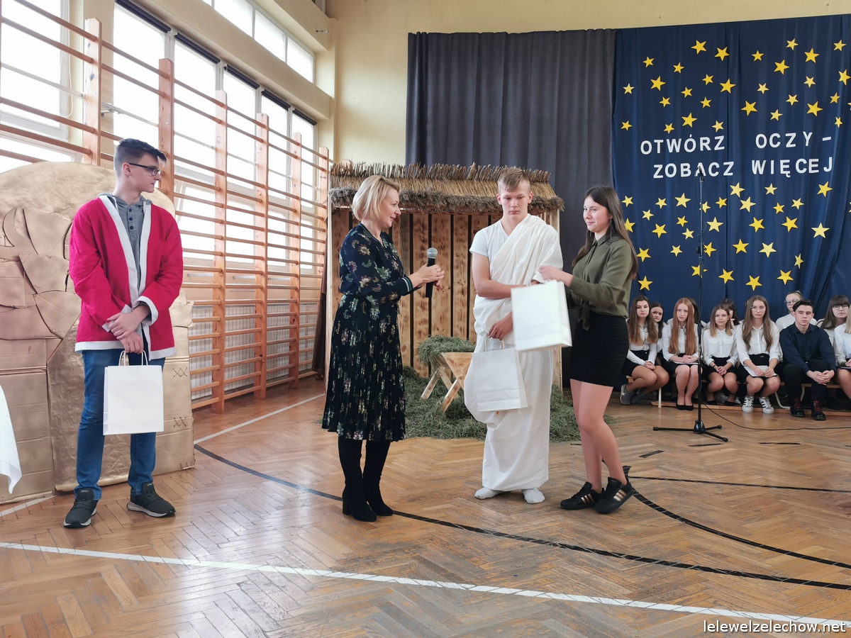 Wręczenie nagród w konkursach: szkolnym ortograficznym, Samorządu Uczniowskiego na najpiękniejszy stroik i dekorację bożonarodzeniową klasy oraz za udział w ogólnopolskim konkursie ,,Mistrzowie i patrioci".