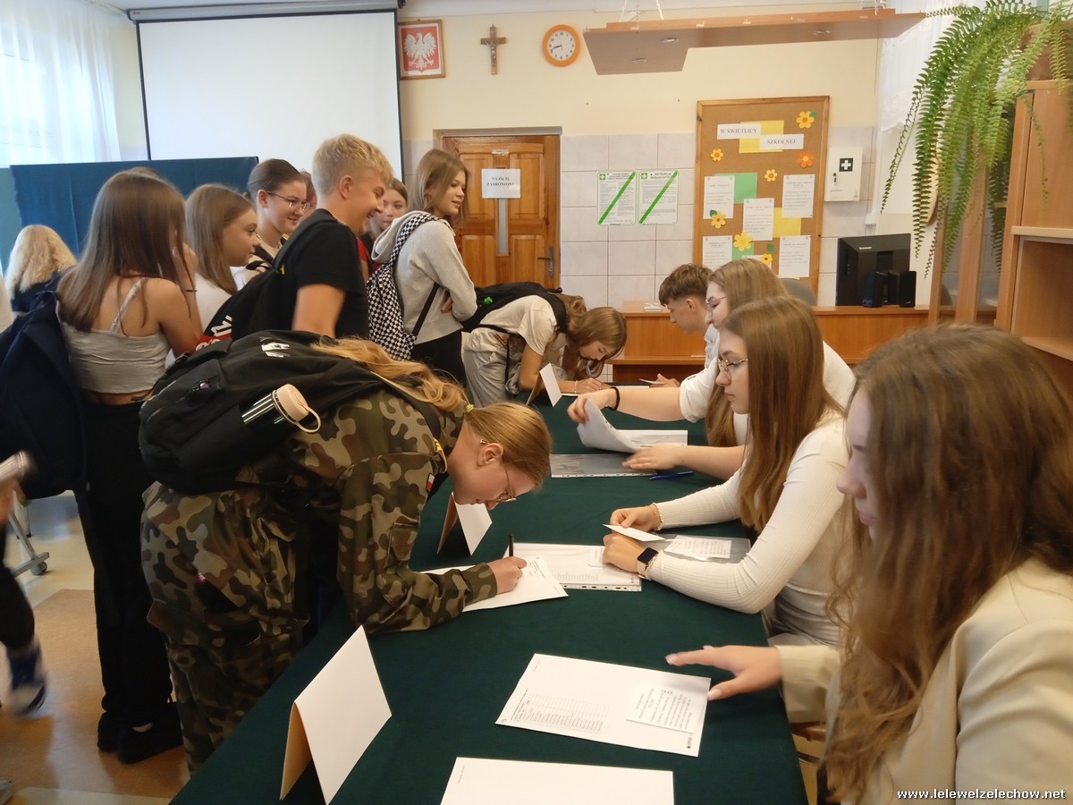 Dziś w naszym liceum odbyły się wybory do Samorządu Uczniowskiego. Uczniowie mogli głosować na dwa bloki kandydatów: Julitę i Gabrysię oraz Janka i Bartka. Wybory poprzedzone były interesującą kampanią prowadzoną przez obydwie strony. Każdy z bloków miał swoich zwolenników wśród uczniów i do końca nie było wiadomo kto wygra. ,,Lokal wyborczy,, był oblegany od pierwszej przerwy a frekwencja wyniosła 75 %.