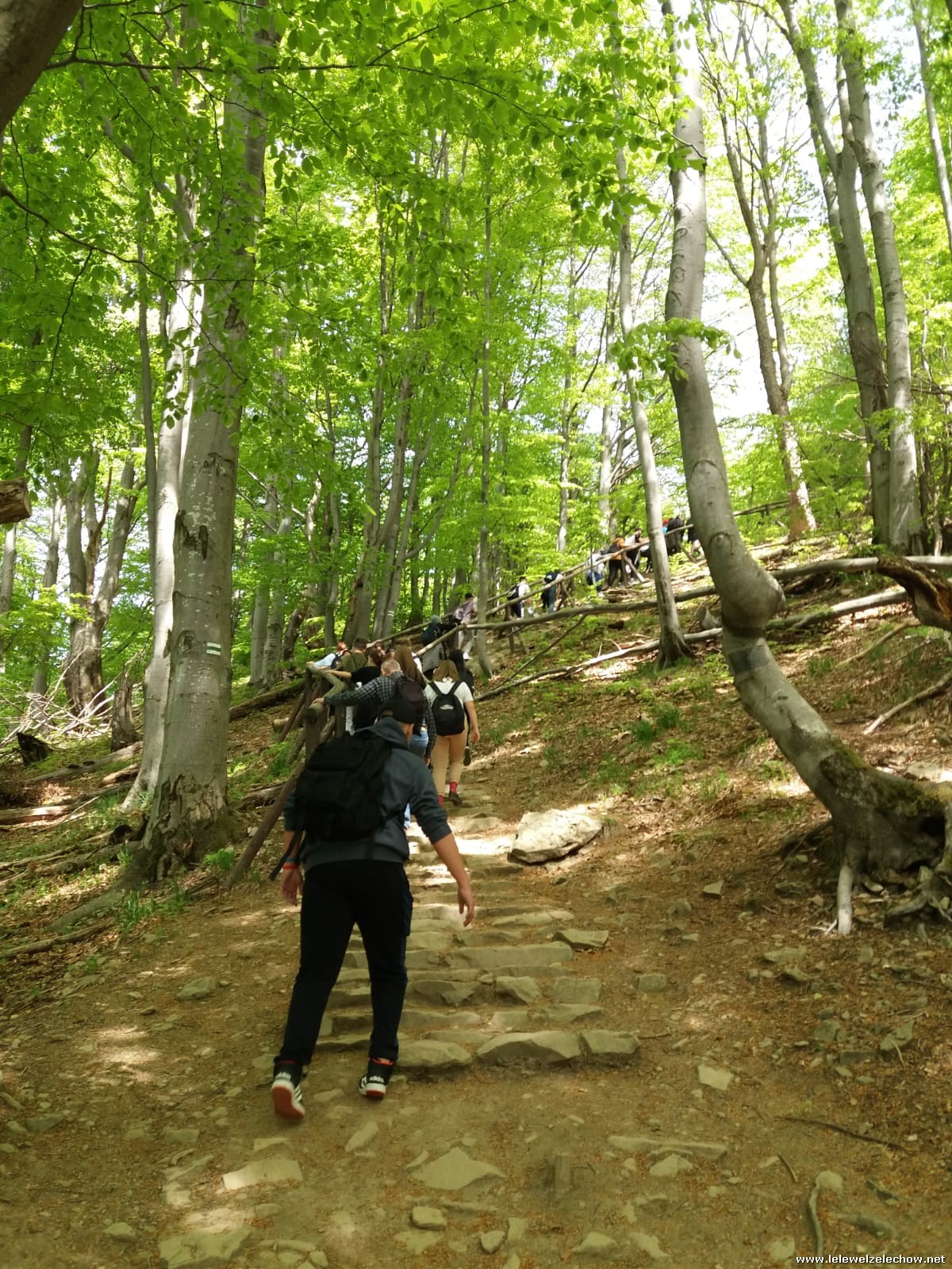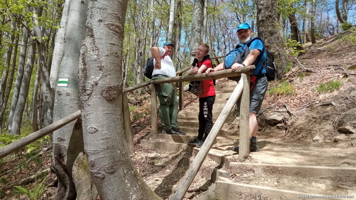 We wtorek 17 maja wybraliśmy się w malowniczą podróż drogą zwaną wielką pętlą bieszczadzką. Jednak największym wyzwaniem była wędrówka na Połoninę Caryńską. Wejście od Przełęczy Wyżniańskiej do najłatwiejszych nie należy. Trzeba było iść ponad godzinę w górę dość stromym zboczem. Krajobrazy, jakie odsłaniały się po przybyciu kolejnych metrów, rekompensowały jednak zmęczenie. Nagrodą na szczycie był piękny widok na bieszczadzkie szczyty, naprawdę zapierający dech w piersiach. Droga powrotna była łatwiejsza i wiodła granią połoniny oraz buczynowym lasem. Zeszliśmy do Ustrzyków Górnych, a stamtąd pojechaliśmy jeszcze do Czarnej, gdzie w cerkwi grekokatolickiej św. Dymitra z XVIII w. (dziś będącej parafialnym kościołem rzymskokatolickim) mogliśmy podziwiać oryginalny ikonostas z 1882 roku.