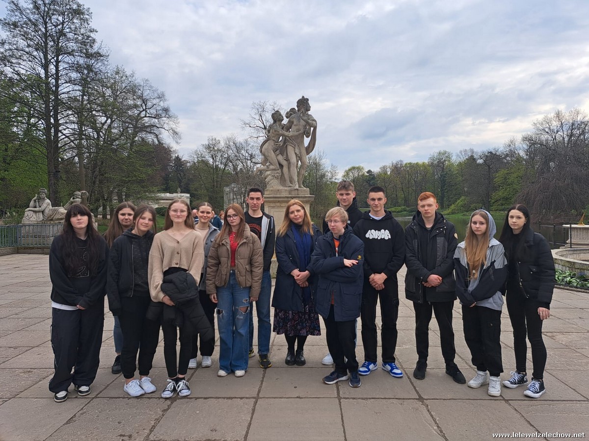 Po intensywnym zwiedzaniu był czas na posiłek oraz relaks na łonie natury. Uczniowie wraz z opiekunkami: panią Sylwią Tomaszek, panią Anettą Dziak, panią Urszulą Kobielus, panią Lidią Soćko oraz panią Anną Włodarczyk odwiedzili Łazienki Królewski i sprawdzili, czy w Warszawie już na dobre zagościła wiosna. Pogoda okazała się na tyle łaskawa, że z przyjemnością przespacerowaliśmy się po parku i popatrzyliśmy na łazienkowskie zabytki. Wycieczka naprawdę się udała.