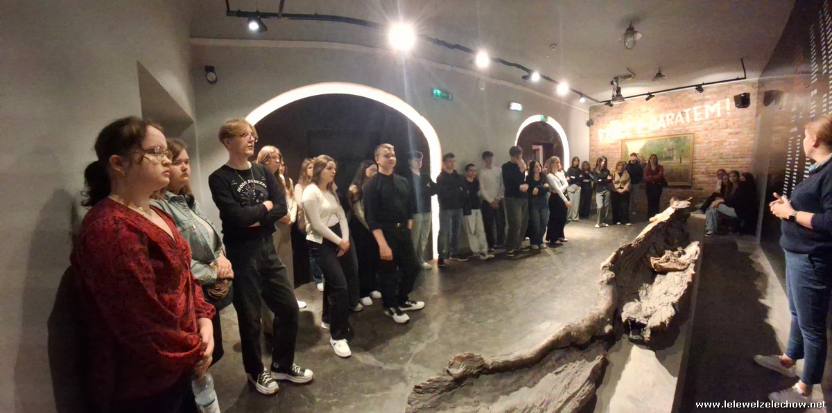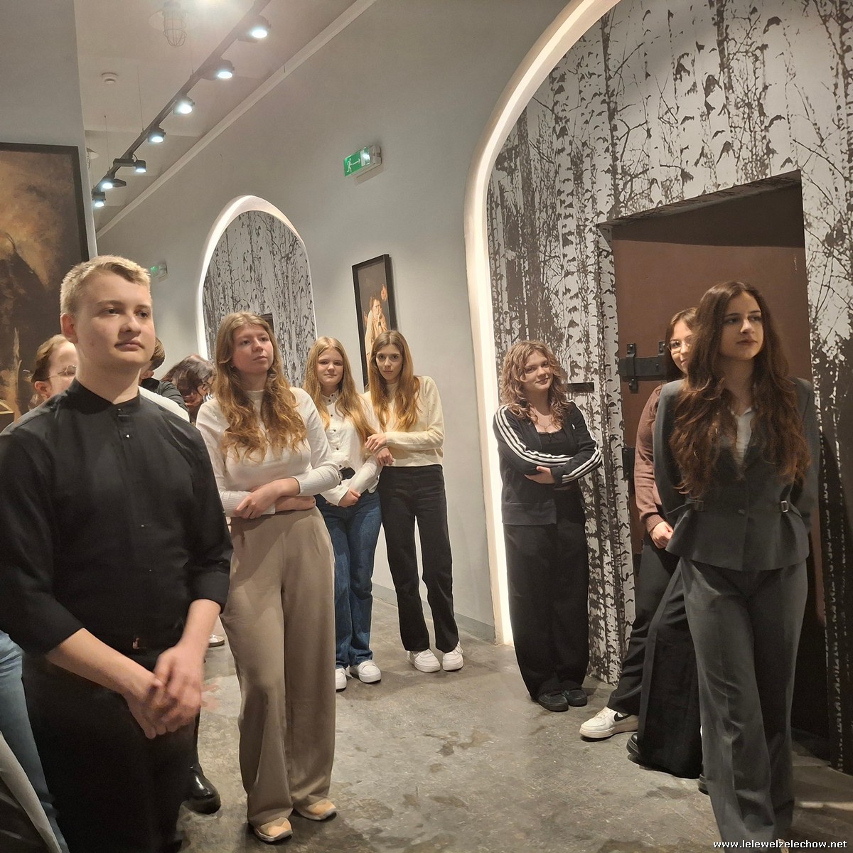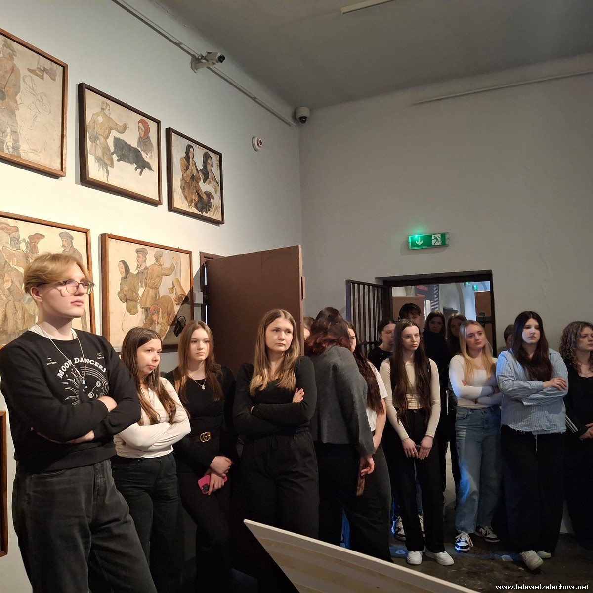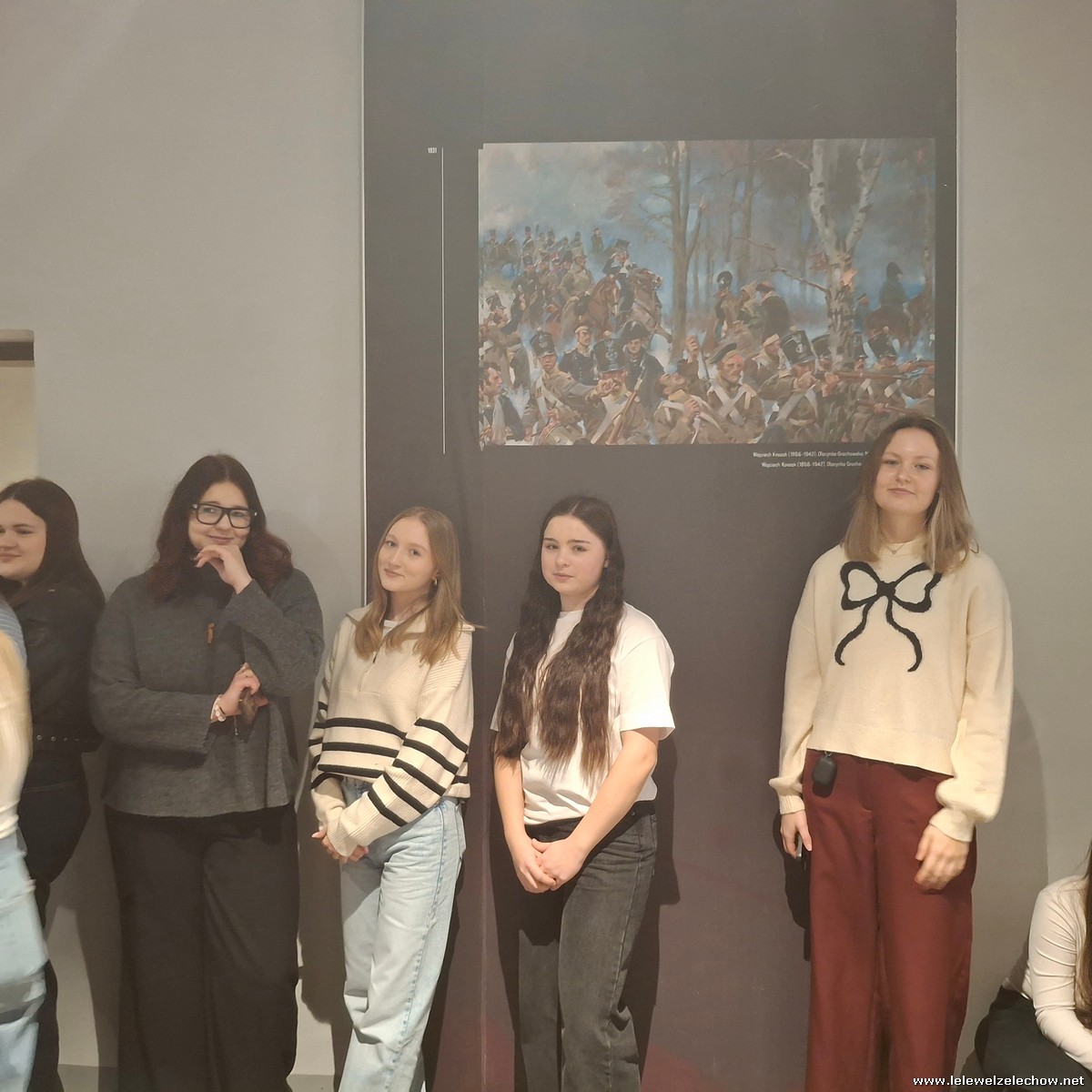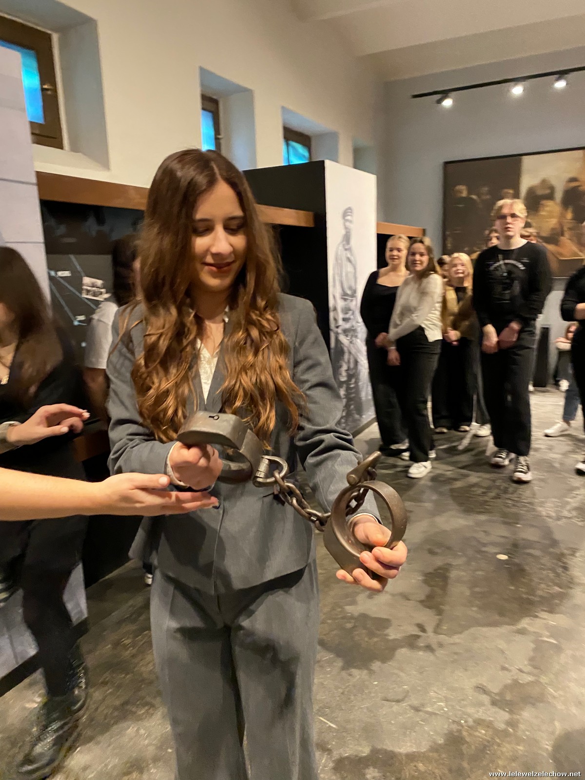 Mogliśmy obejrzeć zachowane wnętrza z epoki, czyli cele więzienne z różnych okresów, w tym celę śmierci z czasów rewolucji 1905 r., salę śledczą czy pomieszczenia dla oczekujących na przesłuchania. Byliśmy m. in w celi Romualda Traugutta, księdza Piotra Ściegiennego, Józefa Piłsudskiego. Przewodniczka przybliżyła nam sylwetki przetrzymywanych tu więźniów politycznych, przypomniała życiorys Romualda Traugutta i okoliczności śmierci ostatniego dyktatora powstania styczniowego, który razem z innymi więźniami został stracony na stokach Cytadeli. Usłyszeliśmy też interesującą historię związaną z przetrzymywanym tu marszałkiem Piłsudskim. Ogromne wrażenie zrobiła na nas wystawa obrazów „kronikarza syberyjskiej katorgi”, czyli Aleksandra Sochaczewskiego. On również więziony był w Cytadeli, a po wybuchu powstania styczniowego został skazany na 20 lat pobytu na Syberii. Swoje życie poświęcił tworzeniu przejmujących dzieł dokumentujących katorgę i pobyt na zsyłce. Wszystkie obrazy były niezwykłe, jednak najbardziej poruszyło nas ogromnych rozmiarów płótno „Pożegnanie Europy”, na którym malarz uwiecznił szereg znanych zesłańców, w tym siebie – postać stojącą przy słupie granicznym z prawej strony patrzącą na słup.
