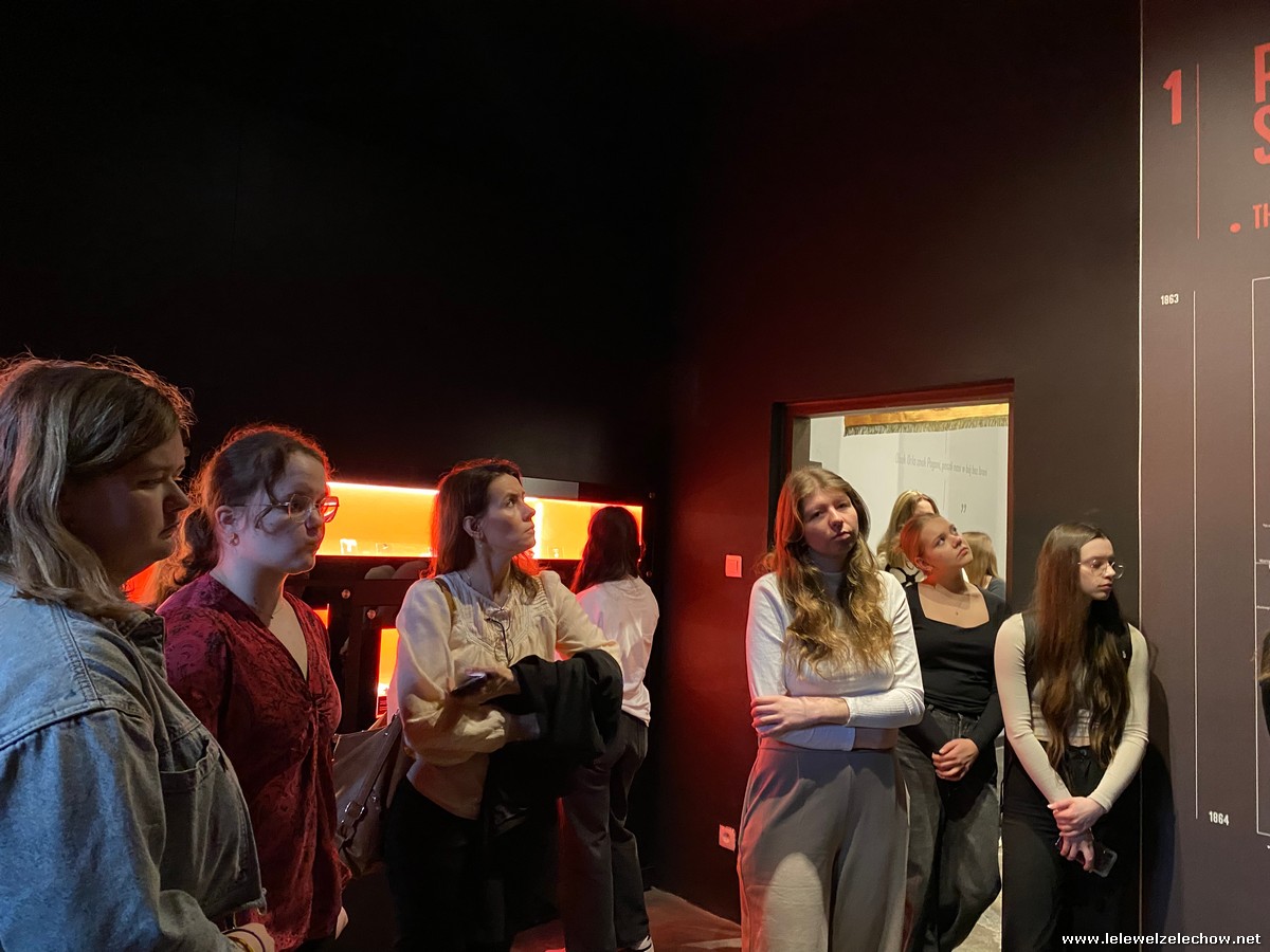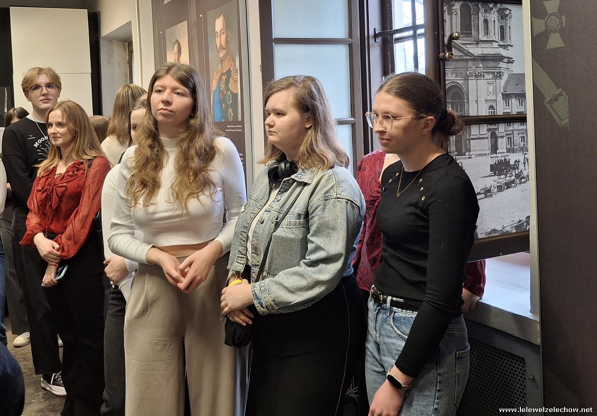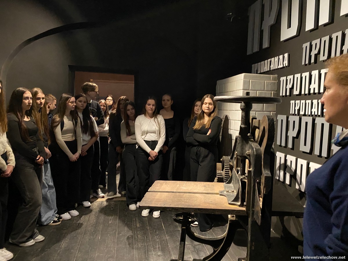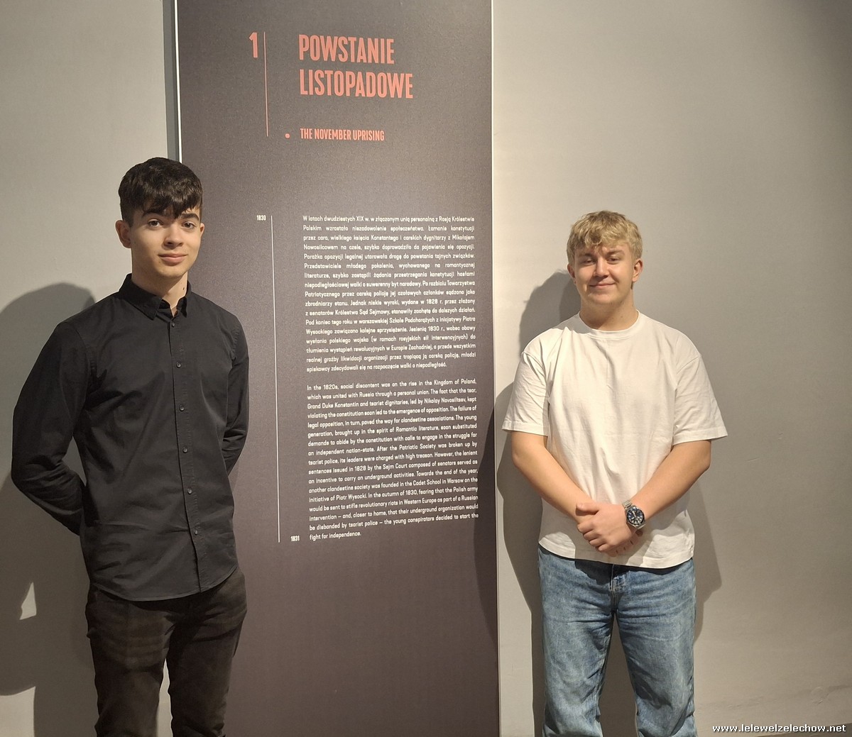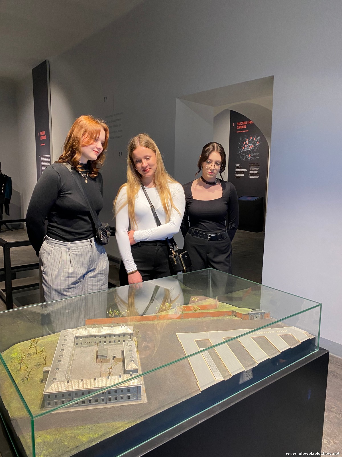 Mogliśmy obejrzeć zachowane wnętrza z epoki, czyli cele więzienne z różnych okresów, w tym celę śmierci z czasów rewolucji 1905 r., salę śledczą czy pomieszczenia dla oczekujących na przesłuchania. Byliśmy m. in w celi Romualda Traugutta, księdza Piotra Ściegiennego, Józefa Piłsudskiego. Przewodniczka przybliżyła nam sylwetki przetrzymywanych tu więźniów politycznych, przypomniała życiorys Romualda Traugutta i okoliczności śmierci ostatniego dyktatora powstania styczniowego, który razem z innymi więźniami został stracony na stokach Cytadeli. Usłyszeliśmy też interesującą historię związaną z przetrzymywanym tu marszałkiem Piłsudskim. Ogromne wrażenie zrobiła na nas wystawa obrazów „kronikarza syberyjskiej katorgi”, czyli Aleksandra Sochaczewskiego. On również więziony był w Cytadeli, a po wybuchu powstania styczniowego został skazany na 20 lat pobytu na Syberii. Swoje życie poświęcił tworzeniu przejmujących dzieł dokumentujących katorgę i pobyt na zsyłce. Wszystkie obrazy były niezwykłe, jednak najbardziej poruszyło nas ogromnych rozmiarów płótno „Pożegnanie Europy”, na którym malarz uwiecznił szereg znanych zesłańców, w tym siebie – postać stojącą przy słupie granicznym z prawej strony patrzącą na słup.