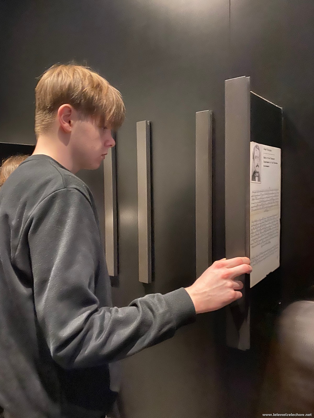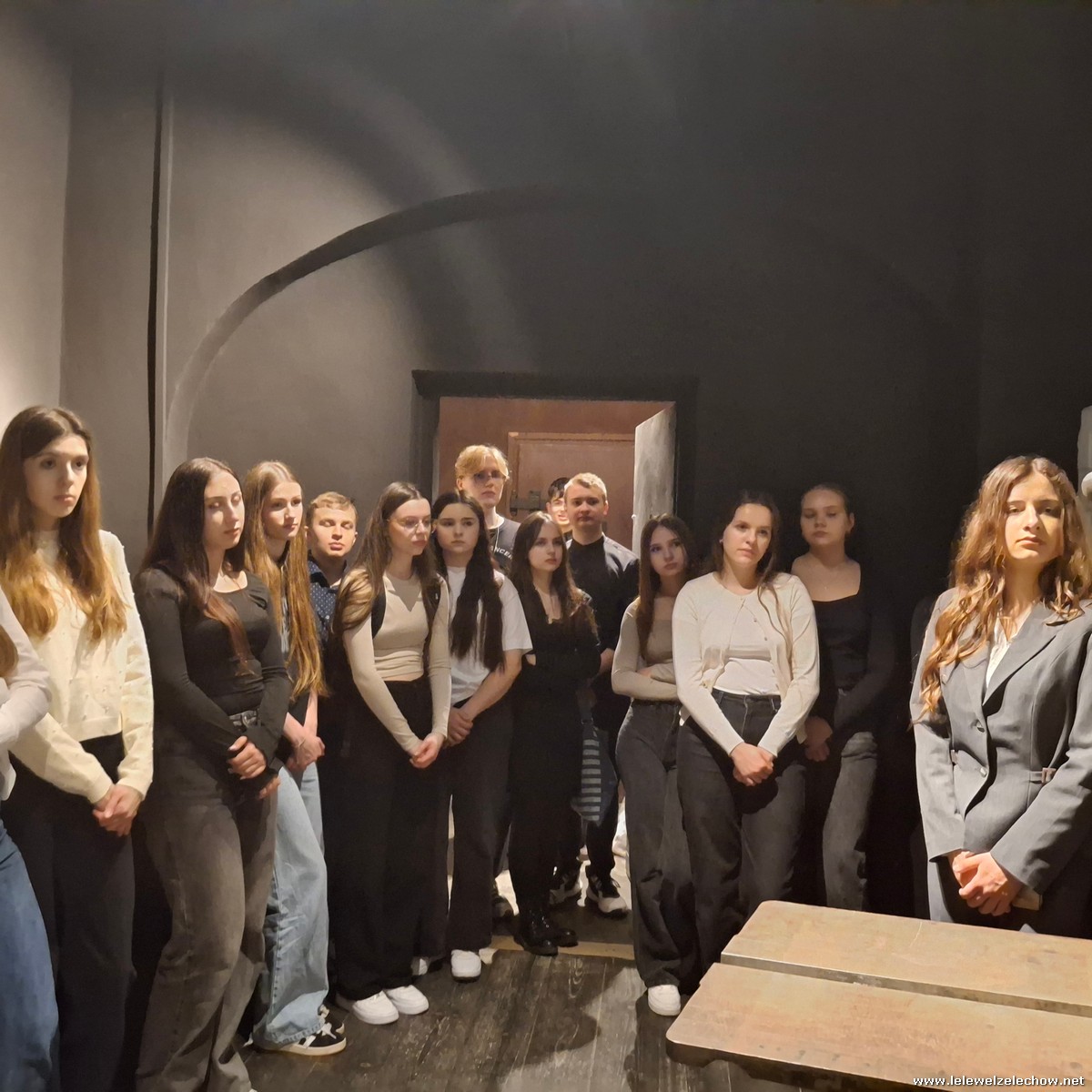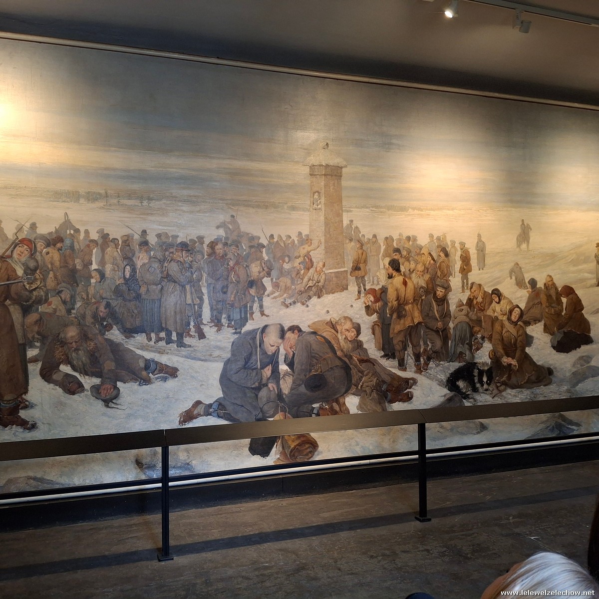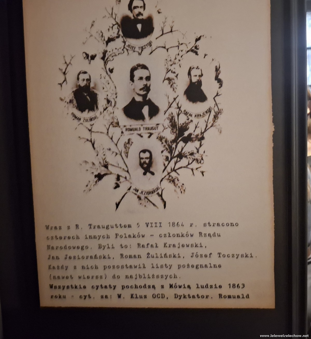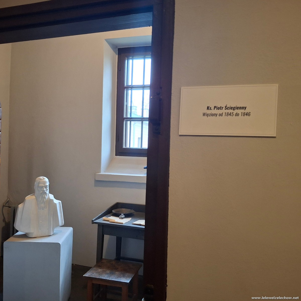 Mogliśmy obejrzeć zachowane wnętrza z epoki, czyli cele więzienne z różnych okresów, w tym celę śmierci z czasów rewolucji 1905 r., salę śledczą czy pomieszczenia dla oczekujących na przesłuchania. Byliśmy m. in w celi Romualda Traugutta, księdza Piotra Ściegiennego, Józefa Piłsudskiego. Przewodniczka przybliżyła nam sylwetki przetrzymywanych tu więźniów politycznych, przypomniała życiorys Romualda Traugutta i okoliczności śmierci ostatniego dyktatora powstania styczniowego, który razem z innymi więźniami został stracony na stokach Cytadeli. Usłyszeliśmy też interesującą historię związaną z przetrzymywanym tu marszałkiem Piłsudskim. Ogromne wrażenie zrobiła na nas wystawa obrazów „kronikarza syberyjskiej katorgi”, czyli Aleksandra Sochaczewskiego. On również więziony był w Cytadeli, a po wybuchu powstania styczniowego został skazany na 20 lat pobytu na Syberii. Swoje życie poświęcił tworzeniu przejmujących dzieł dokumentujących katorgę i pobyt na zsyłce. Wszystkie obrazy były niezwykłe, jednak najbardziej poruszyło nas ogromnych rozmiarów płótno „Pożegnanie Europy”, na którym malarz uwiecznił szereg znanych zesłańców, w tym siebie – postać stojącą przy słupie granicznym z prawej strony patrzącą na słup.