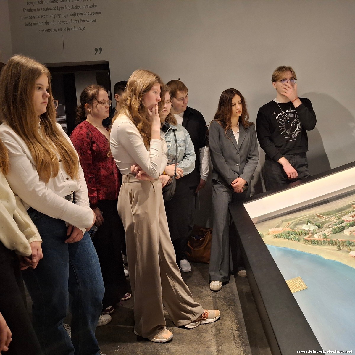 Sezon wiosennych wycieczek w naszym liceum rozpoczęty! W czwartek 13 marca 2025 r. klasy 3a i 3b udały się do Warszawy. O godzinie 10:00 pojawiliśmy się w Muzeum X Pawilonu Cytadeli Warszawskiej, gdzie przez dwie godziny pani przewodnik przybliżała nam historię tego miejsca. Poznaliśmy dzieje Cytadeli mieszczącej się w autentycznym budynku XIX-wiecznego magazynu mundurowego koszar aleksandrowskich, które następnie przekształcono w więzienie śledcze. Twierdzę tę wybudowano w latach 1832–1836 na rozkaz cara Mikołaja I. Jej zadaniem było utrzymanie kontroli nad miastem po upadku powstania listopadowego.