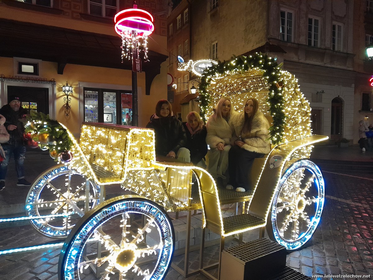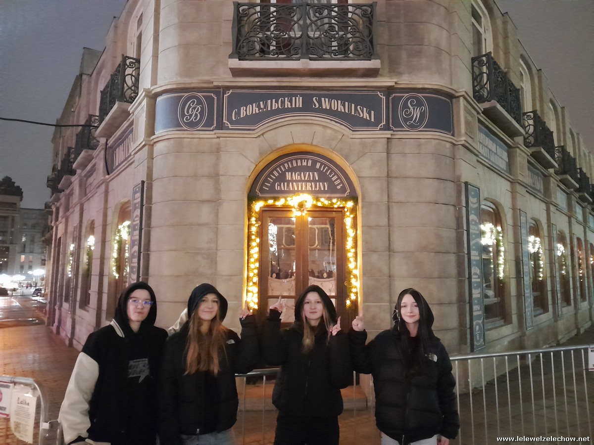Kolejnym punktem był posiłek, a następnie spacer i zwiedzanie świątecznej iluminacji Warszawy. Podczas spaceru obejrzeliśmy również Sklep Wokulskiego, fragment scenografii stworzonej na potrzeby filmowej adaptacji “Lalki” Bolesława Prusa.
