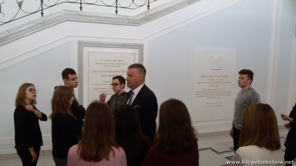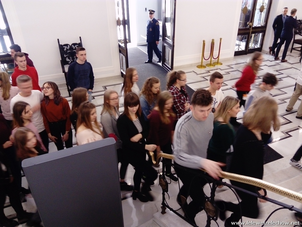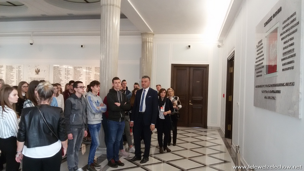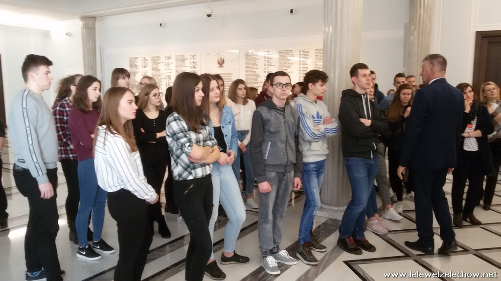 20 marca uczniowie klas III odwiedzili siedzibę władzy ustawodawczej w Polsce - Sejm RP. Zwiedzili budynek Sejmu odwiedzając kaplicę poselską, salę obrad, hol główny – górny i dolny, oglądając pamiątkowe tablice i eksponaty. Był to rozszerzony program wizyty (w oficjalnym jest tylko sala obrad i prelekcja w oddzielnej sali), który mogliśmy zrealizować dzięki posłowi Grzegorzowi Woźniakowi, który towarzyszył młodzieży w części wizyty i opowiedział o pracy posła.