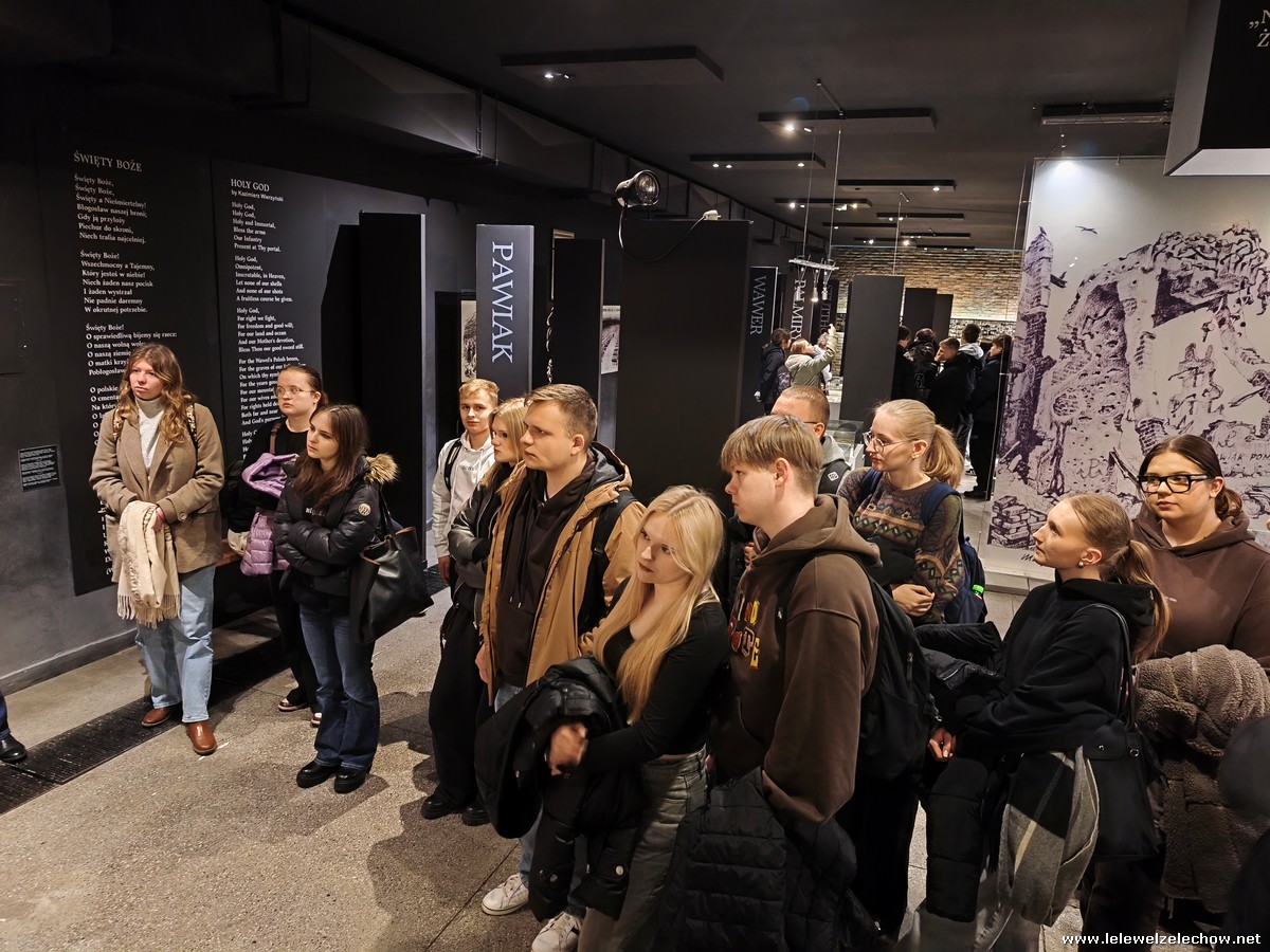 Kolejnym punktem wycieczki była wizyta w Muzeum Więzienia Pawiak – miejscu niezwykle ważnym dla pamięci o historii Warszawy z czasów II wojny światowej. W latach 1939 – 1944 było ono największym więzieniem śledczym Gestapo w okupowanej Polsce. Uczniowie wysłuchali opowieści przewodników o losach więźniów, z szacunkiem pochylając się nad tragedią tysięcy ludzi, którzy właśnie tam doświadczyli okrucieństwa wojny.