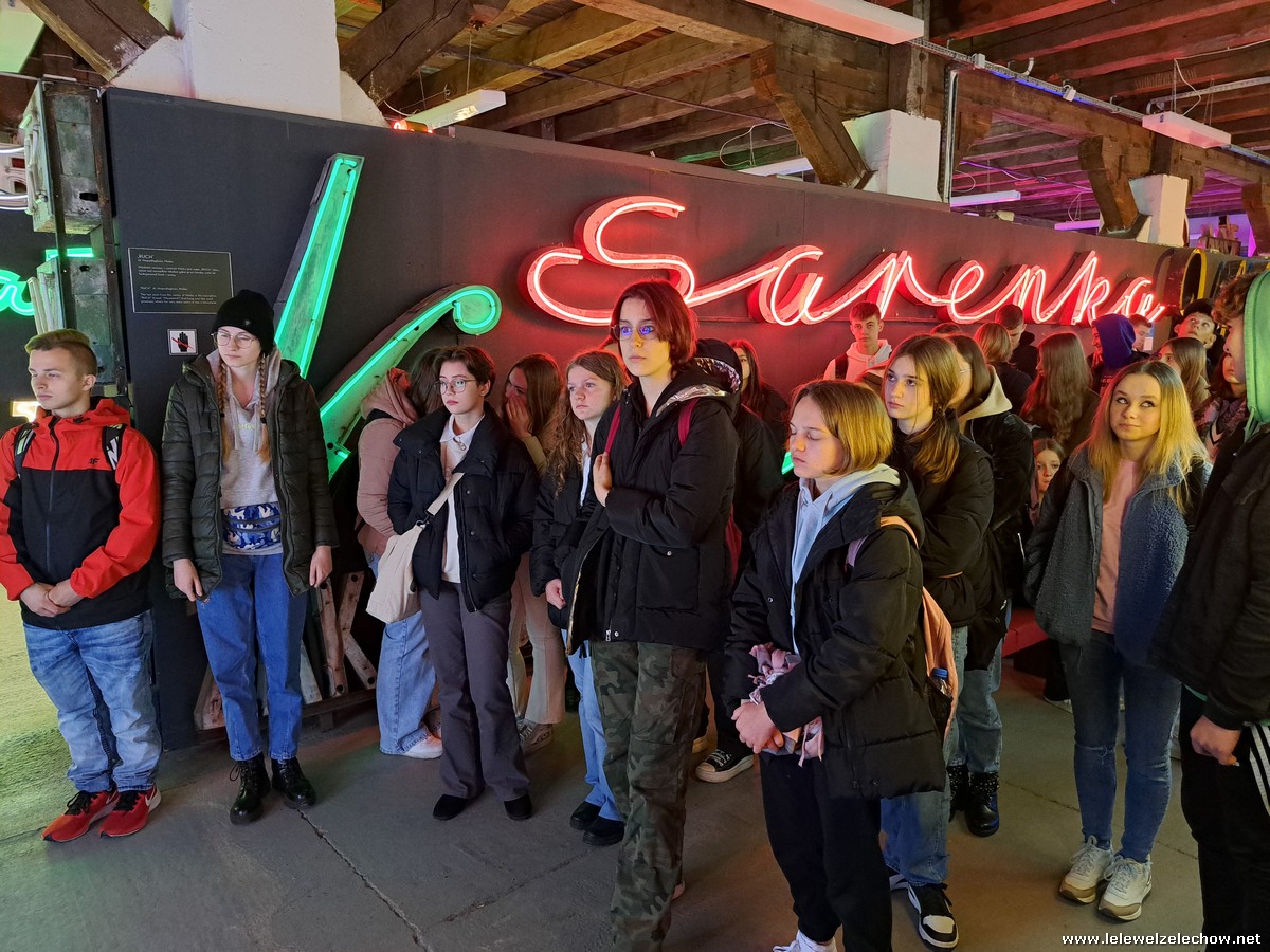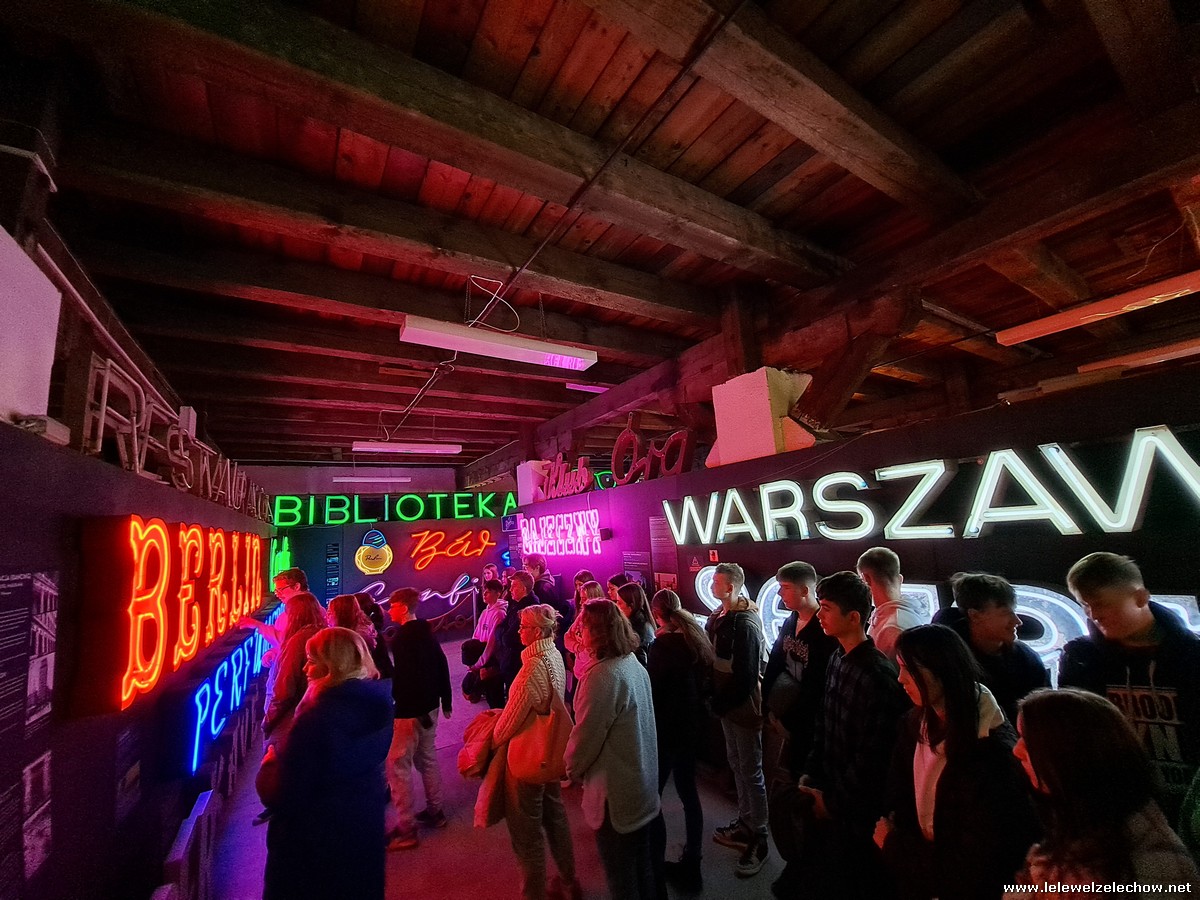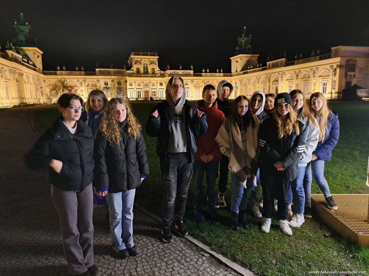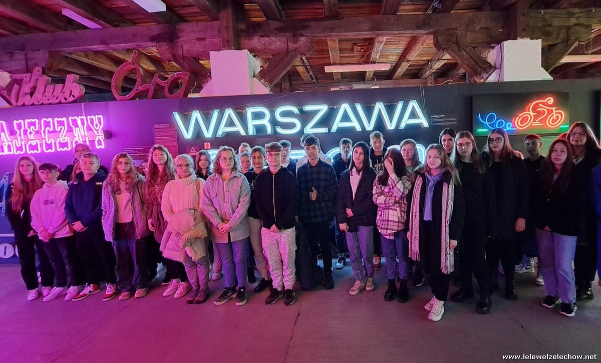 16 listopada 2022 roku klasy pierwsze naszego liceum uczestniczyły w wycieczce integracyjnej do Warszawy. Wyjazd dofinansowany był z programu „Poznaj Polskę”, który promuje odkrywanie bogactwa kulturalnego, historycznego i przyrodniczego naszego kraju. Z Żelechowa wyjechaliśmy o godzinie siódmej i dwie godziny później zwiedzaliśmy Muzeum Neonów. Mogliśmy obejrzeć powojenne reklamy świetlne i poznać ich historię. W tym miejscu do naszych dwóch grup dołączyli przewodnicy, którzy towarzyszyli nam w aktywnym zwiedzaniu stolicy. Z Pragi kierowaliśmy się ku centrum Warszawy. Kolejnym punktem był spacer po Stary Mieście. Przewodnicy oprowadzali nas po najciekawszych i najbardziej charakterystycznych miejscach, zaglądaliśmy do kościołów, poznawaliśmy historię ważnych osób, zwracaliśmy uwagę na liczne miejsca upamiętniające często tragiczne zdarzenia z przeszłości Warszawy. Byliśmy świadkami szykowania świątecznych dekoracji i ogromnej choinki na placu Zamkowym. Po odpoczynku i przepysznym posiłku w pizzerii Da Grasso przemieściliśmy się do Łazienek Królewskich. Pogoda nie sprzyjała zwiedzaniu, mimo tego liczne informacje przekazywane przez przewodników pozwoliły nam dostrzec niezwykłość tego miejsca. Wrażenie zrobiły na nas gromady pawi spacerujących obok nas, mewy i kaczki przemieszczające się w pobliżu wody otaczającej pałac na Wyspie. Ostatnim punktem wycieczki było Muzeum Pałacu Króla Jana III w Wilanowie i zapierające dech w piersiach iluminacje w Ogrodzie Światła.
