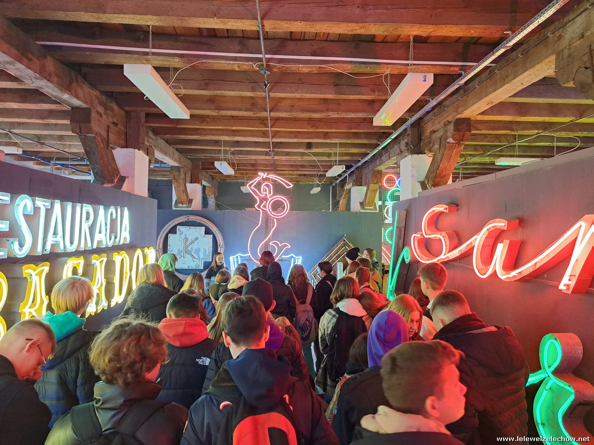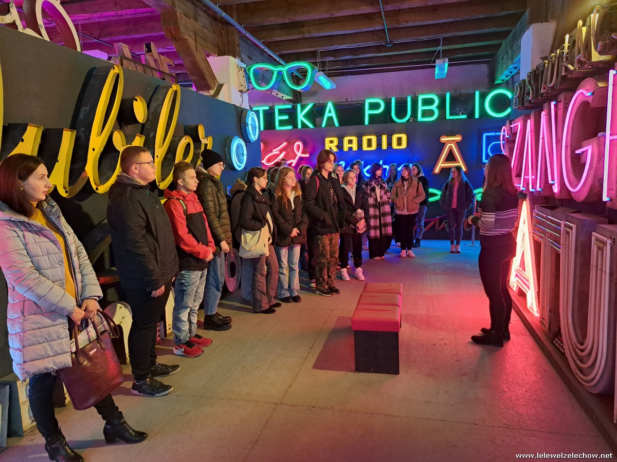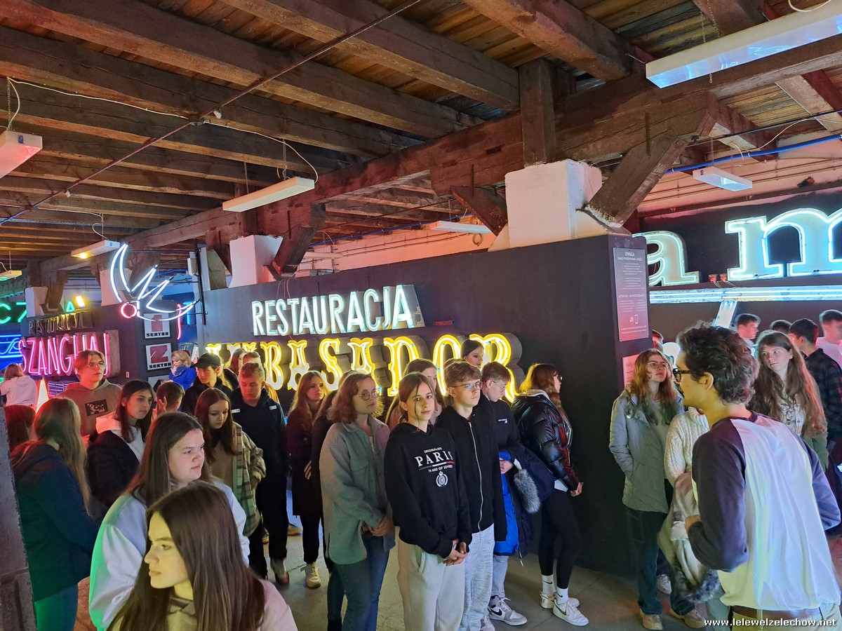 16 listopada 2022 roku klasy pierwsze naszego liceum uczestniczyły w wycieczce integracyjnej do Warszawy. Wyjazd dofinansowany był z programu „Poznaj Polskę”, który promuje odkrywanie bogactwa kulturalnego, historycznego i przyrodniczego naszego kraju. Z Żelechowa wyjechaliśmy o godzinie siódmej i dwie godziny później zwiedzaliśmy Muzeum Neonów. Mogliśmy obejrzeć powojenne reklamy świetlne i poznać ich historię. W tym miejscu do naszych dwóch grup dołączyli przewodnicy, którzy towarzyszyli nam w aktywnym zwiedzaniu stolicy. Z Pragi kierowaliśmy się ku centrum Warszawy. Kolejnym punktem był spacer po Stary Mieście. Przewodnicy oprowadzali nas po najciekawszych i najbardziej charakterystycznych miejscach, zaglądaliśmy do kościołów, poznawaliśmy historię ważnych osób, zwracaliśmy uwagę na liczne miejsca upamiętniające często tragiczne zdarzenia z przeszłości Warszawy. Byliśmy świadkami szykowania świątecznych dekoracji i ogromnej choinki na placu Zamkowym. Po odpoczynku i przepysznym posiłku w pizzerii Da Grasso przemieściliśmy się do Łazienek Królewskich. Pogoda nie sprzyjała zwiedzaniu, mimo tego liczne informacje przekazywane przez przewodników pozwoliły nam dostrzec niezwykłość tego miejsca. Wrażenie zrobiły na nas gromady pawi spacerujących obok nas, mewy i kaczki przemieszczające się w pobliżu wody otaczającej pałac na Wyspie. Ostatnim punktem wycieczki było Muzeum Pałacu Króla Jana III w Wilanowie i zapierające dech w piersiach iluminacje w Ogrodzie Światła.