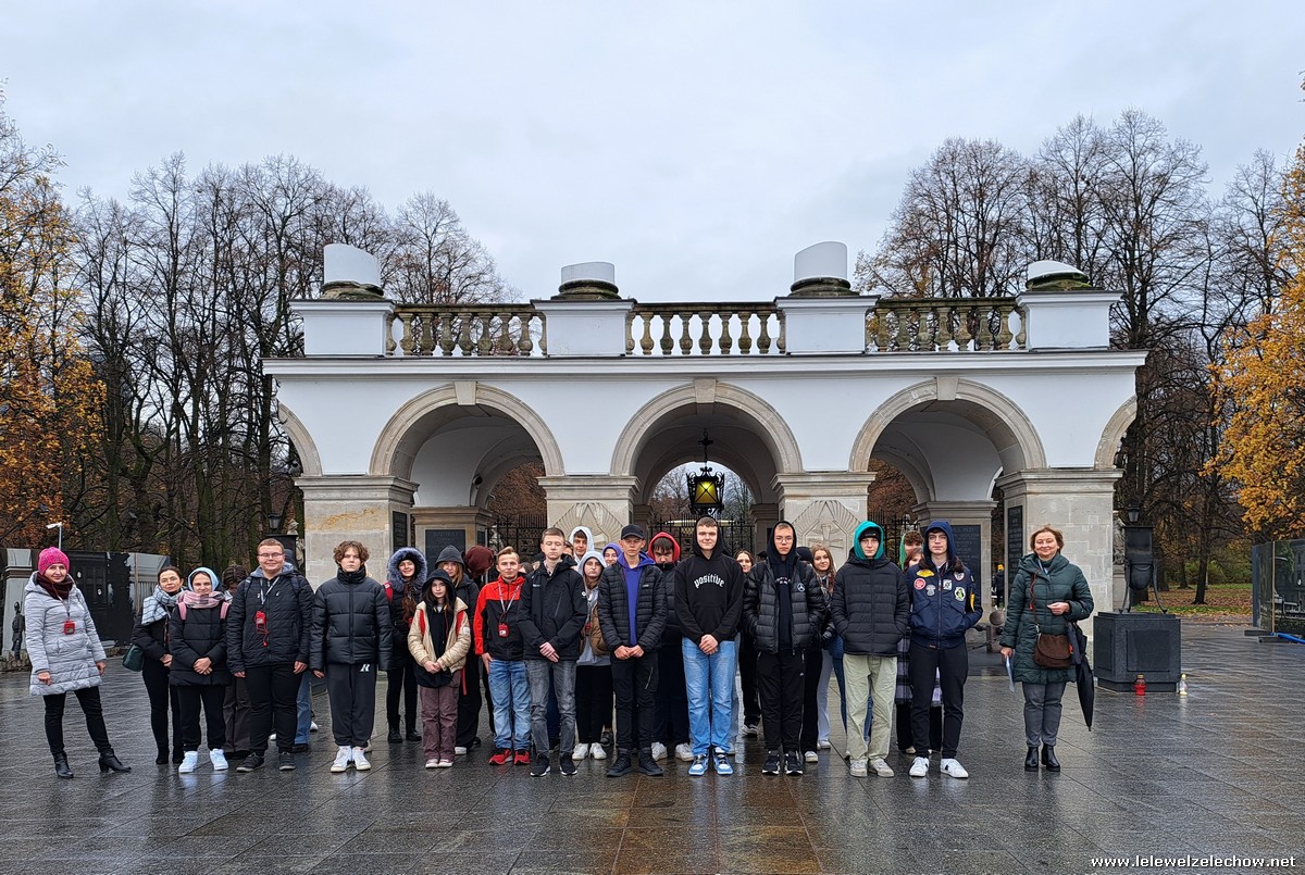 Do Żelechowa wróciliśmy po godzinie dziewiętnastej. W naszej pamięci na pewno zostanie wiele wspaniałych zakątków stolicy, które w połączeniu z historią przedstawioną przez przewodników, zostały przez nas odkryte na nowo. Topografia miasta, ułożenie kamienic, ważne miejsca, pomniki, tablice upamiętniające istotne wydarzenia, Belweder, Sąd Najwyższy, Kaplica Katyńska w Katedrze Wojska Polskiego, więzienie na Rakowieckiej, mieszkanie, w którym ukrywał się Władysław Szpilman, pomnik Józefa Piłsudskiego, Pomnik Powstania Warszawskiego, ambasady – to tylko niektóre z miejsc i atrakcji, na które dziś zwróciliśmy uwagę . W trakcie całodniowego wyjazdu opiekę nad nami sprawowała pani dyrektor Sylwia Tomaszek, pani Joanna Baraniecka, pani Anna Majewska, oraz wychowawczynie klas pierwszych: pani Agnieszka Osial, pani Lidia Soćko i pani Magdalena Woźniak. Wycieczkę, mimo listopadowej pogody, na pewno zapamiętamy jako bardzo udaną, wypełnioną atrakcjami i wspólnymi przeżyciami.