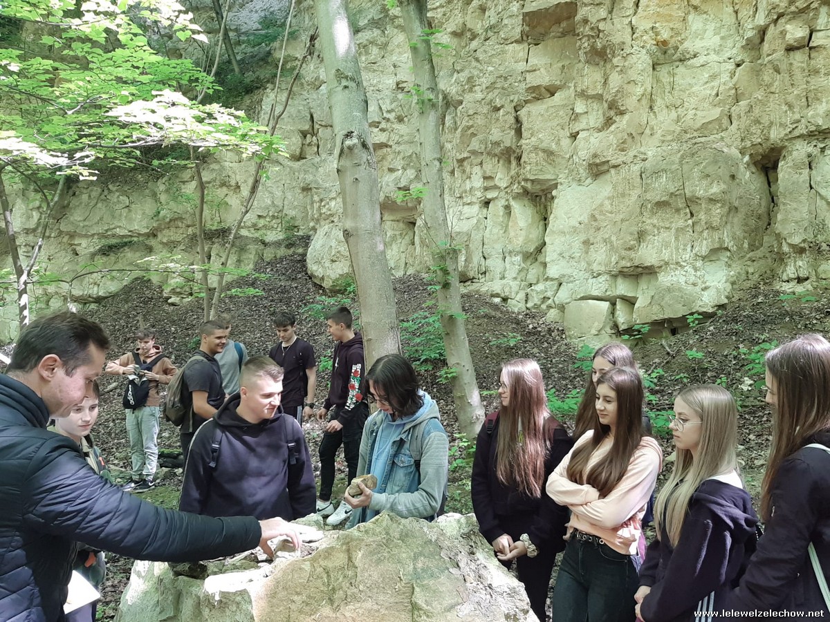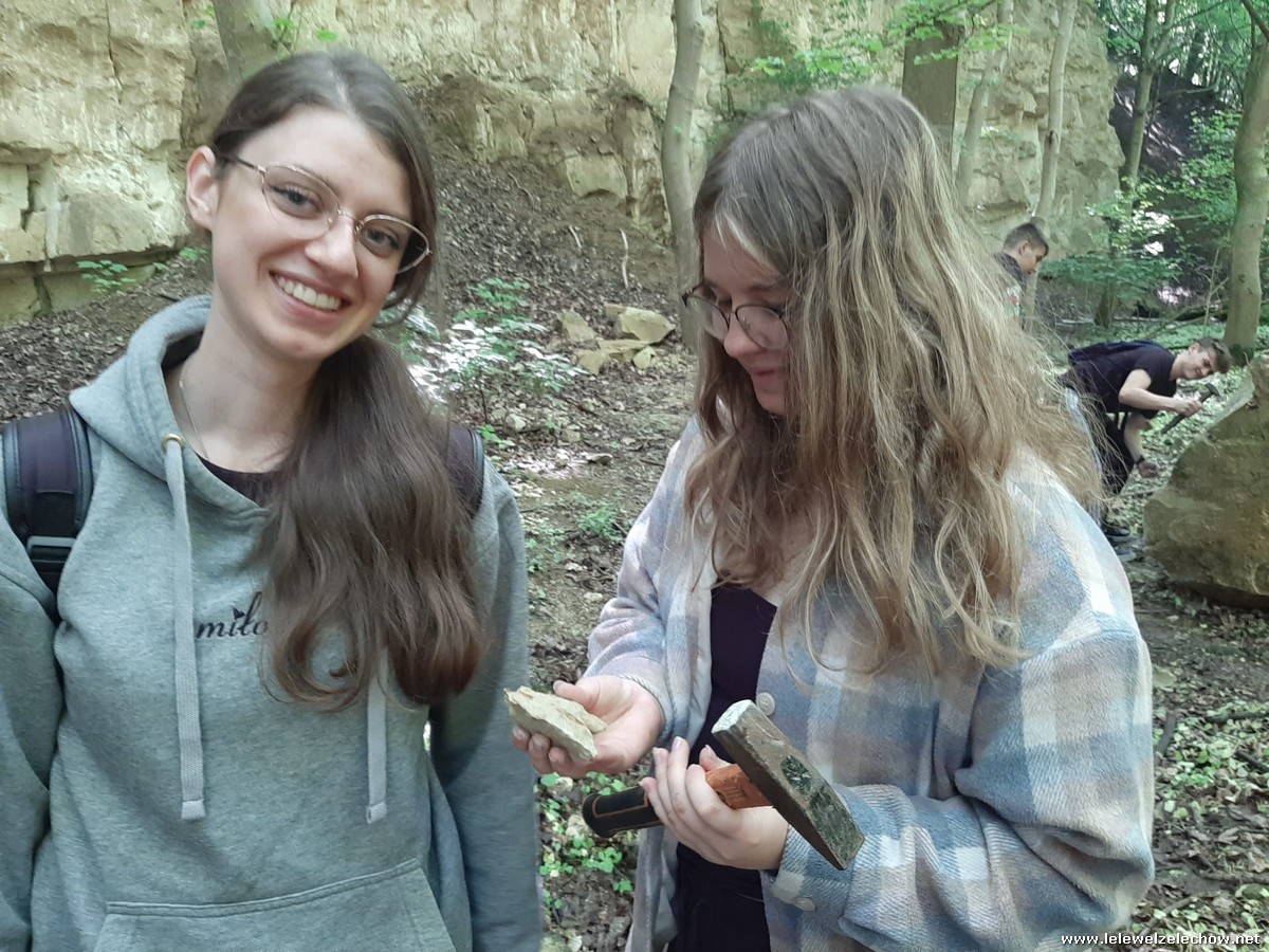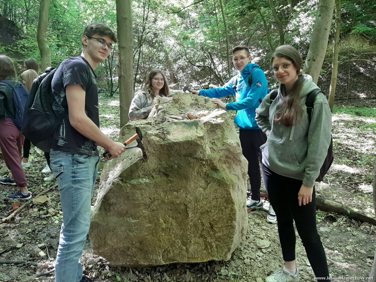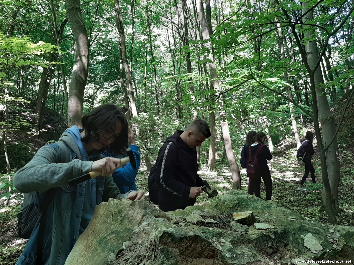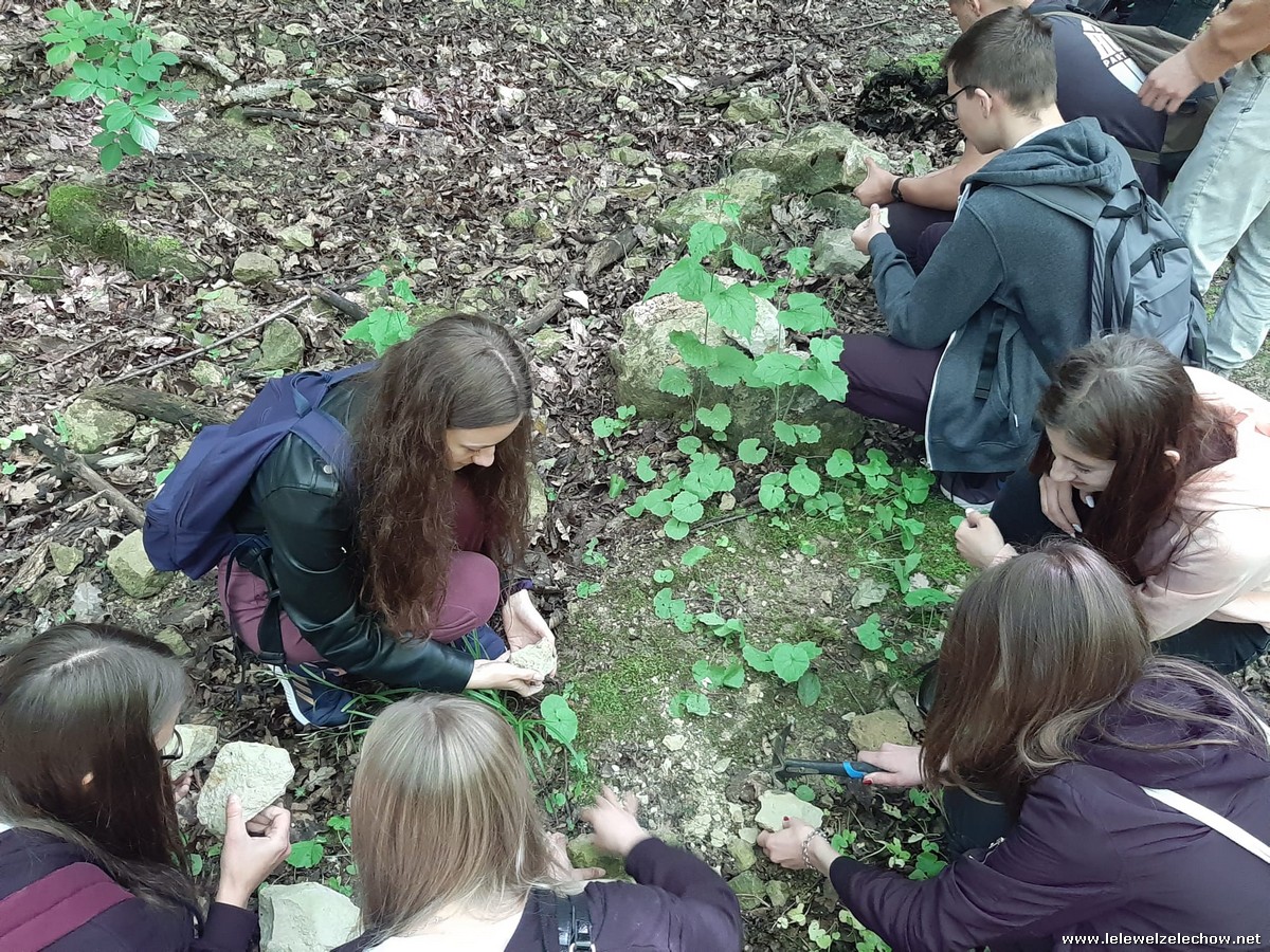 Pierwszym punktem były zajęcia z podstaw paleontologii w nieczynnym kamieniołomie - Kamienny Dół. Uczniowie dowiedzieli się o morskiej przeszłości obszaru Kazimierza Dolnego z końca górnej kredy (75-65 mln BP) oraz o bogatym życiu w ekosystemie ciepłego morza epikontynentalnego, które doprowadziło do powstania skał osadowych - opoki kazimierskie. Podczas pracy w grupach wiele osób odnalazło skamieniałości małż, gąbek oraz rafy koralowej.