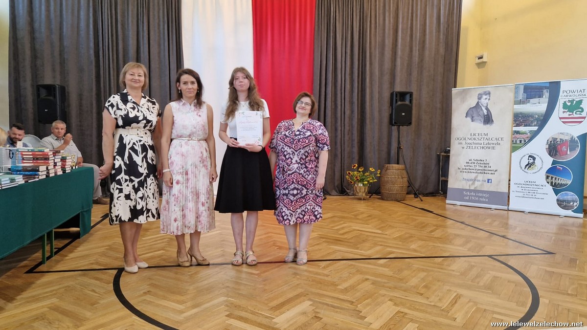 Uczennica Patrycja Polak, która uzyskała najwyższy wynik w szkole, dodatkowo otrzymała nagrodę Starosty Powiatu Garwolińskiego, a Maria Lesisz za aktywne uczestnictwo w życiu gminy nagrodę Burmistrz Żelechowa’