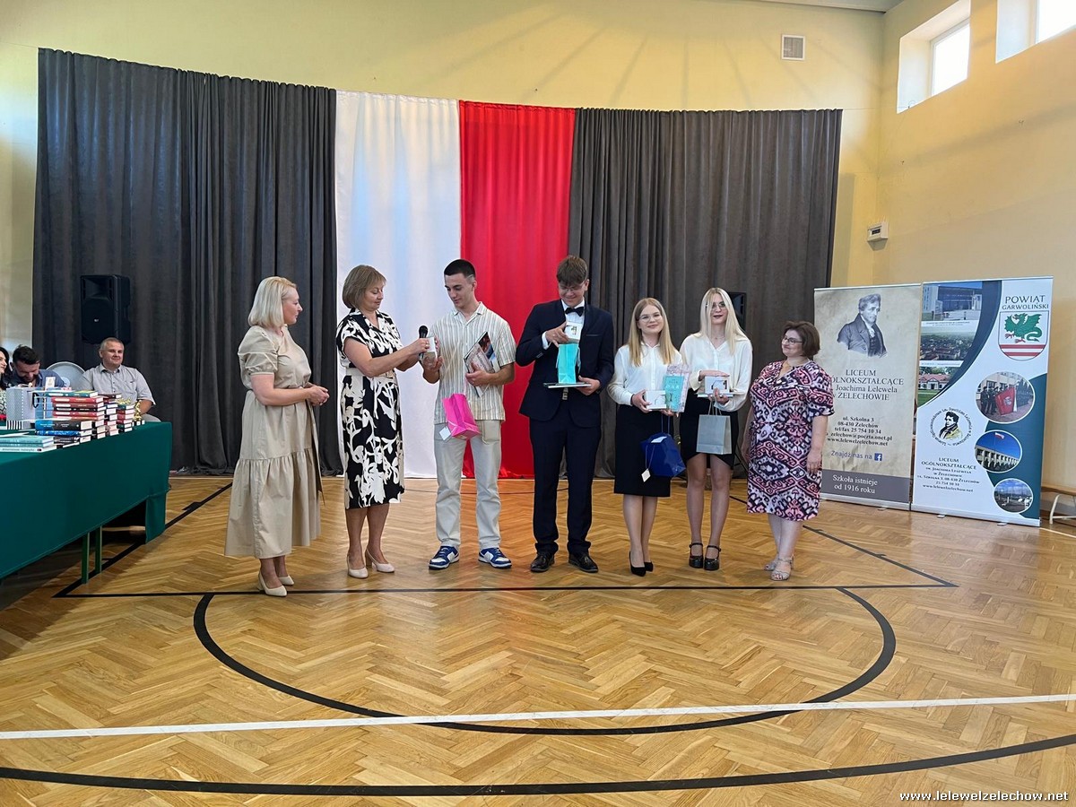 Uczniowie osiągający najwyższe wyniki w szkole zostali wyróżnieni nagrodami książkowymi, a ich rodzice otrzymali listy gratulacyjne