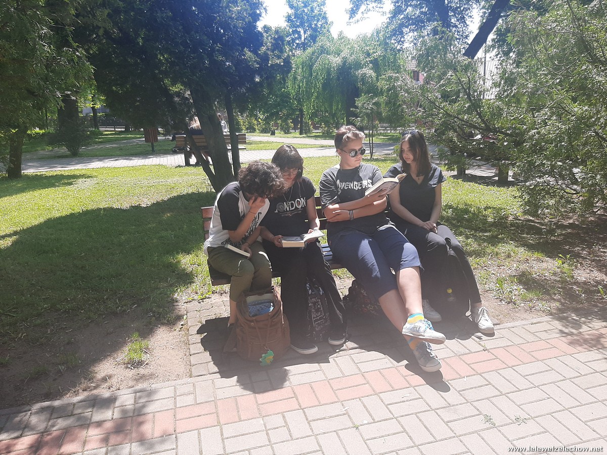 Trwała przez cały tydzień – od poniedziałku do piątku. Na długiej przewie uczniowie spotykali się na szkolnych alejkach, aby w cieniu drzew zanurzyć się w ulubionych tekstach literackich. We wspólnym czytaniu towarzyszyła nam Pani Dyrektor Sylwia Tomaszek, Pani Anna Włodarczyk oraz organizatorka akcji, Pani Magdalena Woźniak. Dziękujemy wszystkim za pięknie spędzony czas z książką.