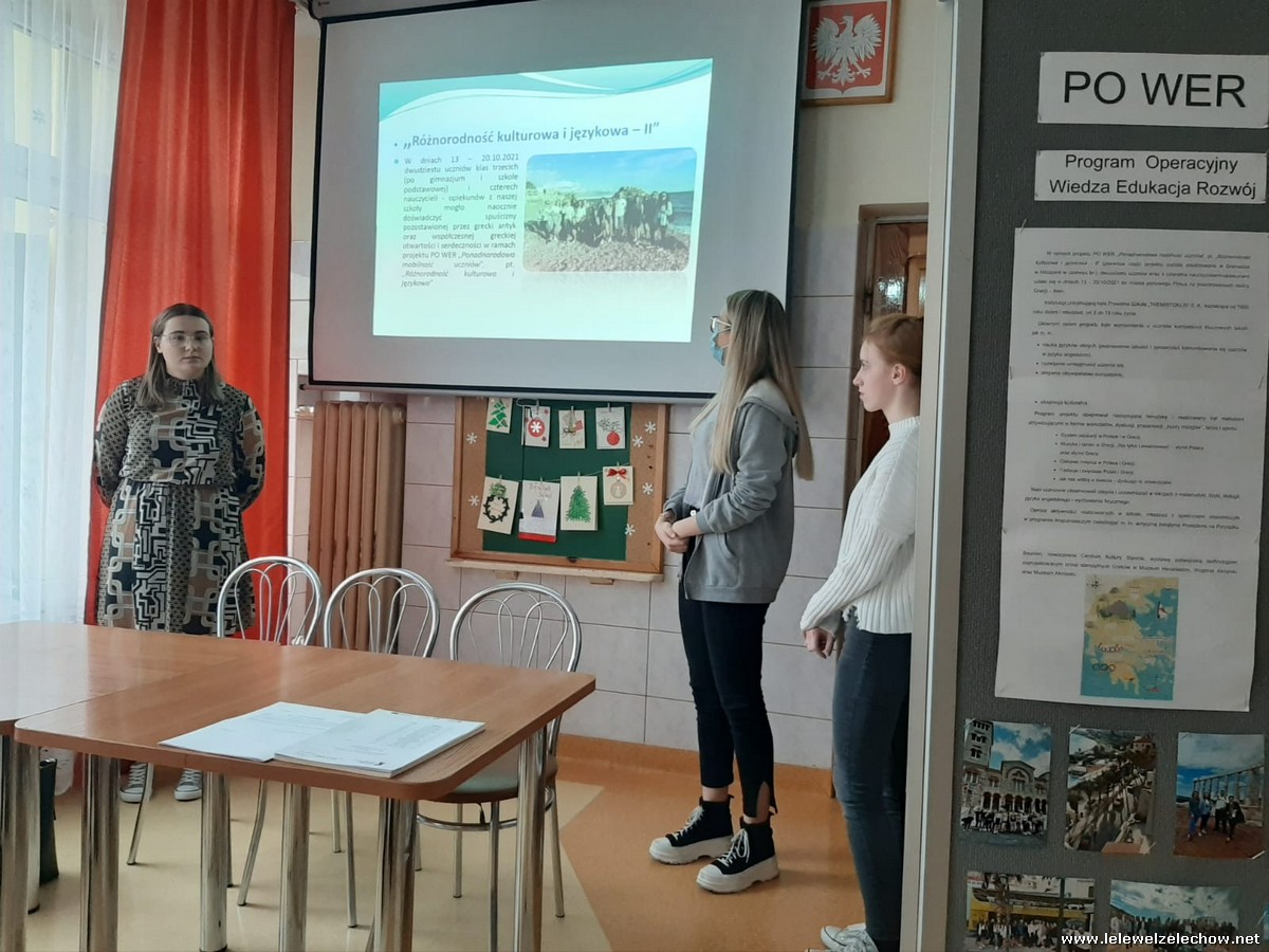 15 grudnia 2021 r. w Liceum Ogólnokształcącym im. Joachima Lelewela w Żelechowie odbyło się uroczyste podsumowanie projektu „Różnorodność kulturowa i językowa – II”. W spotkaniu uczestniczyli: dyrektor szkoły - pani Sylwia Tomaszek, nauczycielka i radna powiatowa - pani Urszula Kobielus, koordynator projektu pani Joanna Baraniecka, opiekunowie - pani Agnieszka Osial, pani Katarzyna Mucha, pan Arkadiuszowi Jurzysta oraz uczniowie.
