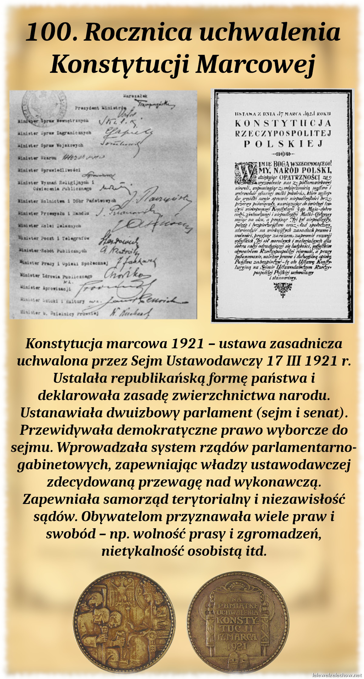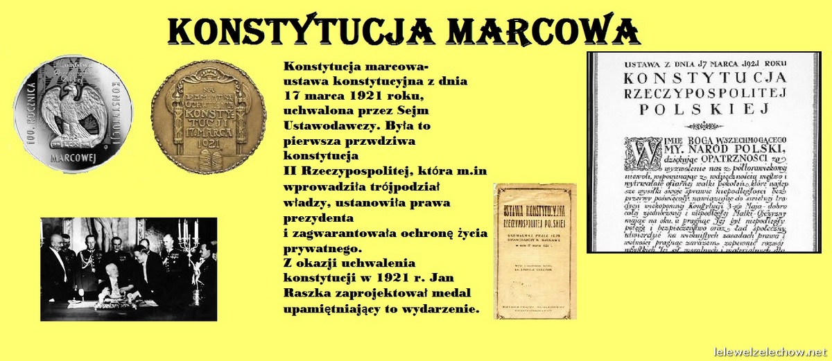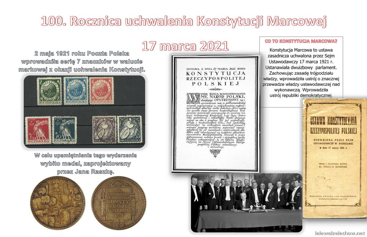100 lat temu 17 marca 1921 roku uchwalona została pierwsza pełna konstytucja II Rzeczypospolitej -Konstytucja Marcowa. Z tej okazji uczniowie klas I wykonali w ramach lekcji historii okolicznościowe plakaty.