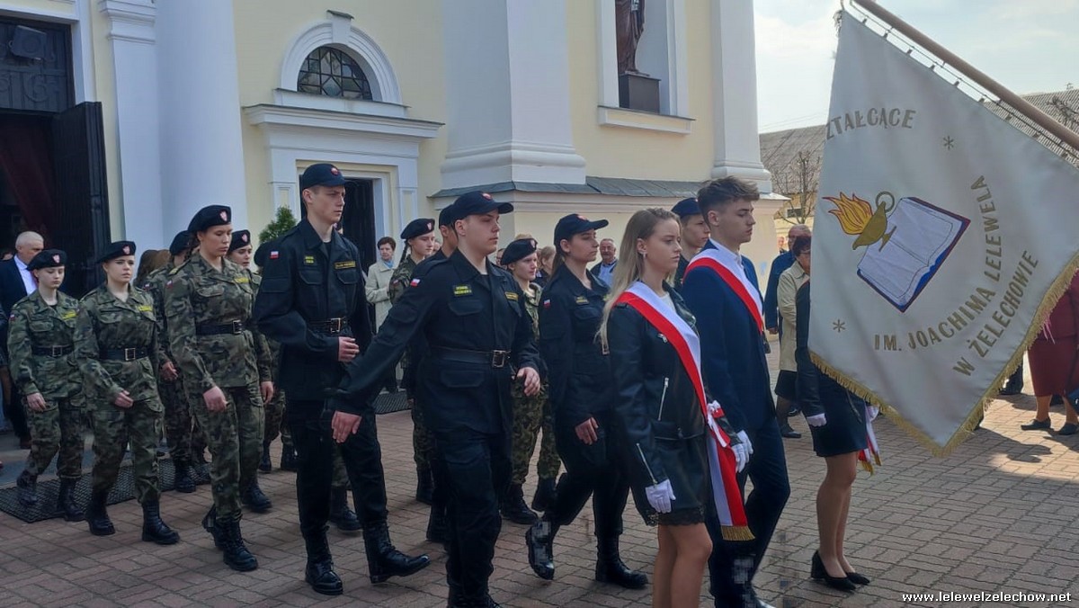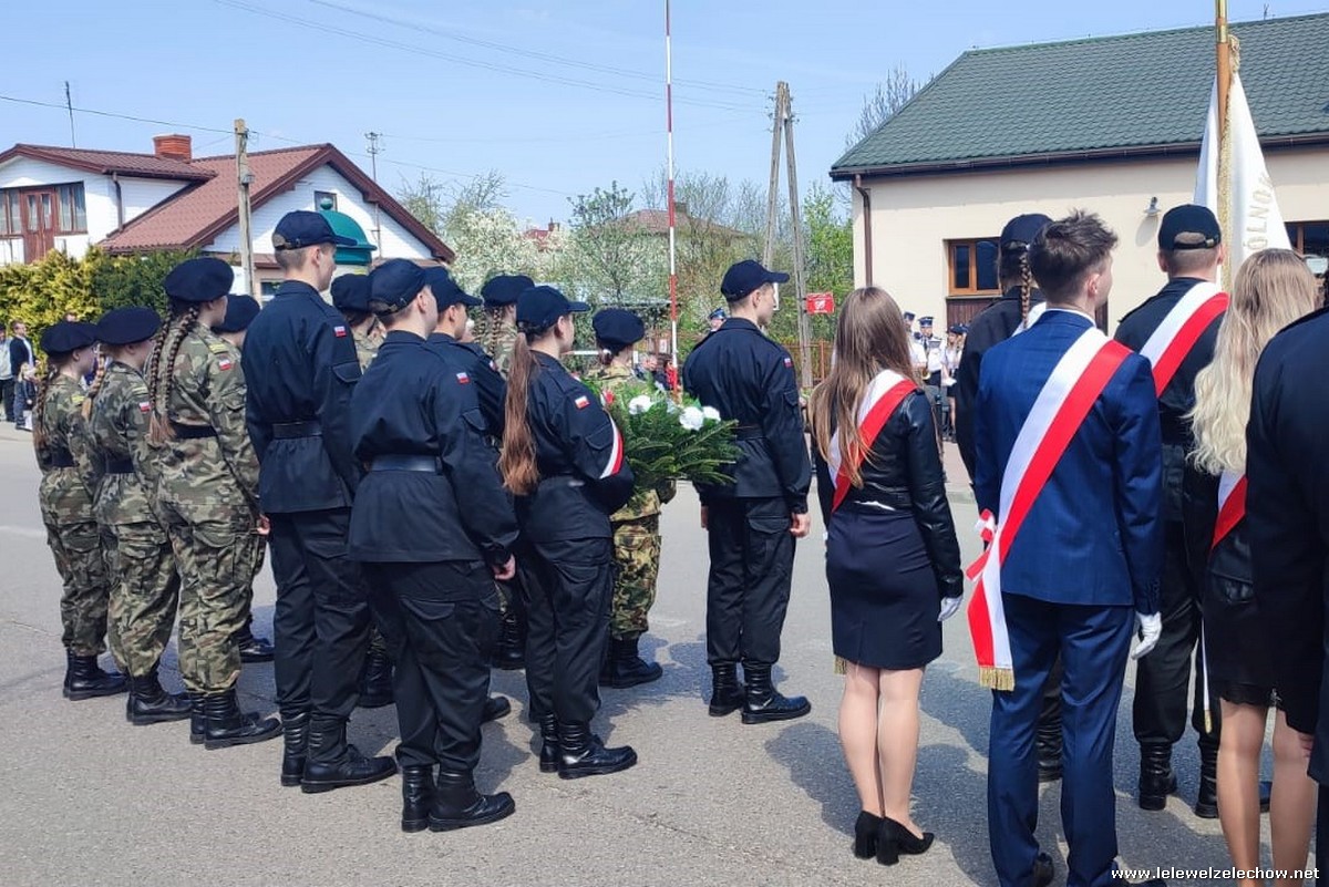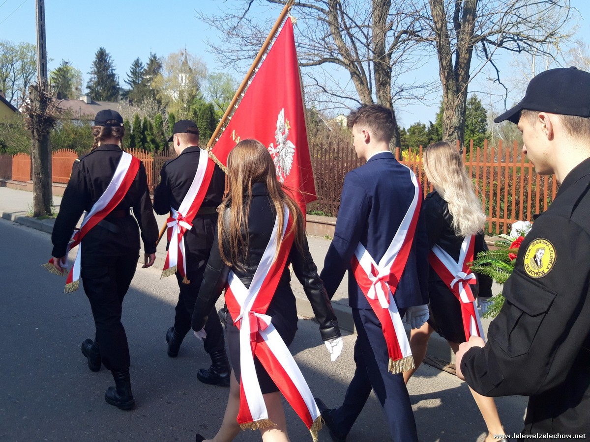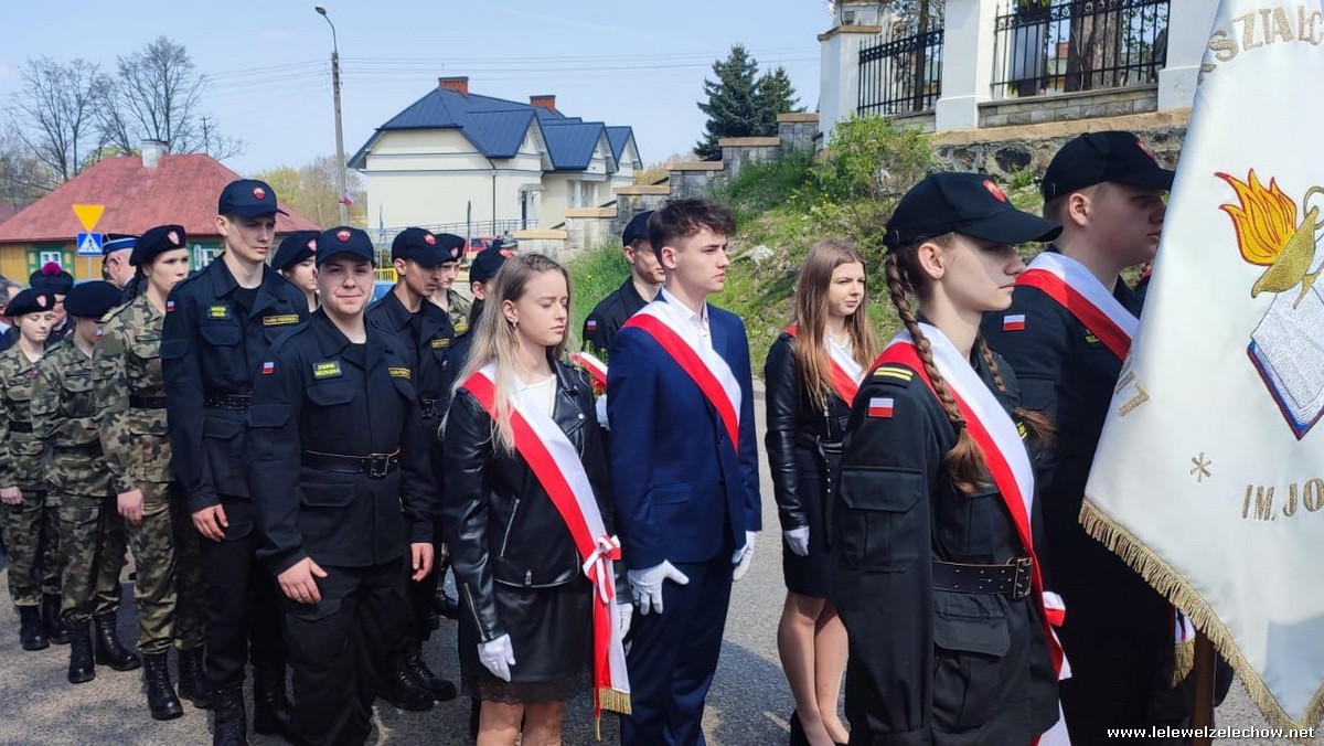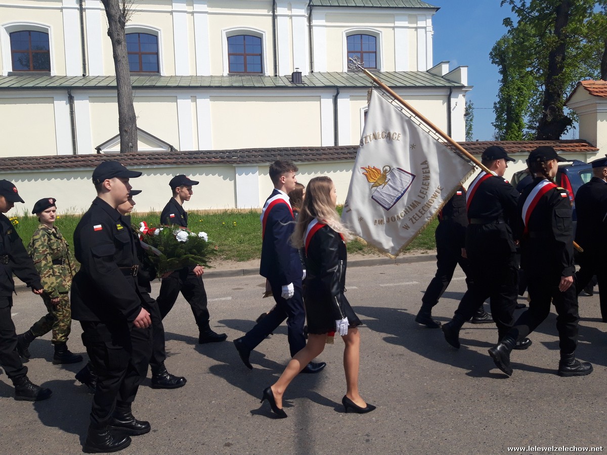 Poczet sztandarowy liceum, delegacja mundurowych wraz nauczycielami, uczestniczyli we Mszy Św. oraz obchodach gminnych na placu przy pomniku Konstytucji, gdzie złożyli kwiaty.