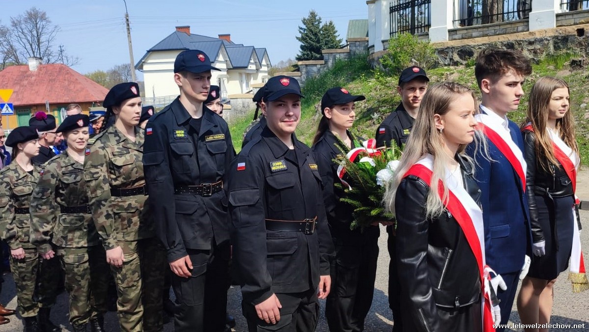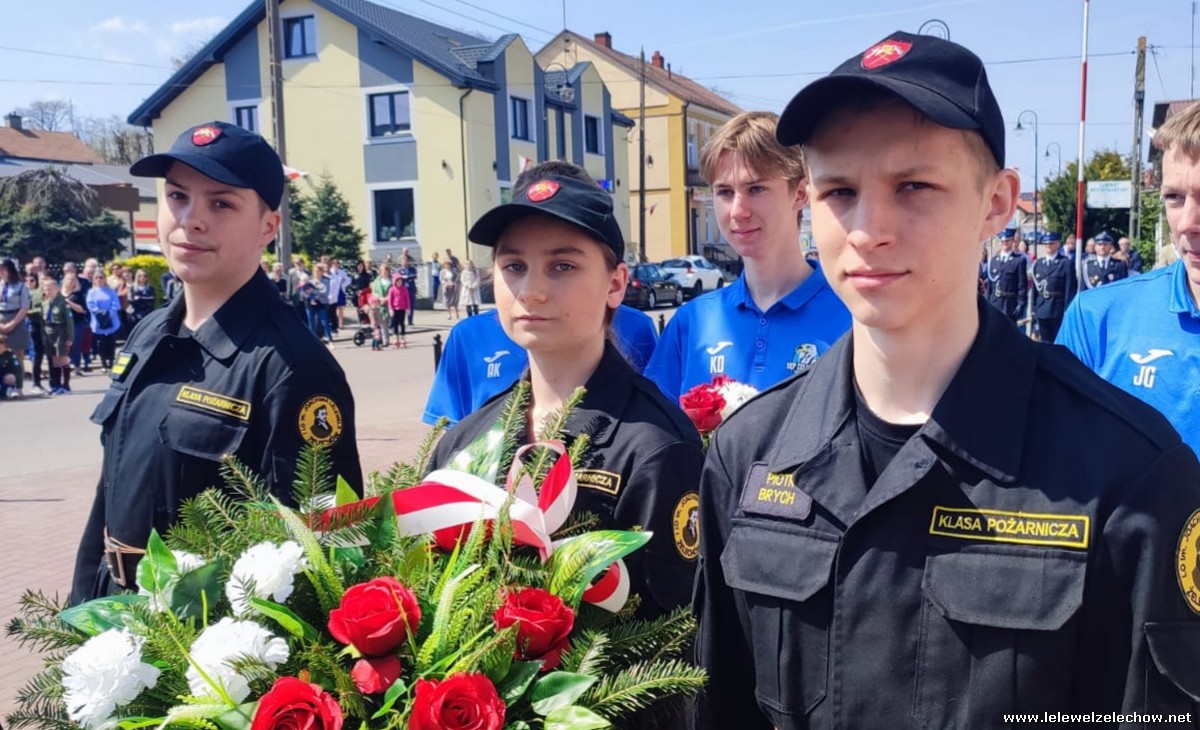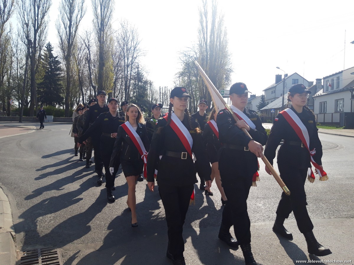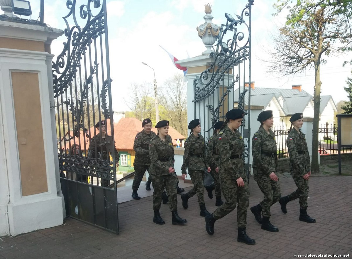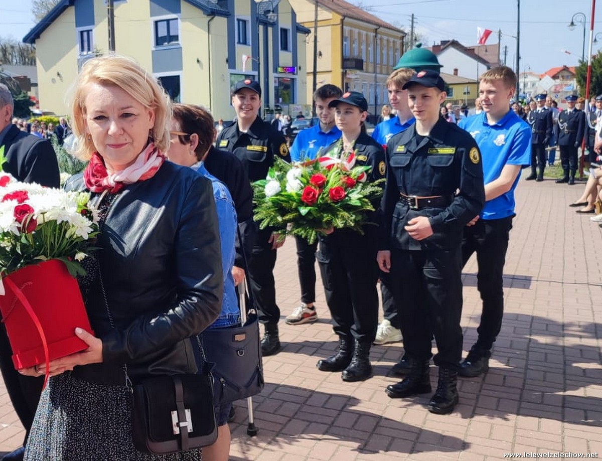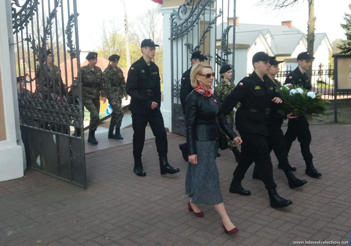 Poczet sztandarowy liceum, delegacja mundurowych wraz nauczycielami, uczestniczyli we Mszy Św. oraz obchodach gminnych na placu przy pomniku Konstytucji, gdzie złożyli kwiaty.