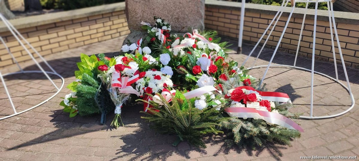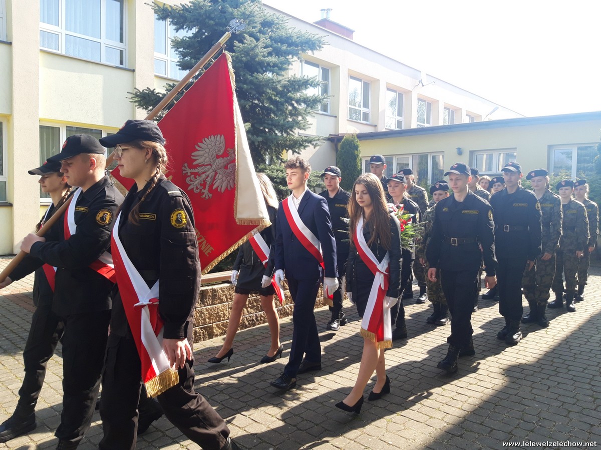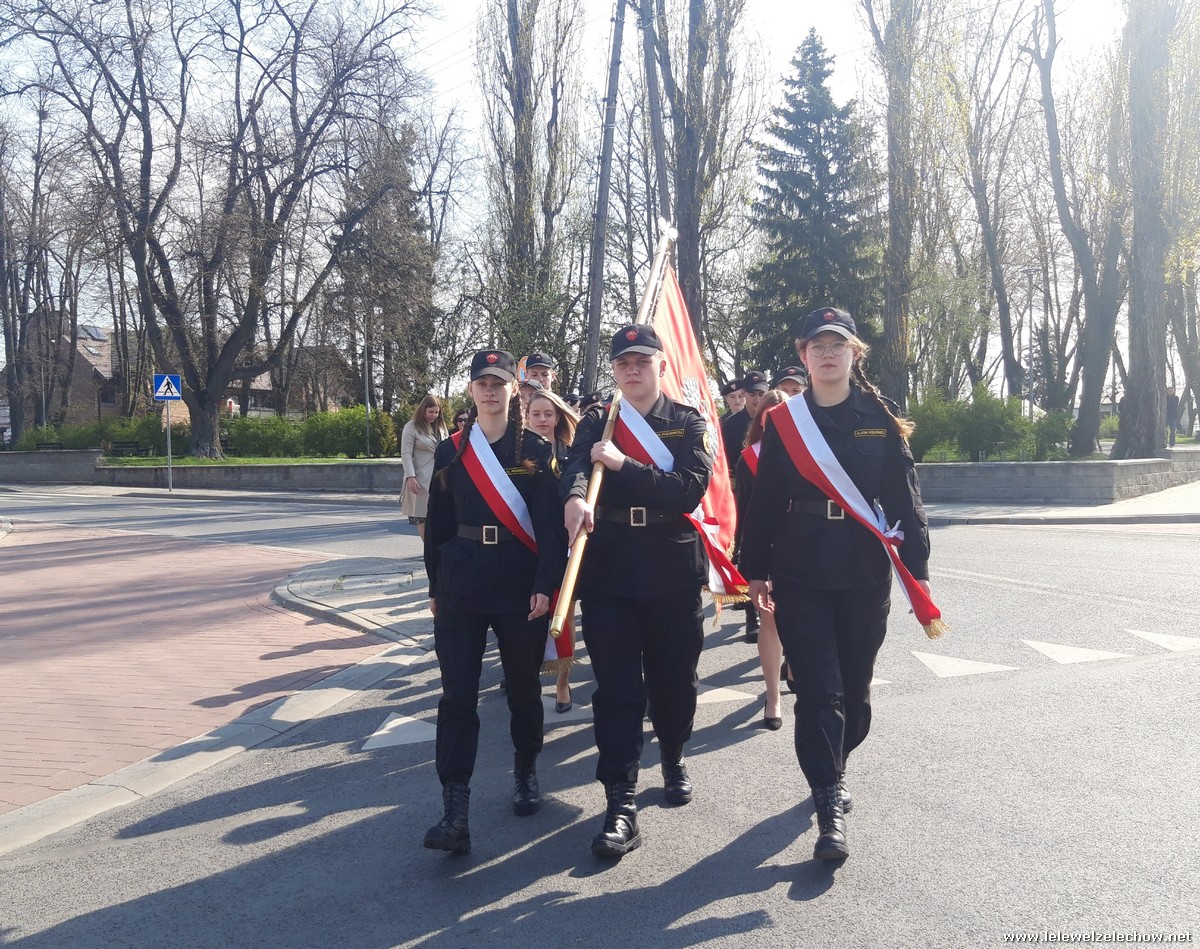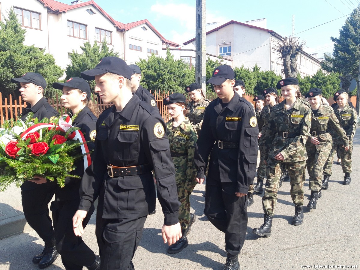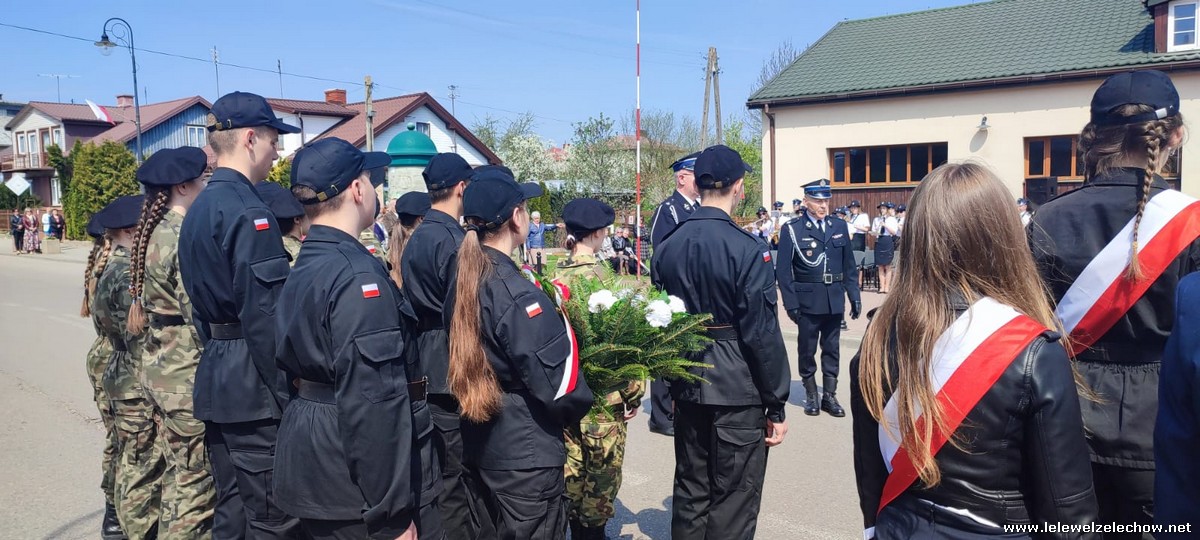 Poczet sztandarowy liceum, delegacja mundurowych wraz nauczycielami, uczestniczyli we Mszy Św. oraz obchodach gminnych na placu przy pomniku Konstytucji, gdzie złożyli kwiaty.