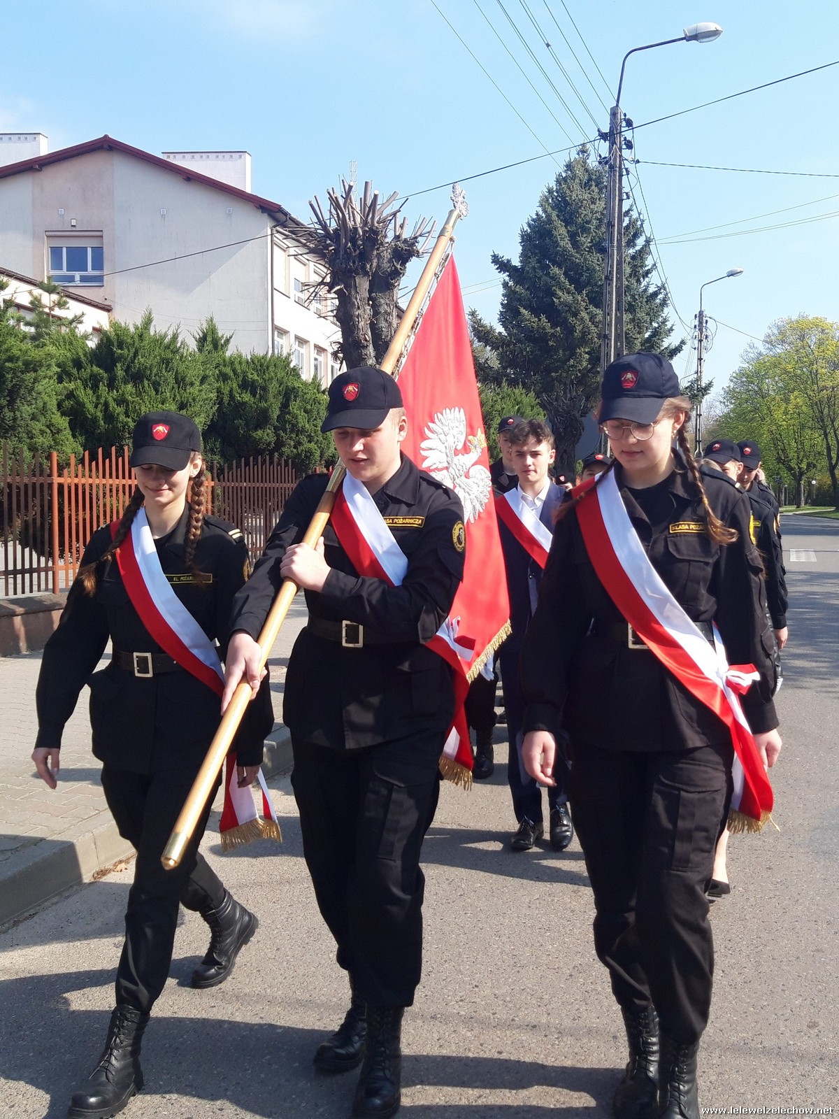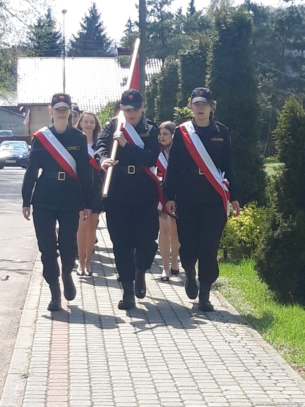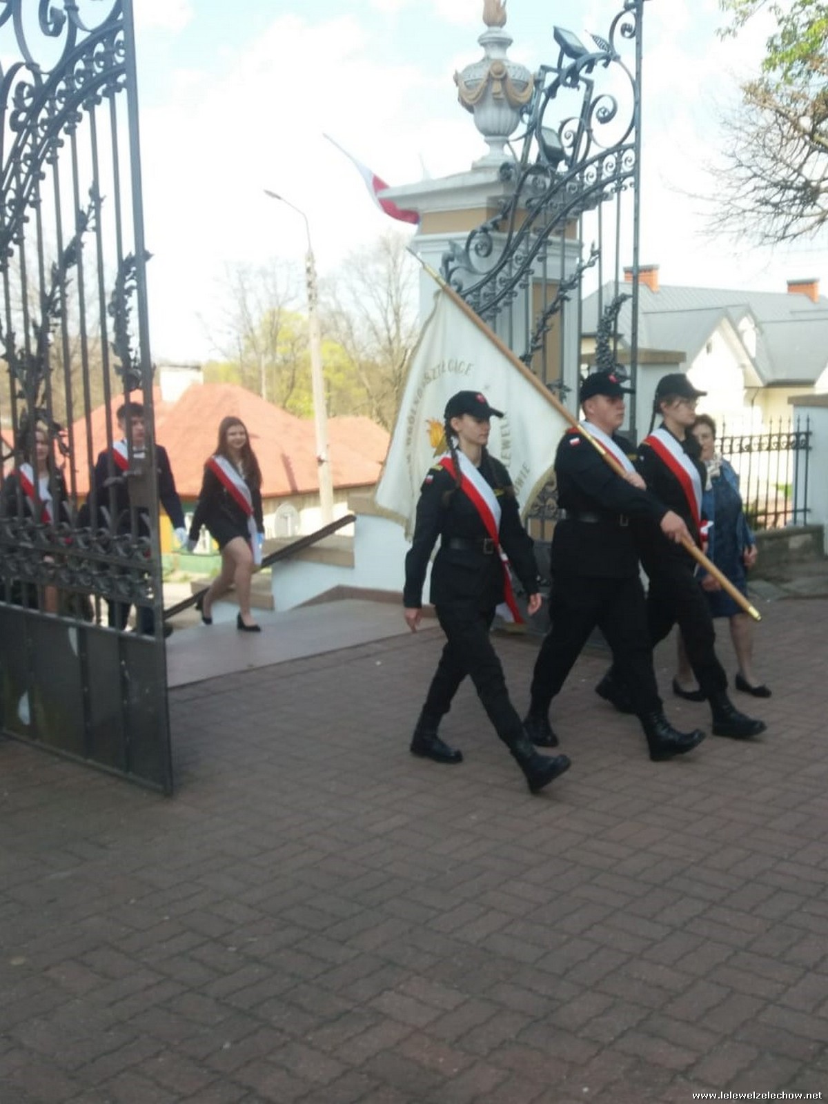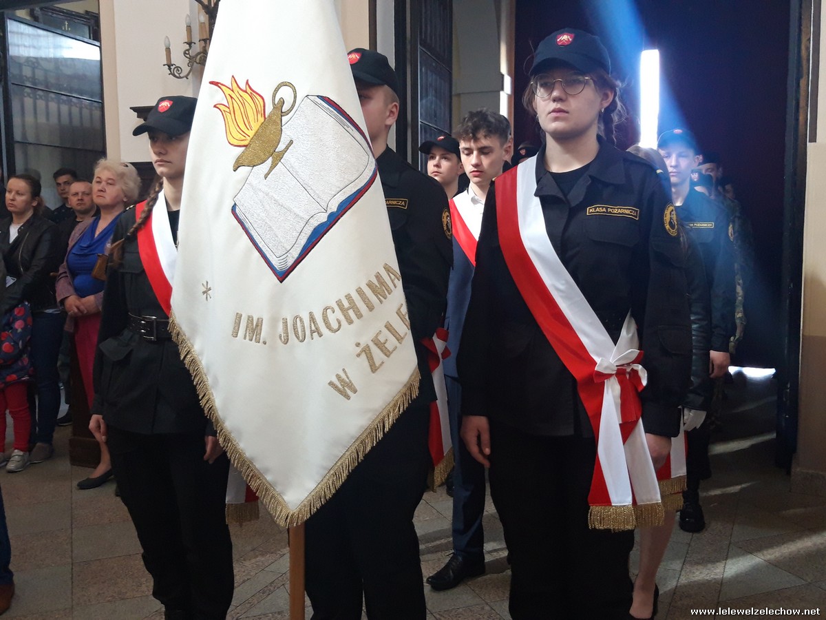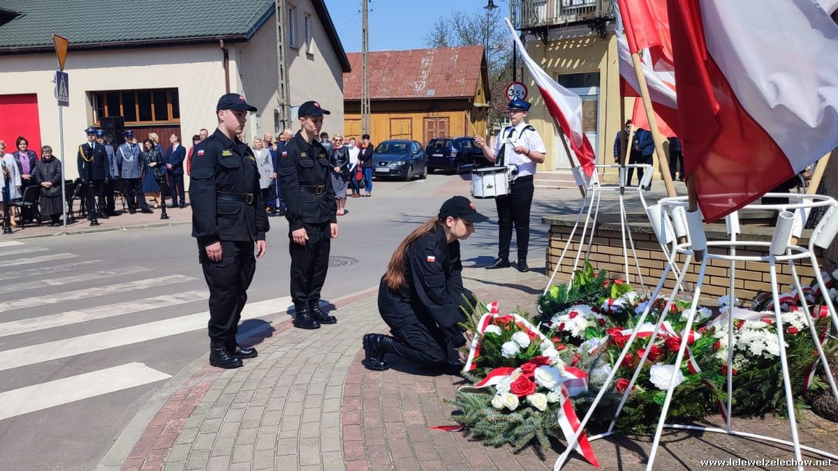 Poczet sztandarowy liceum, delegacja mundurowych wraz nauczycielami, uczestniczyli we Mszy Św. oraz obchodach gminnych na placu przy pomniku Konstytucji, gdzie złożyli kwiaty.