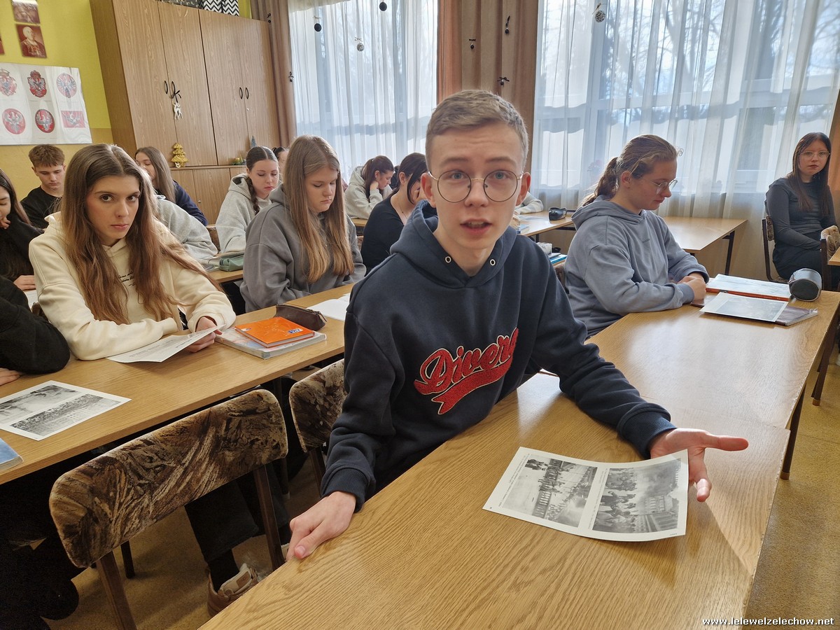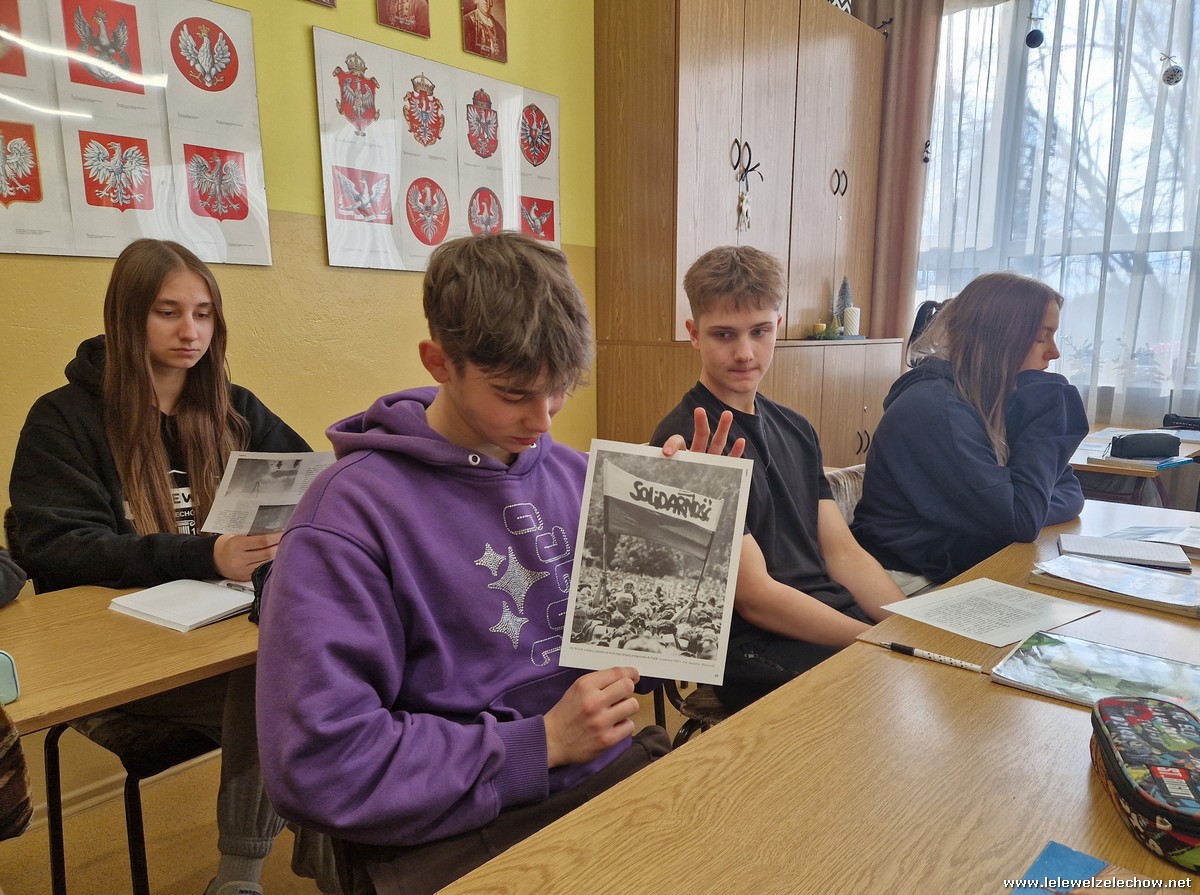 W rocznicę pacyfikacji kopalni ,,Wujek" w klasie 2a w ramach lekcji historii zostaly przeprowadzone przez panią Urszulę Kobielus zajęcia na temat realiów stanu wojennego. Uczniowie na podstawie materiałów IPN opowiadali o internowaniu działaczy Solidarności, manifestacjach, nielegalnych wydawnictwach, mszach za ojczyznę, reakcjach świata na sytuację w Polsce. Na holu szkoły uczniowie przygotowali również wystawę prezentująca wydarzenia tego czasu.