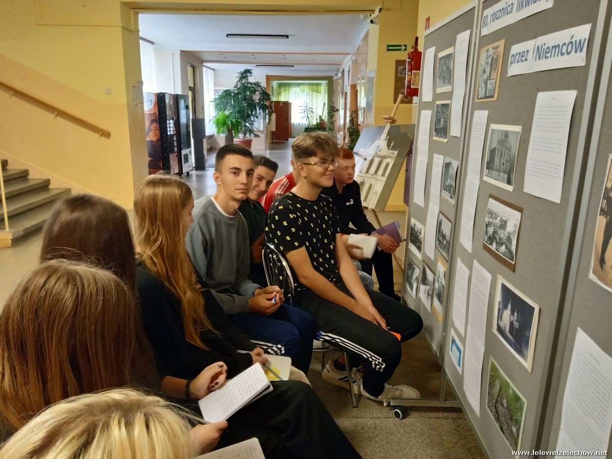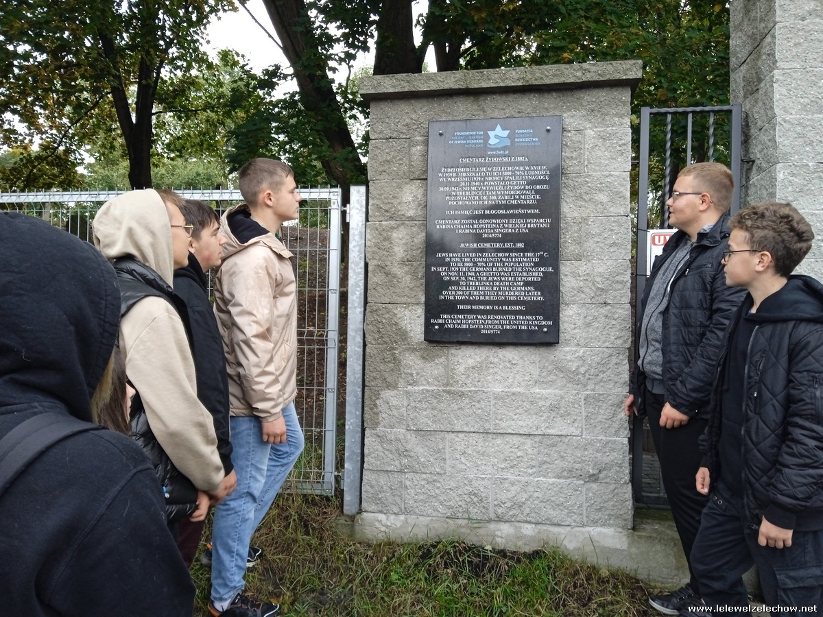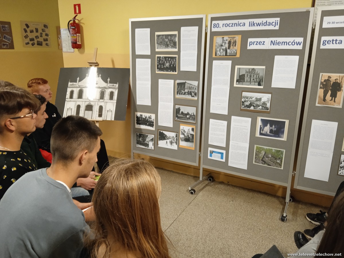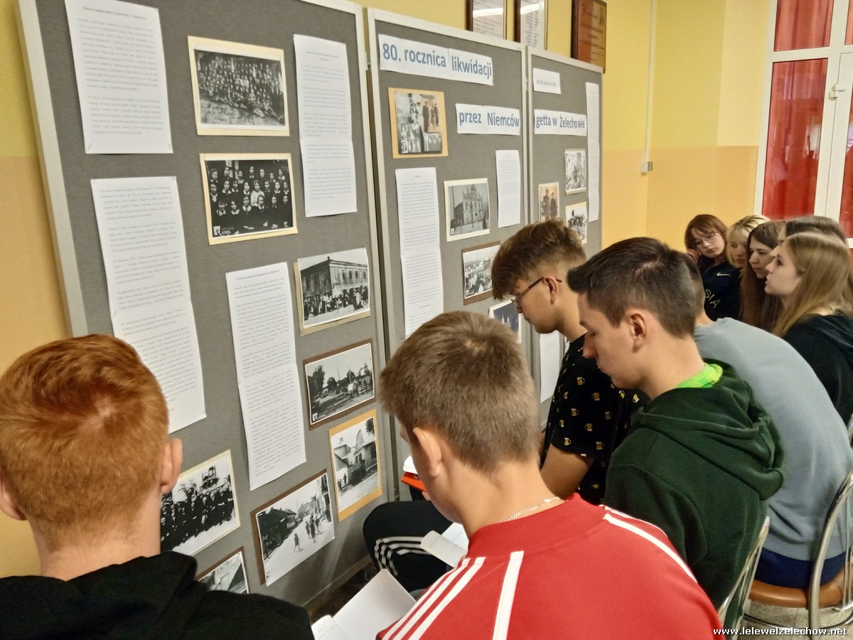 Z okazji 80.rocznicy likwidacji przez Niemców żelechowskiego getta uczniowie liceum w ramach przedmiotów historia i teraźniejszość oraz historia, zostali zapoznani z przeszłością ludności żydowskiej w Żelechowie. Klasy 1a, 1b i 2b miały okazję zapoznać się z materiałami poświęconymi tej społeczności zaprezentowanymi na wystawie usytuowanej w holu szkoły. Uzyskali z nich szereg informacji oraz obejrzeli nieznane sobie fotografie sprzed lat. Klasa 1c oraz grupa 1b udały się natomiast do miejscowego parku, tam gdzie kiedyś stała synagoga i przy tablicy upamiętniającej ten fakt chwilę się zatrzymali oraz złożyli kwiaty i zapalili znicz. Następnie klasa 1c udała się na miejscowy kirkut, gdzie dzięki uprzejmości opiekunki cmentarza mogła wejść na jego teren, obejrzeć zachowane macewy oraz współczesny ohel. W wyznaczonym miejscu uczniowie złożyli kwiaty i zapalili znicz oraz uczcili pamięć pomordowanych przez Niemców współmieszkańców naszego miasta minutą ciszy. Inicjatorką tych działań była nauczycielka historii - pani Urszula Kobielus.