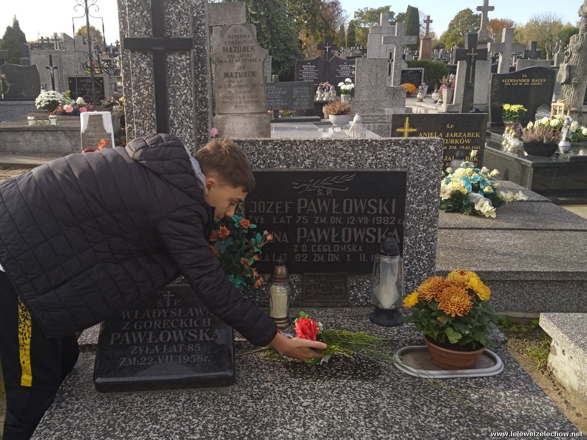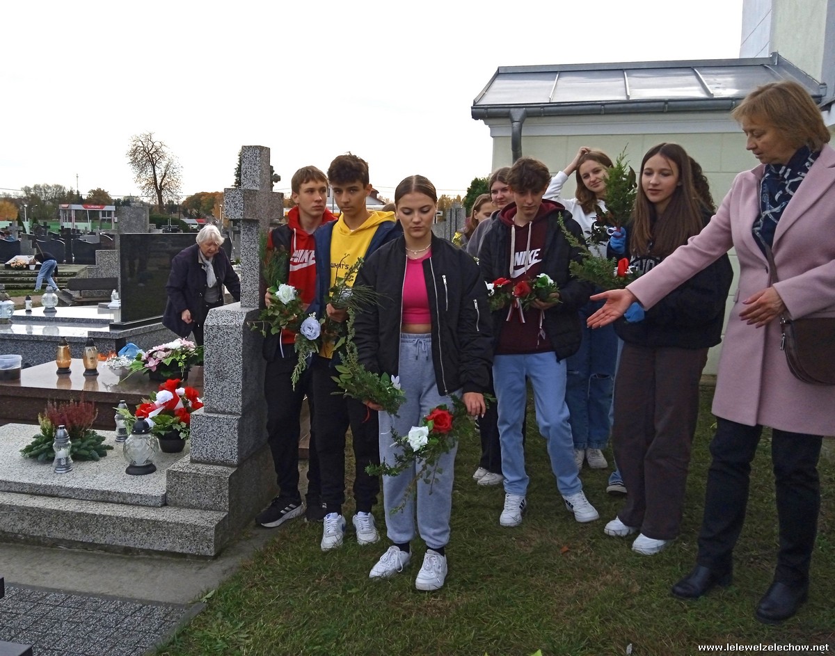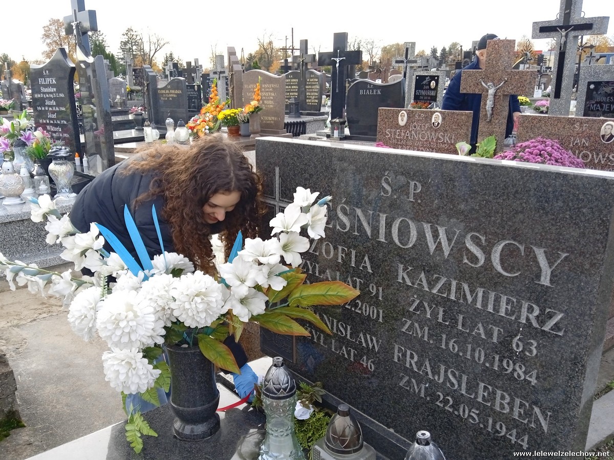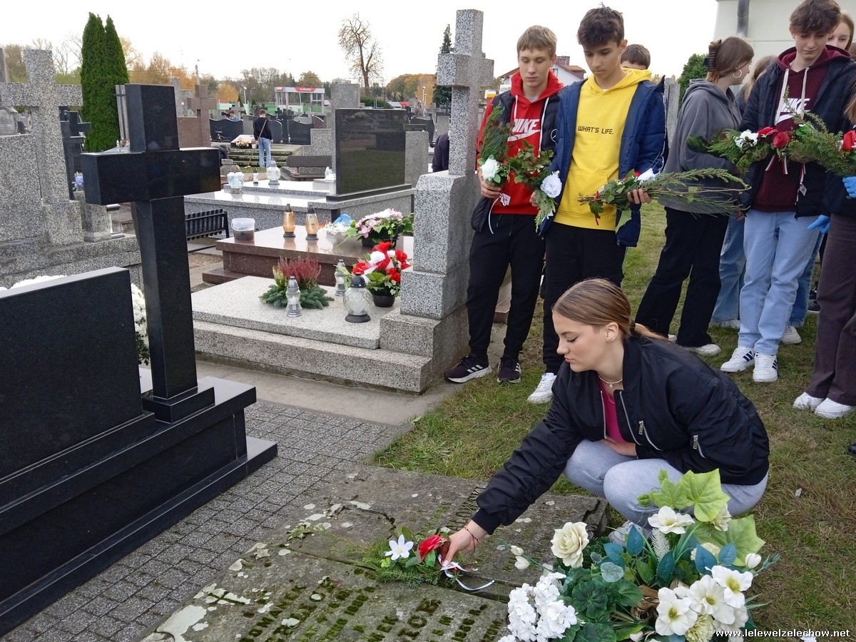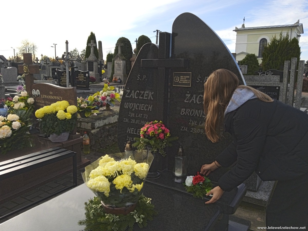 30 października, w dniu finału akcji, uczniowie z klasy 1c wraz z panią Dyrektor i panią Urszulą Kobielus, koordynatorem akcji w naszej szkole, udali się na miejscowy cmentarz. Licealiści złożyli wiązanki na grobach dawnych właścicieli ziemskich, księży, powstańców, działaczy konspiracji różnego czasu, żołnierzy września, żołnierzy AK, lekarzy, społeczników, nauczycieli… Kwiaty położyli również na zabytkowych, często zapomnianych nagrobkach. We wszystkich tych miejscach SU w dniu 1 listopada zapali znicze.