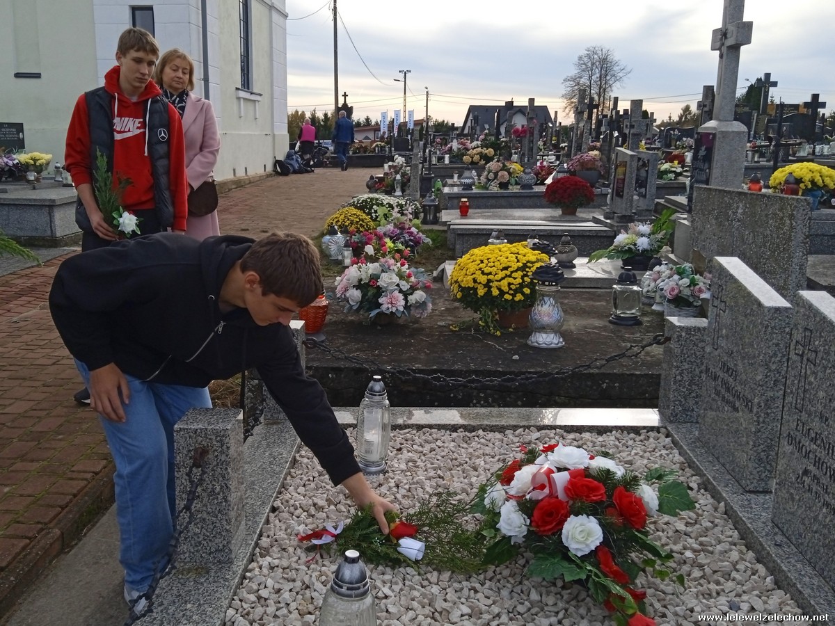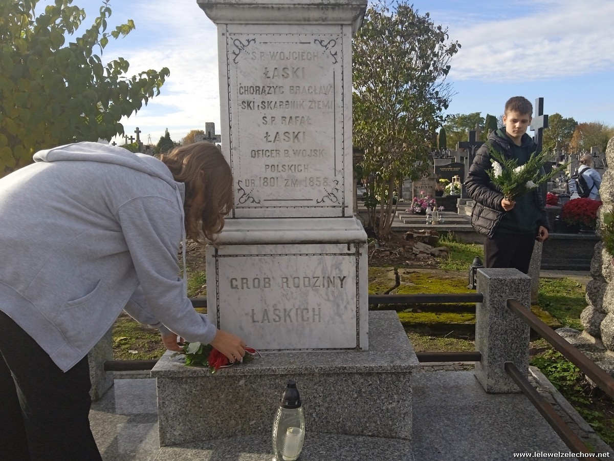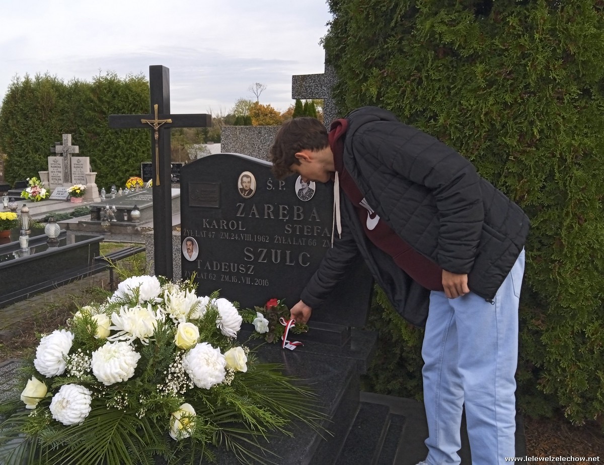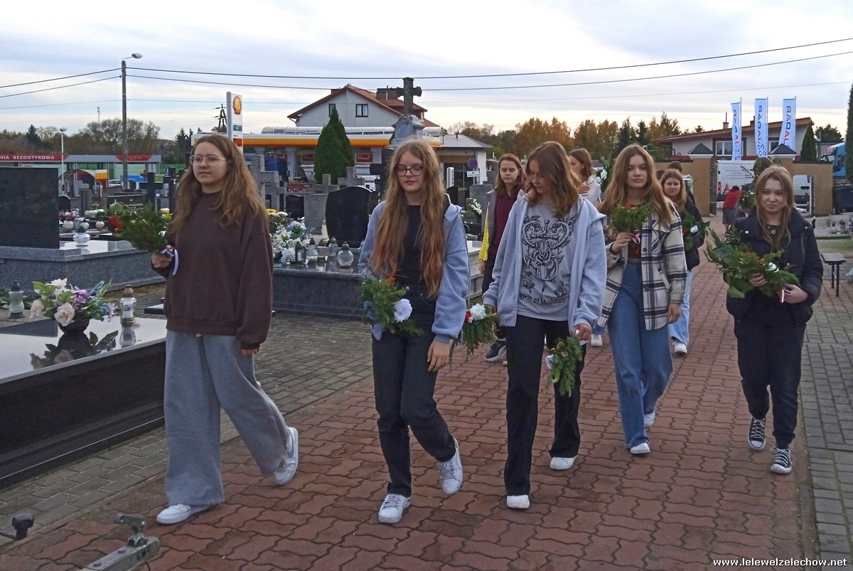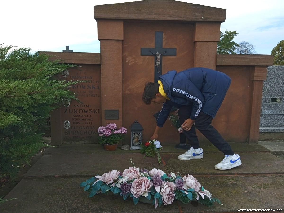30 października, w dniu finału akcji, uczniowie z klasy 1c wraz z panią Dyrektor i panią Urszulą Kobielus, koordynatorem akcji w naszej szkole, udali się na miejscowy cmentarz. Licealiści złożyli wiązanki na grobach dawnych właścicieli ziemskich, księży, powstańców, działaczy konspiracji różnego czasu, żołnierzy września, żołnierzy AK, lekarzy, społeczników, nauczycieli… Kwiaty położyli również na zabytkowych, często zapomnianych nagrobkach. We wszystkich tych miejscach SU w dniu 1 listopada zapali znicze.