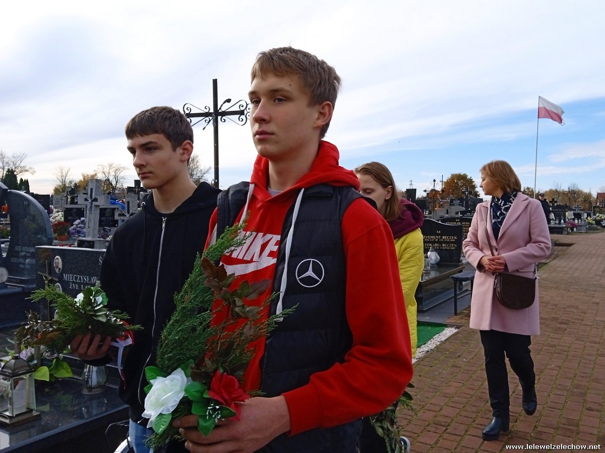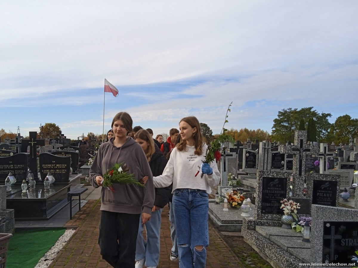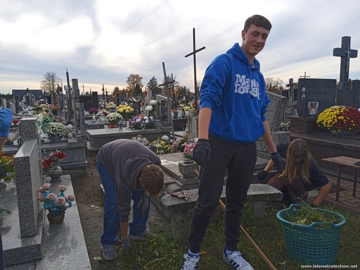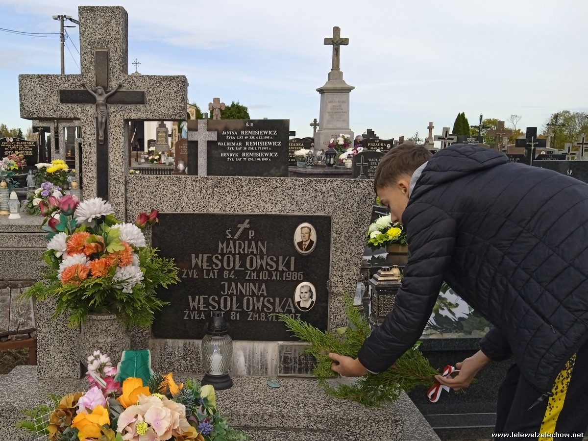 30 października, w dniu finału akcji, uczniowie z klasy 1c wraz z panią Dyrektor i panią Urszulą Kobielus, koordynatorem akcji w naszej szkole, udali się na miejscowy cmentarz. Licealiści złożyli wiązanki na grobach dawnych właścicieli ziemskich, księży, powstańców, działaczy konspiracji różnego czasu, żołnierzy września, żołnierzy AK, lekarzy, społeczników, nauczycieli… Kwiaty położyli również na zabytkowych, często zapomnianych nagrobkach. We wszystkich tych miejscach SU w dniu 1 listopada zapali znicze.
