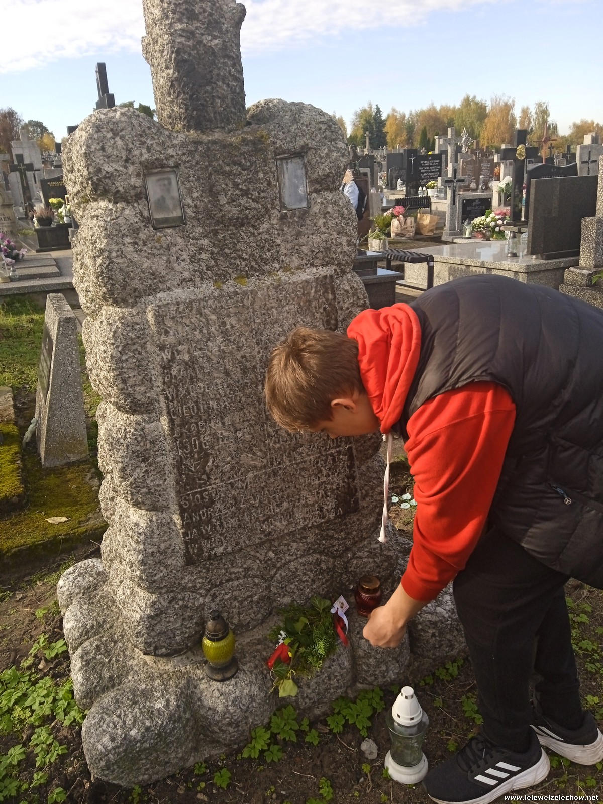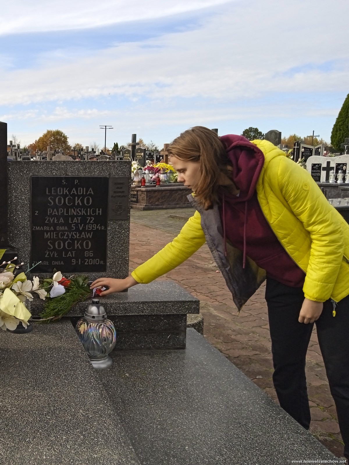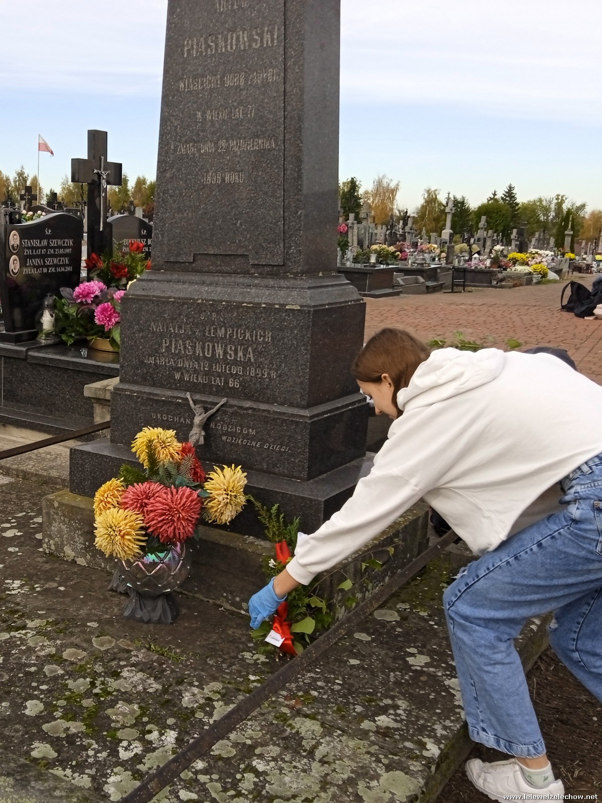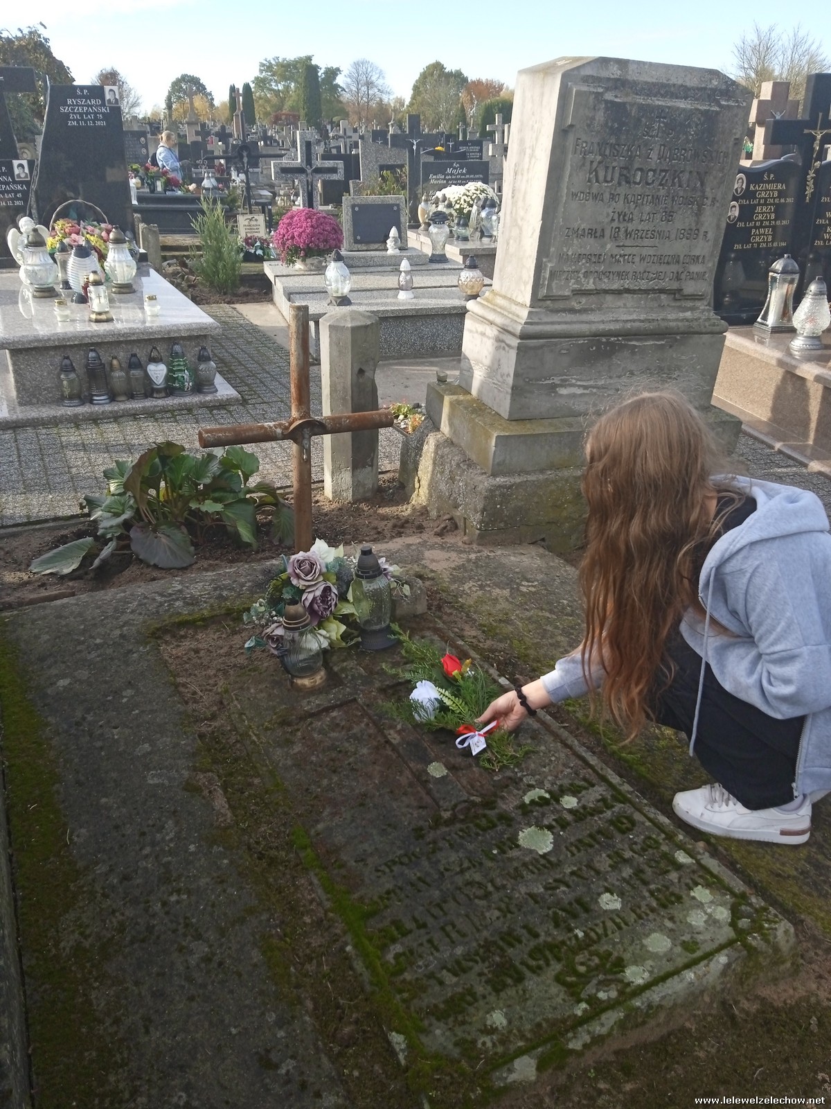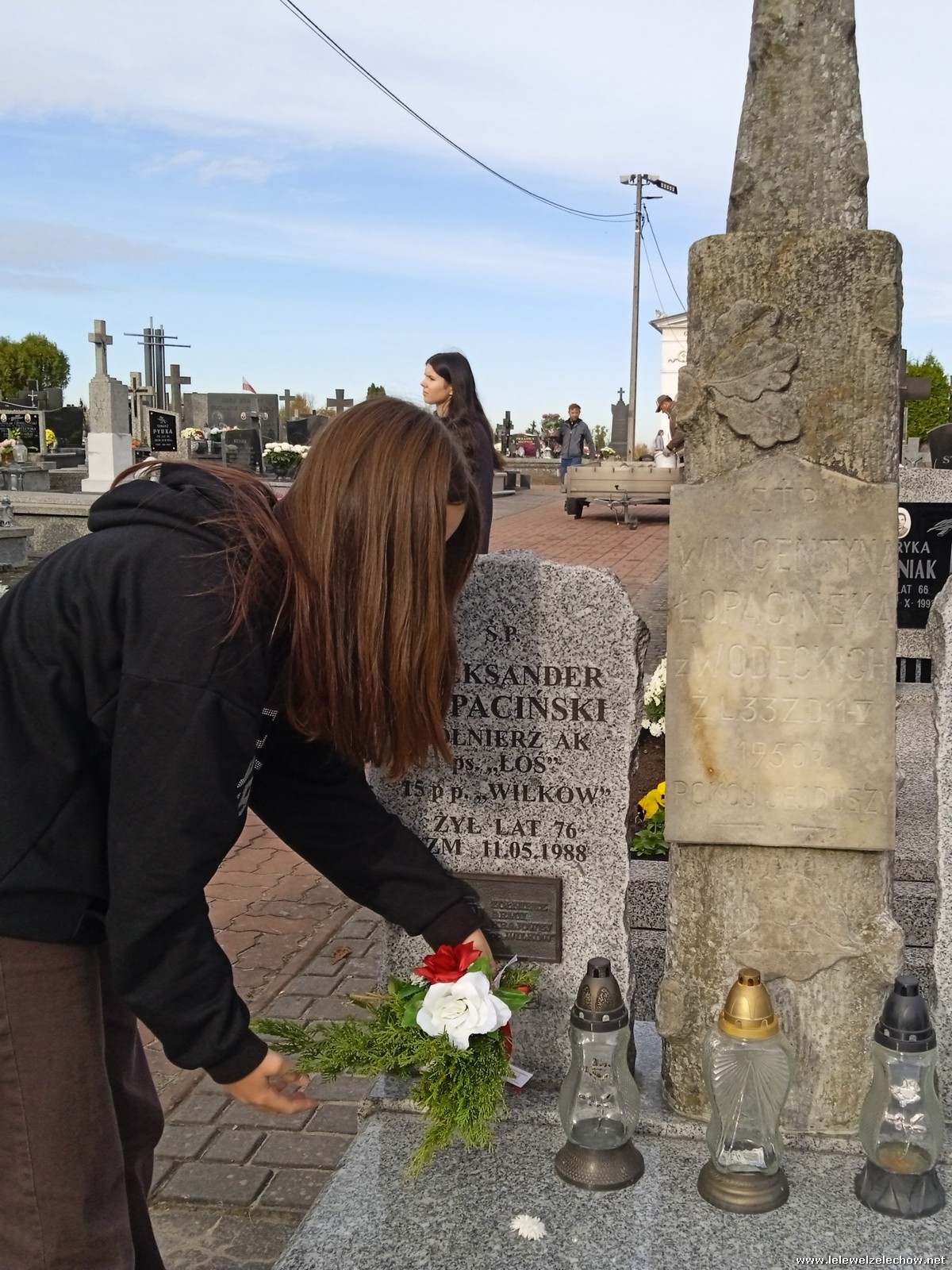 30 października, w dniu finału akcji, uczniowie z klasy 1c wraz z panią Dyrektor i panią Urszulą Kobielus, koordynatorem akcji w naszej szkole, udali się na miejscowy cmentarz. Licealiści złożyli wiązanki na grobach dawnych właścicieli ziemskich, księży, powstańców, działaczy konspiracji różnego czasu, żołnierzy września, żołnierzy AK, lekarzy, społeczników, nauczycieli… Kwiaty położyli również na zabytkowych, często zapomnianych nagrobkach. We wszystkich tych miejscach SU w dniu 1 listopada zapali znicze.