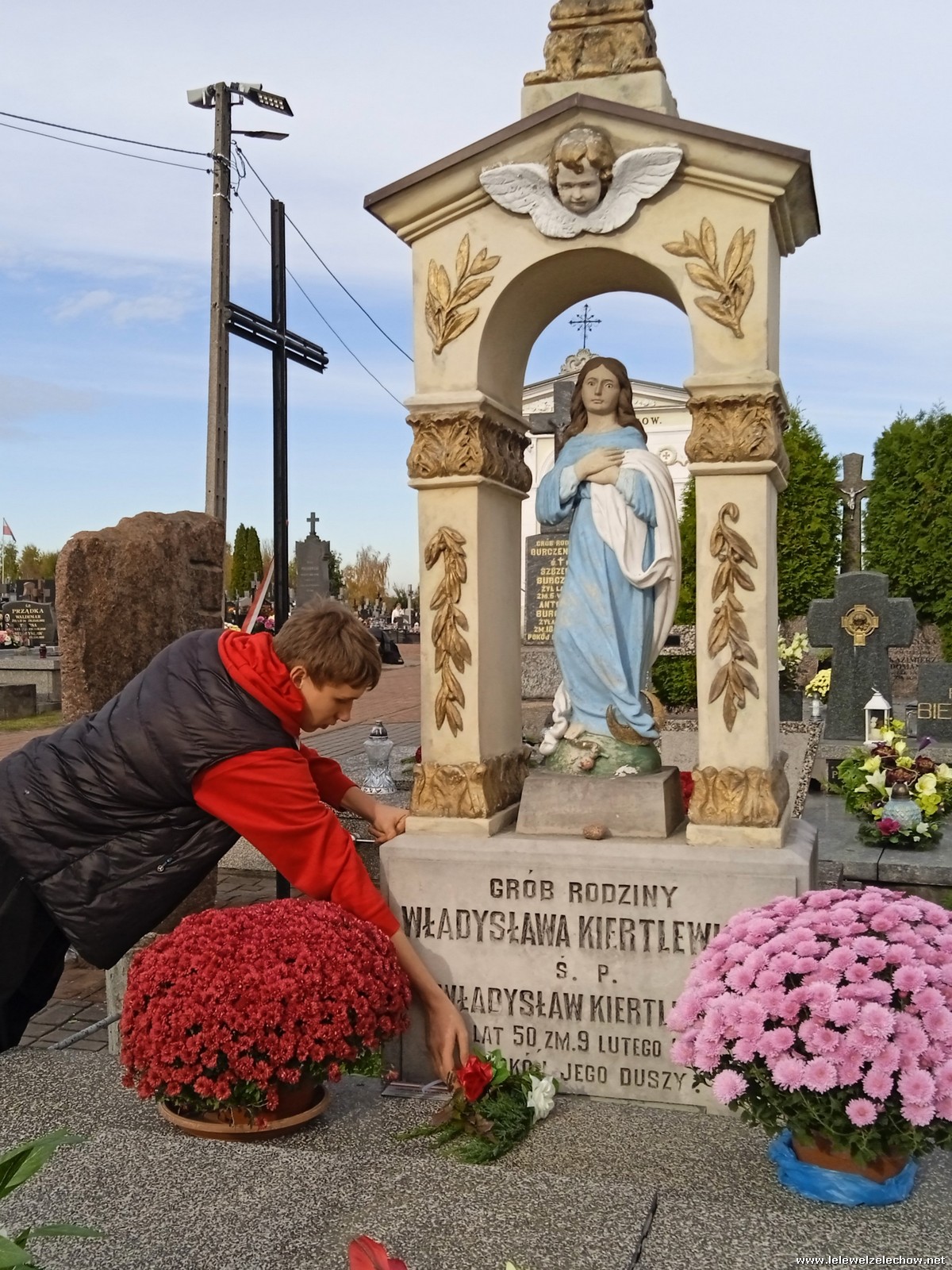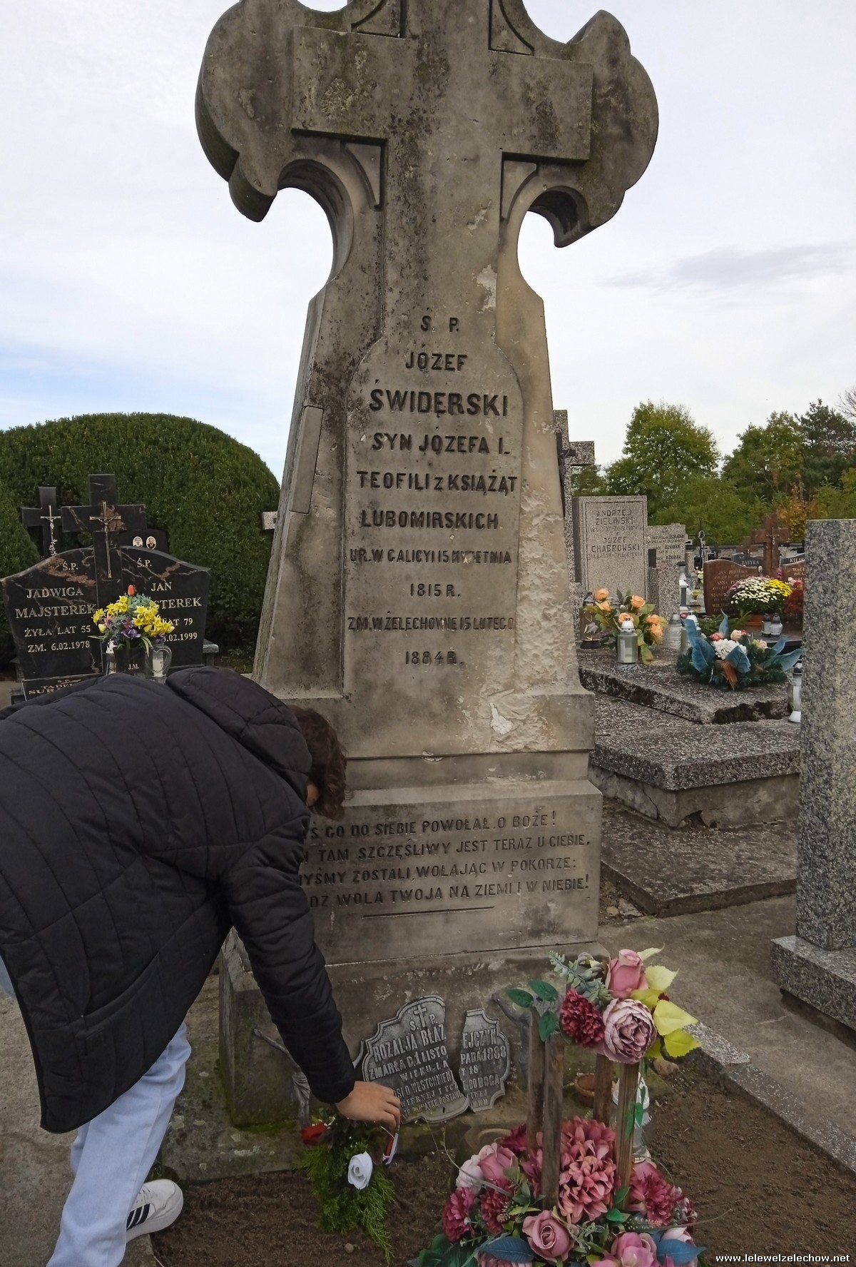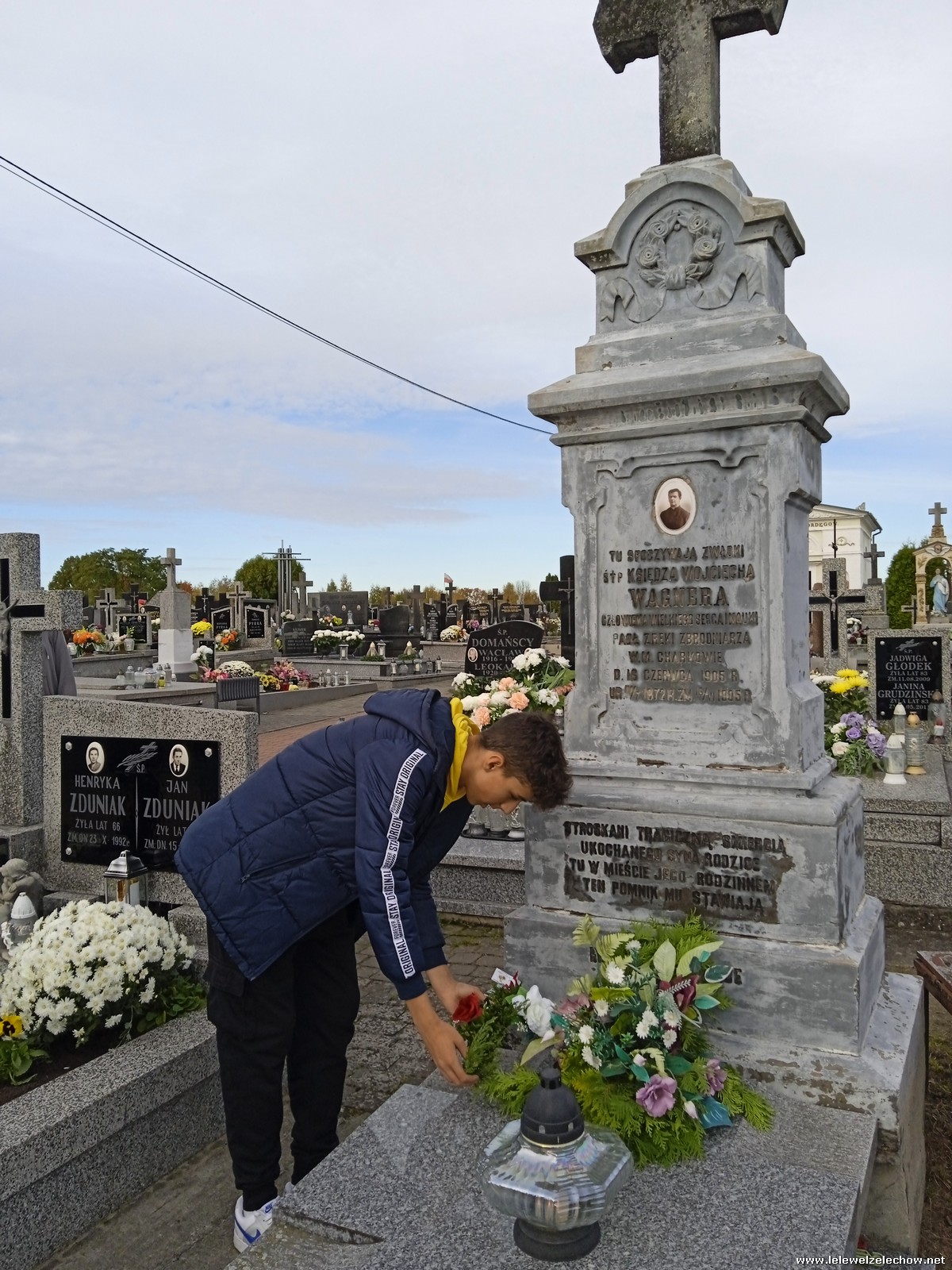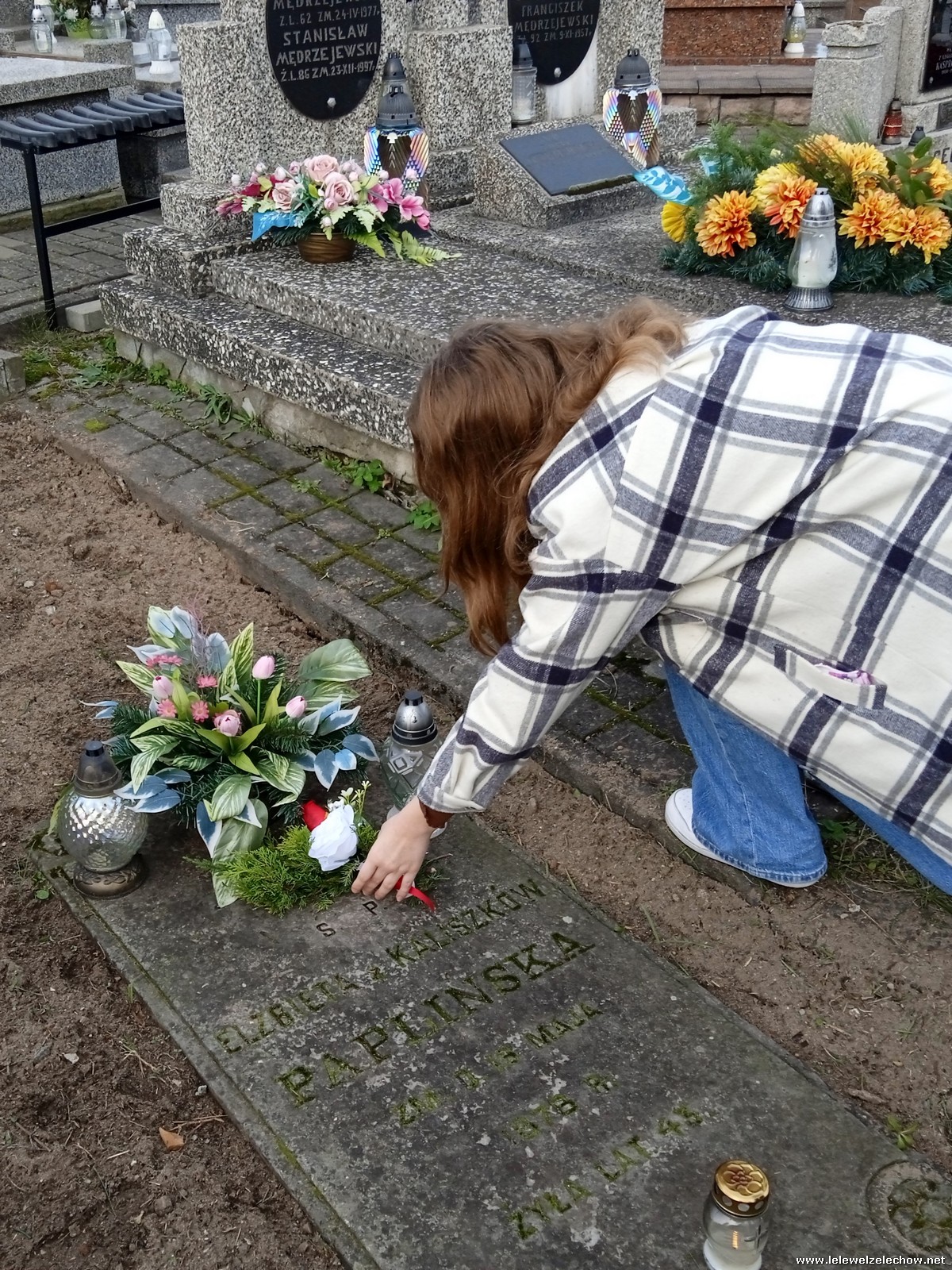 30 października, w dniu finału akcji, uczniowie z klasy 1c wraz z panią Dyrektor i panią Urszulą Kobielus, koordynatorem akcji w naszej szkole, udali się na miejscowy cmentarz. Licealiści złożyli wiązanki na grobach dawnych właścicieli ziemskich, księży, powstańców, działaczy konspiracji różnego czasu, żołnierzy września, żołnierzy AK, lekarzy, społeczników, nauczycieli… Kwiaty położyli również na zabytkowych, często zapomnianych nagrobkach. We wszystkich tych miejscach SU w dniu 1 listopada zapali znicze.