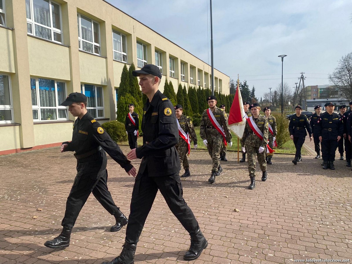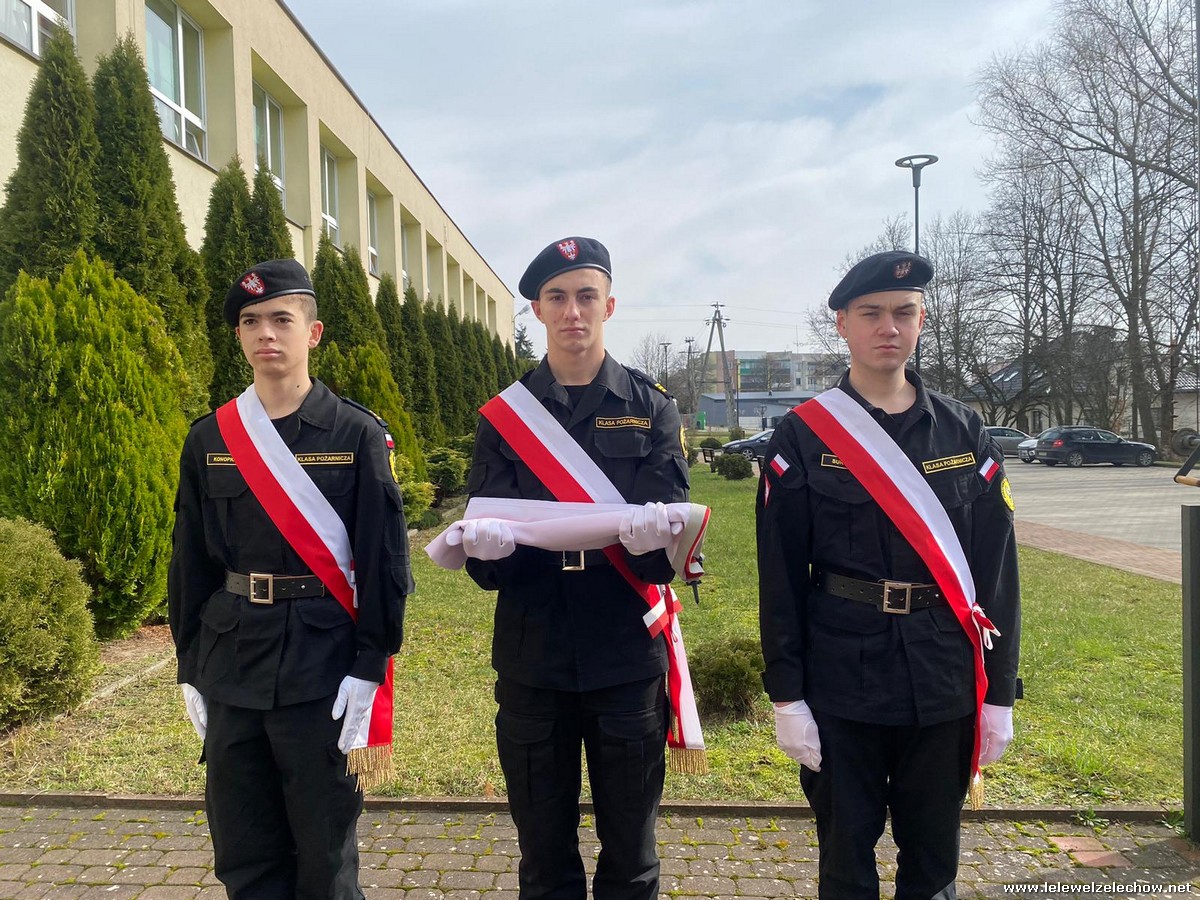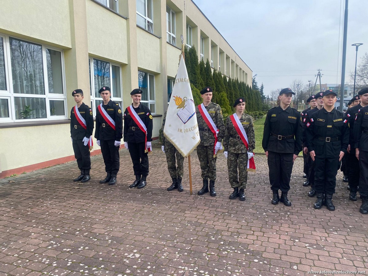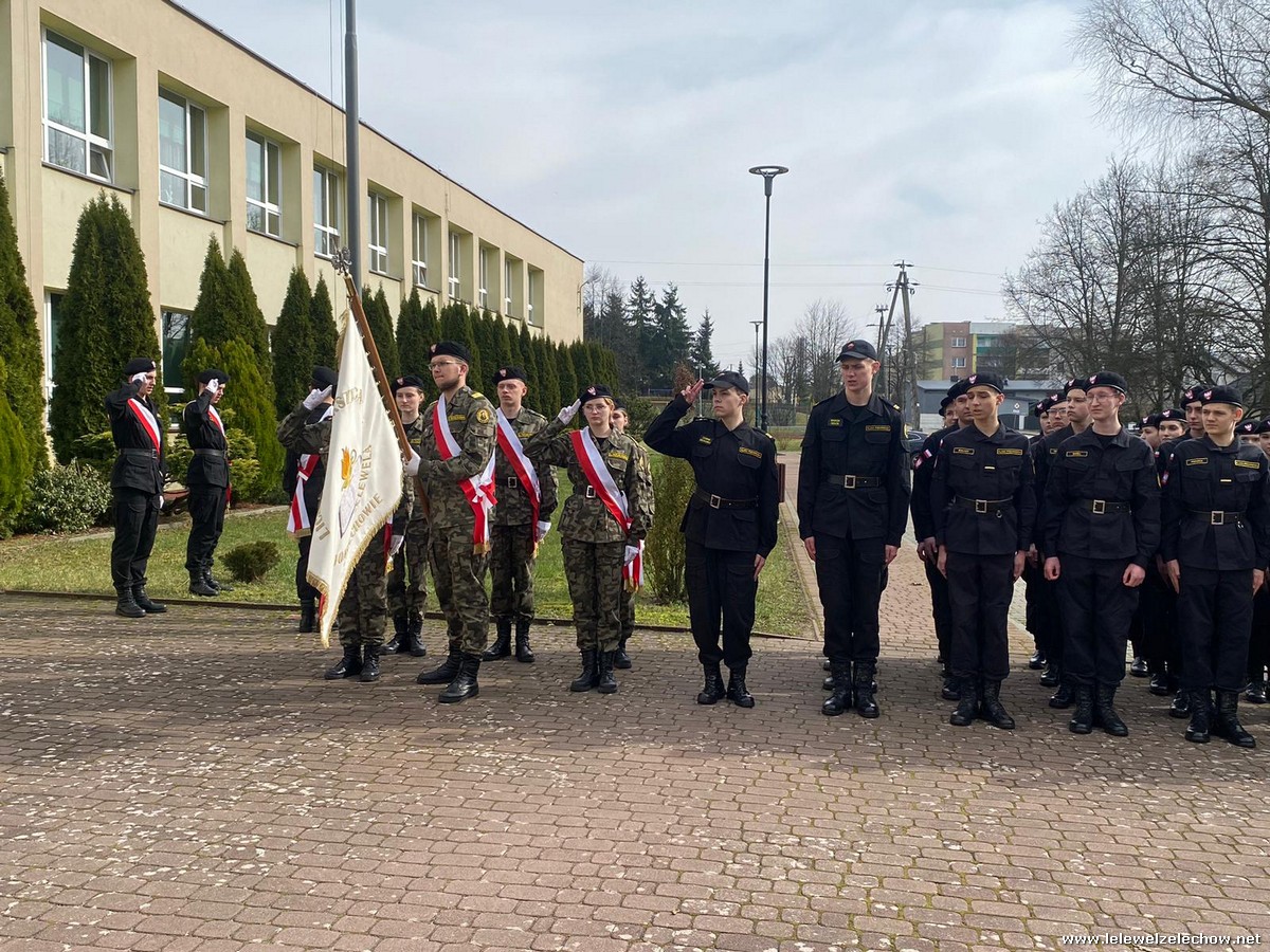 1 marca w Narodowym Dniu Pamięci Żołnierzy Wyklętych na placu szkolnym odbył się uroczysty apel kadetów pododdziałów szkolnych. W uroczystości wzięli udział kadeci innowacji pożarniczej i policyjno-wojskowej, poczet sztandarowy oraz poczet flagowy. Uroczystość rozpoczęła się od podniesienia flagi państwowej przy dźwiękach hymnu. Następnie dowódcy z poszczególnych klas złożyli meldunek dowódcy uroczystości - panu inspektorowi Stanisławowi Madejskiemu. Pani Urszula Kobielus,w zastępstwie dyrektor szkoły, odebrała meldunek o gotowości pododdziałów szkolnych do uroczystości oraz przypominała, że poprzez uroczysty apel kadeci oddają hołd żołnierzom tzw.drugiej konspiracji, antykomunistycznego i niepodległościowego podziemia.