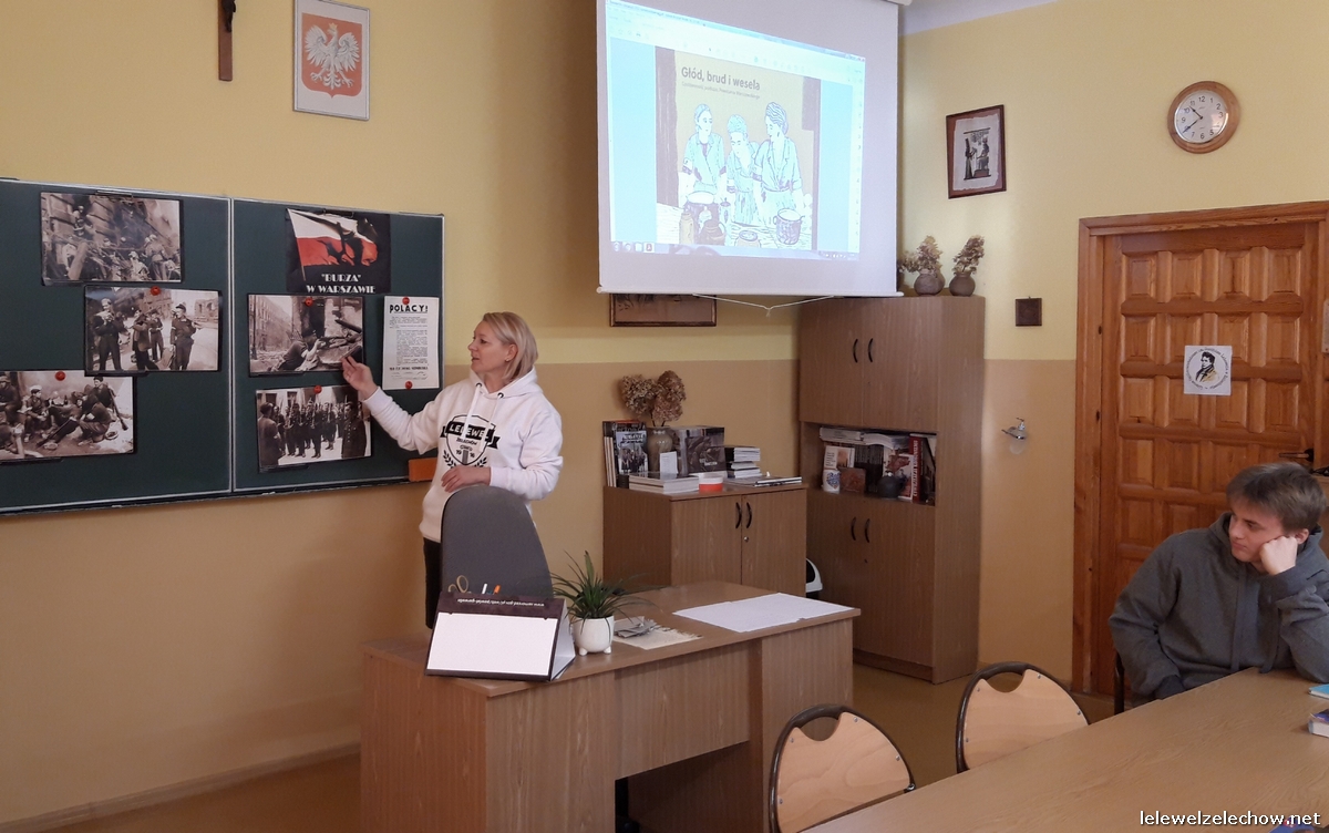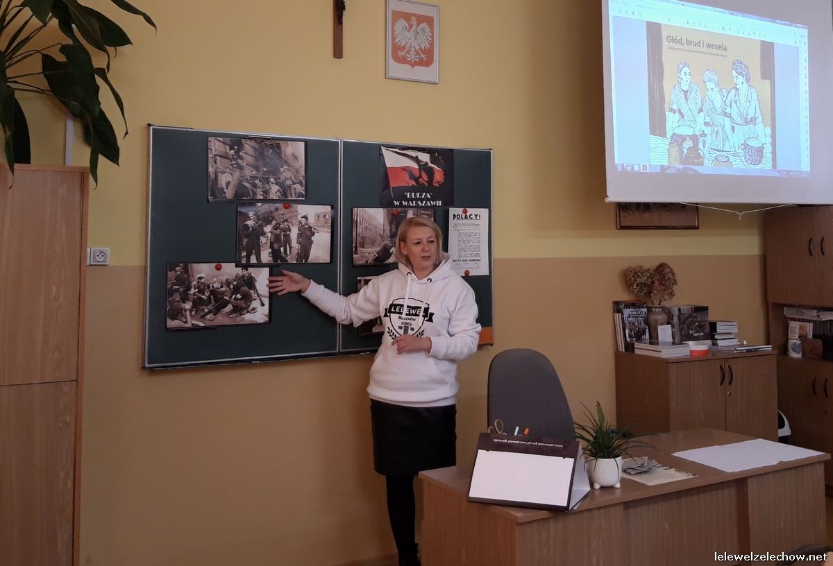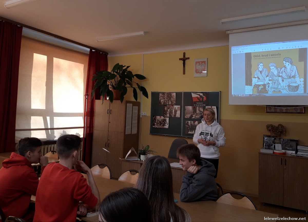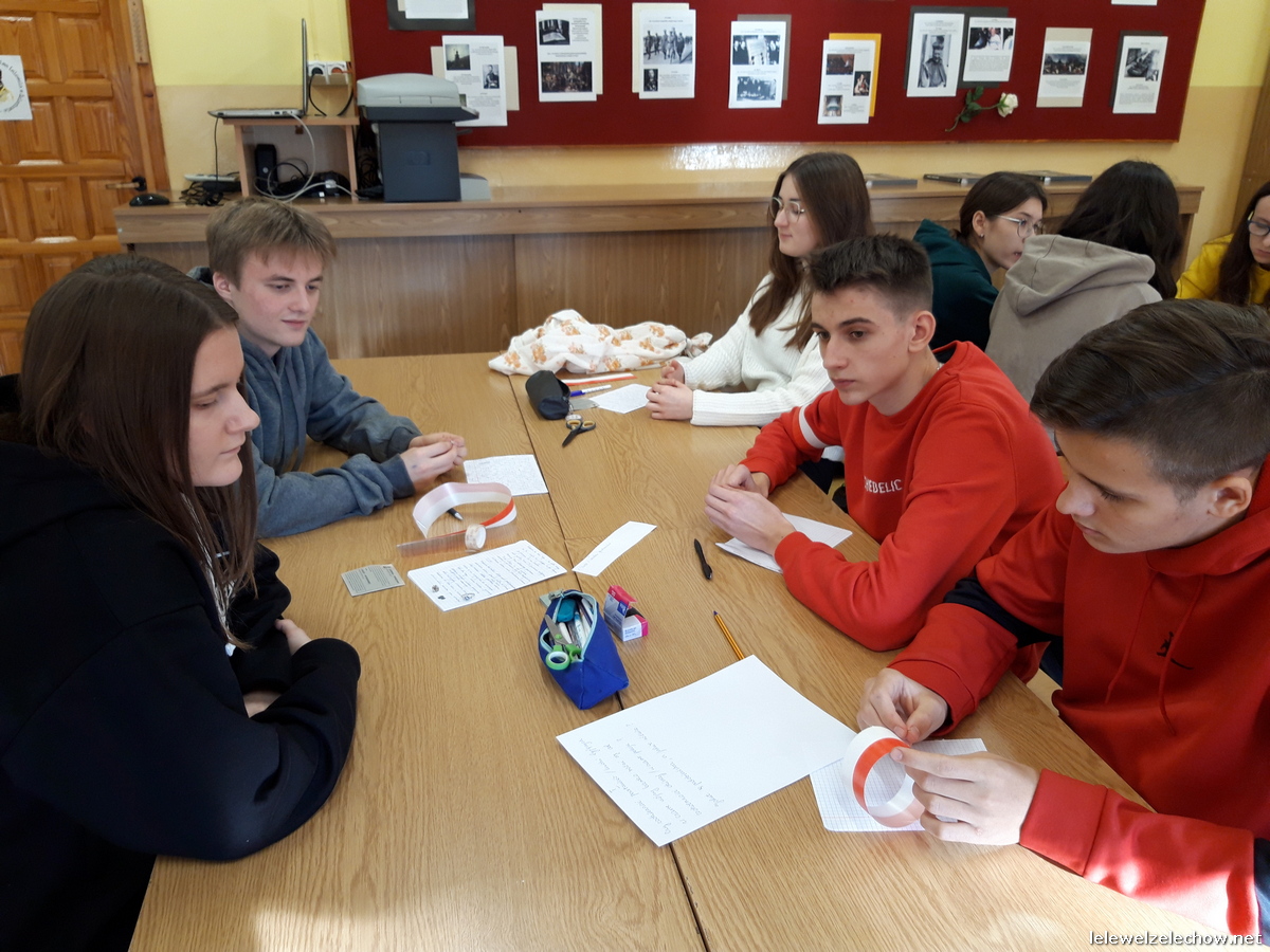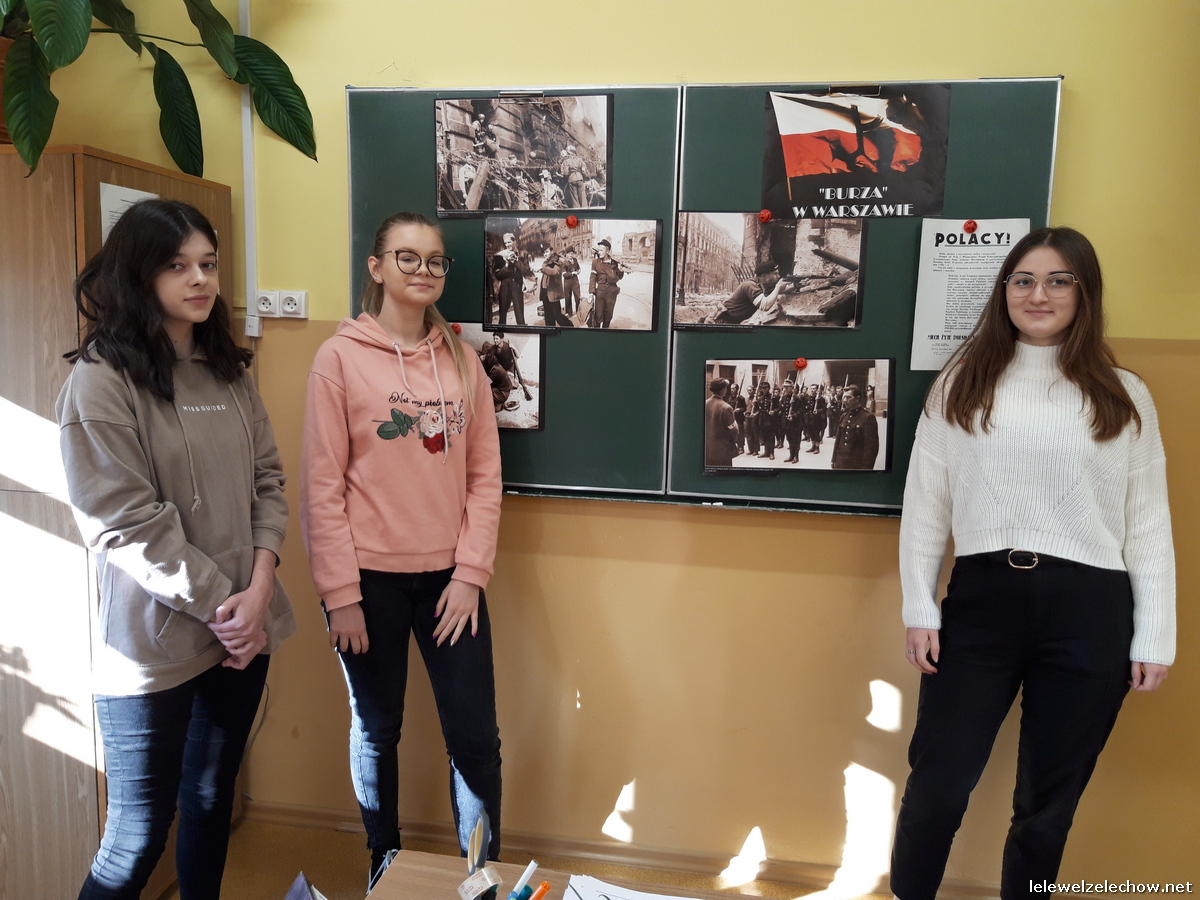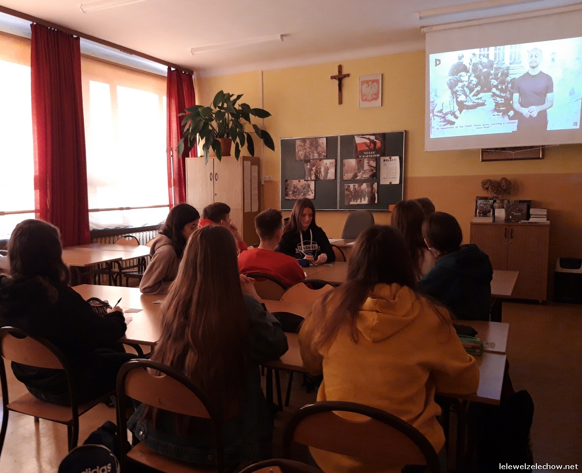 W ramach ogólnopolskiej akcji BohaterON - Włącz historię! uczniowie klasy 3c naszego liceum zrealizowali zajęcia pod kierunkiem nauczycielki historii - pani Urszuli Kobielus wg scenariusza Organizatora akcji p.t.,,Brud, głód i wesela. Codzienność podczas Powstania Warszawskiego”. Przed rozpoczęciem zajęć uczniowie przypięli znaczki - symbol Polski Walczącej lub założyli biało - czerwone opaski.