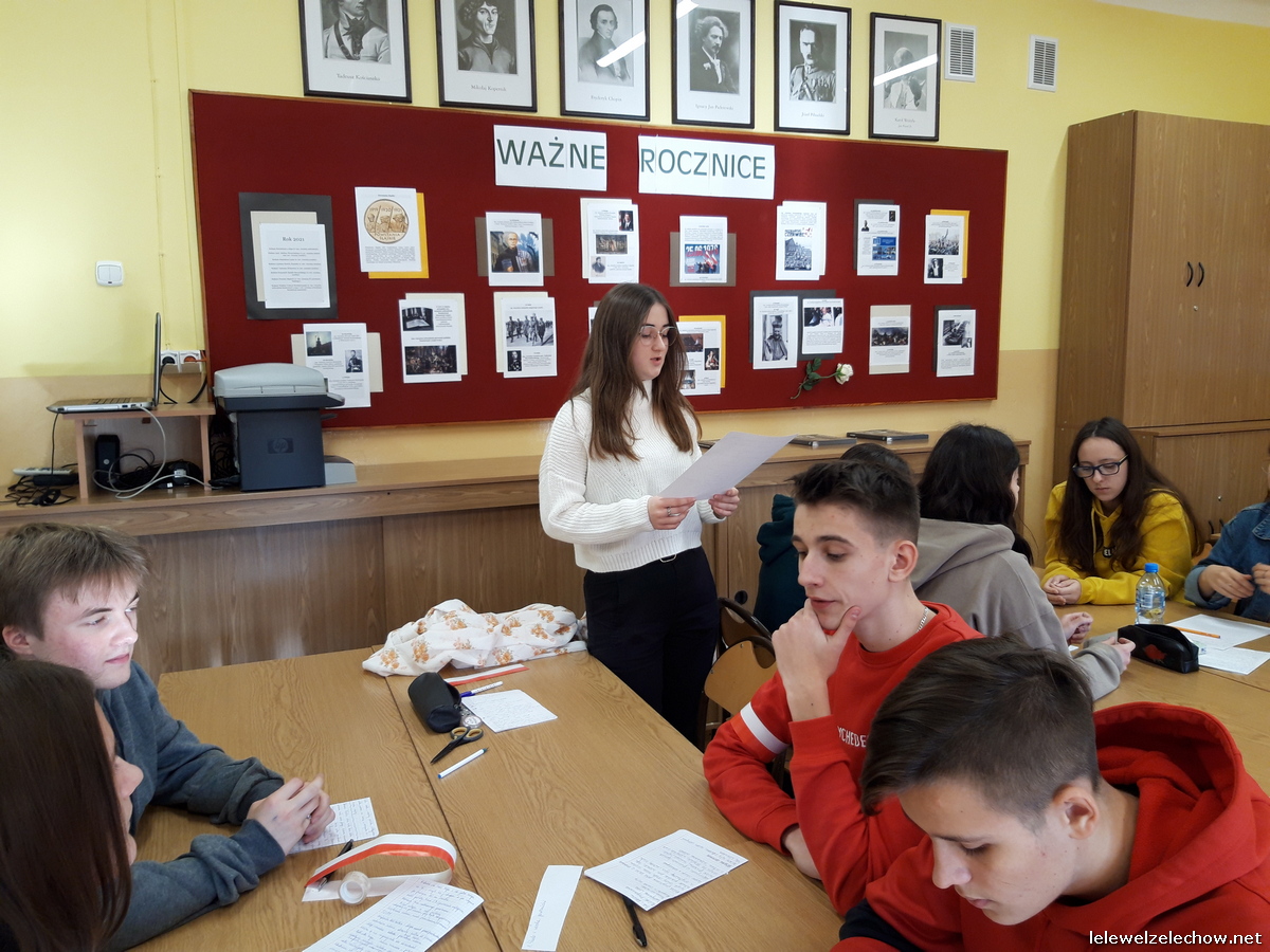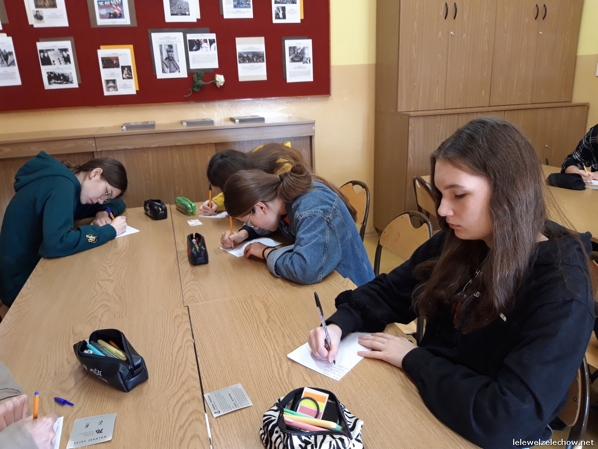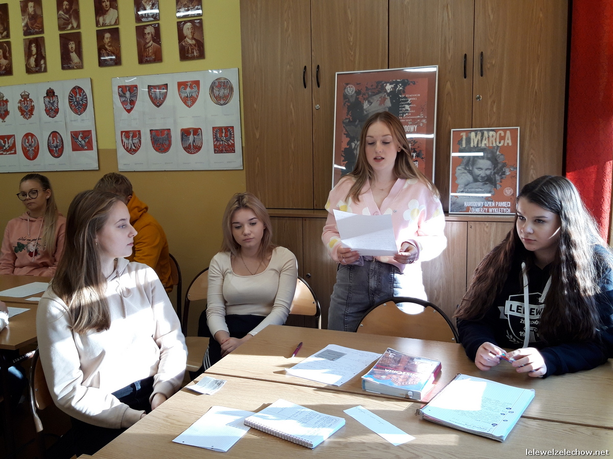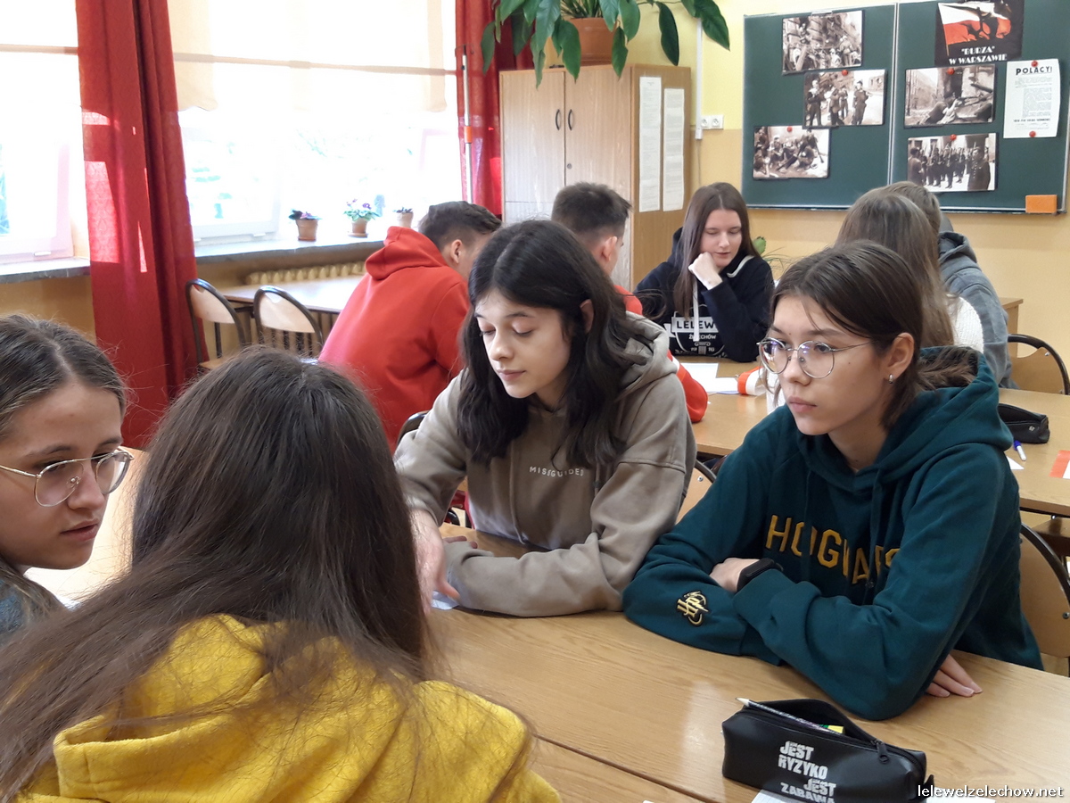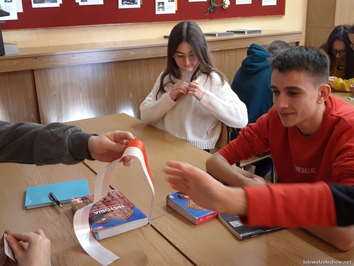 W ramach ogólnopolskiej akcji BohaterON - Włącz historię! uczniowie klasy 3c naszego liceum zrealizowali zajęcia pod kierunkiem nauczycielki historii - pani Urszuli Kobielus wg scenariusza Organizatora akcji p.t.,,Brud, głód i wesela. Codzienność podczas Powstania Warszawskiego”. Przed rozpoczęciem zajęć uczniowie przypięli znaczki - symbol Polski Walczącej lub założyli biało - czerwone opaski.