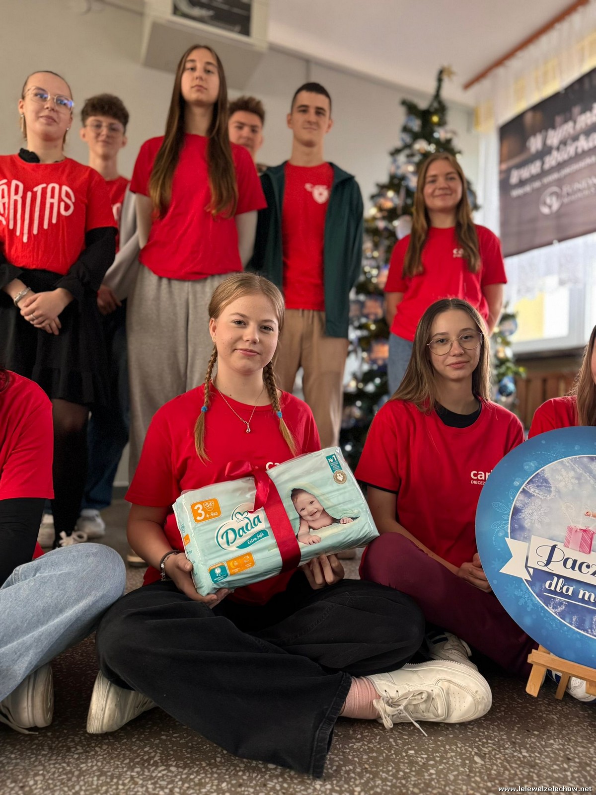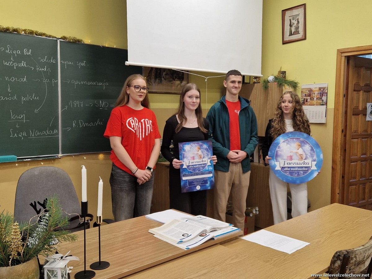 Społeczność naszej Szkoły po raz kolejny bierze udział w charytatywnej akcji Paczuszka dla maluszka. Przynosząc pod naszą szkolną choinkę artykuły pielęgnacyjne dla najmłodszych dzieci (pieluszki, chusteczki nawilżane, kremy itp.) możemy wesprzeć ośrodki preadopcyjne. Tradycyjną pamiątka udziału w akcji jest bombką zabrana z naszej choinki, którą można udekorować drzewko w swoim domu.
