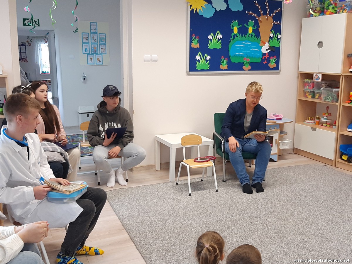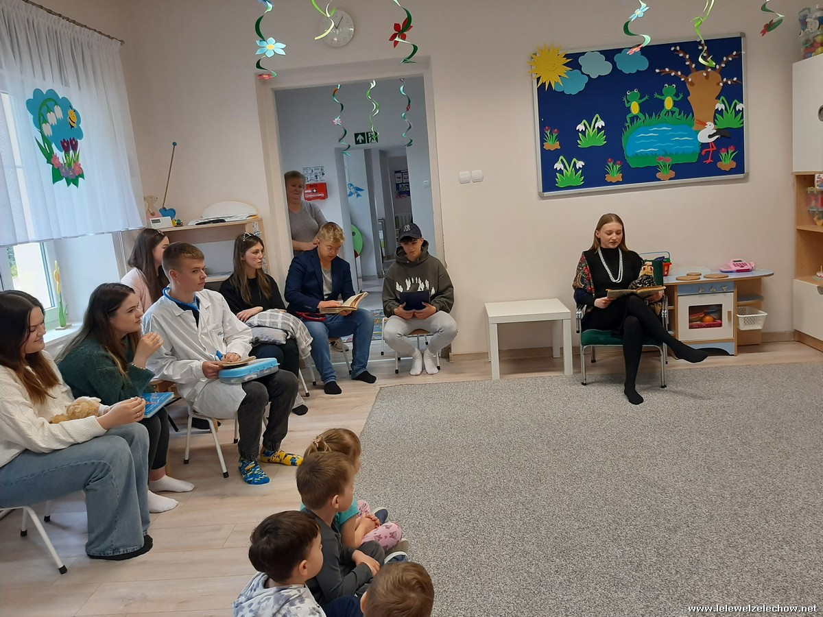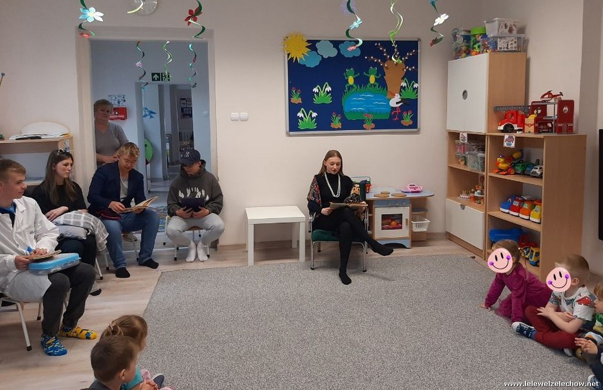 24 kwietnia uczniowie klasy 2b zostali zaproszeni przez grupę „Żabki” z żelechowskiego przedszkola, aby wziąć udział we wspólnym czytaniu w ramach kampanii społecznej „Cała Polska Czyta Dzieciom” oraz realizowanej przez przedszkole innowacji „Uczymy się miłości do książek”.