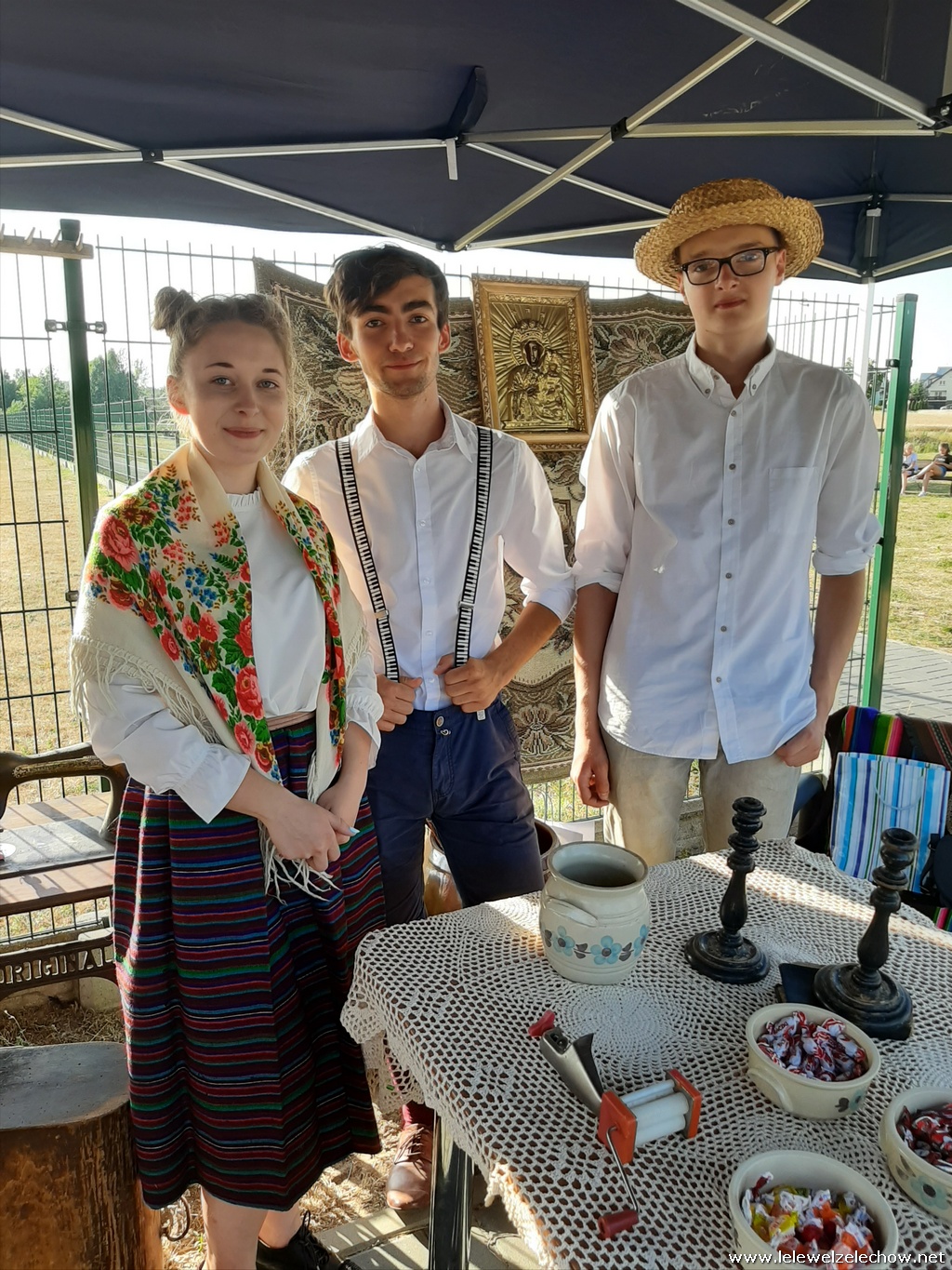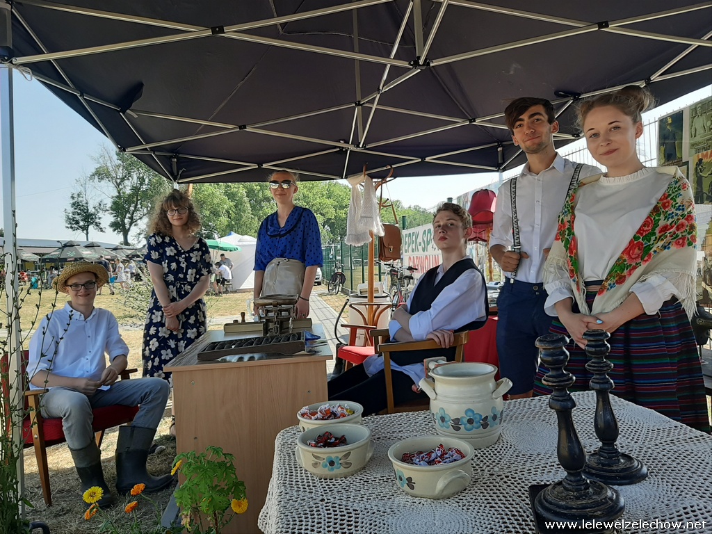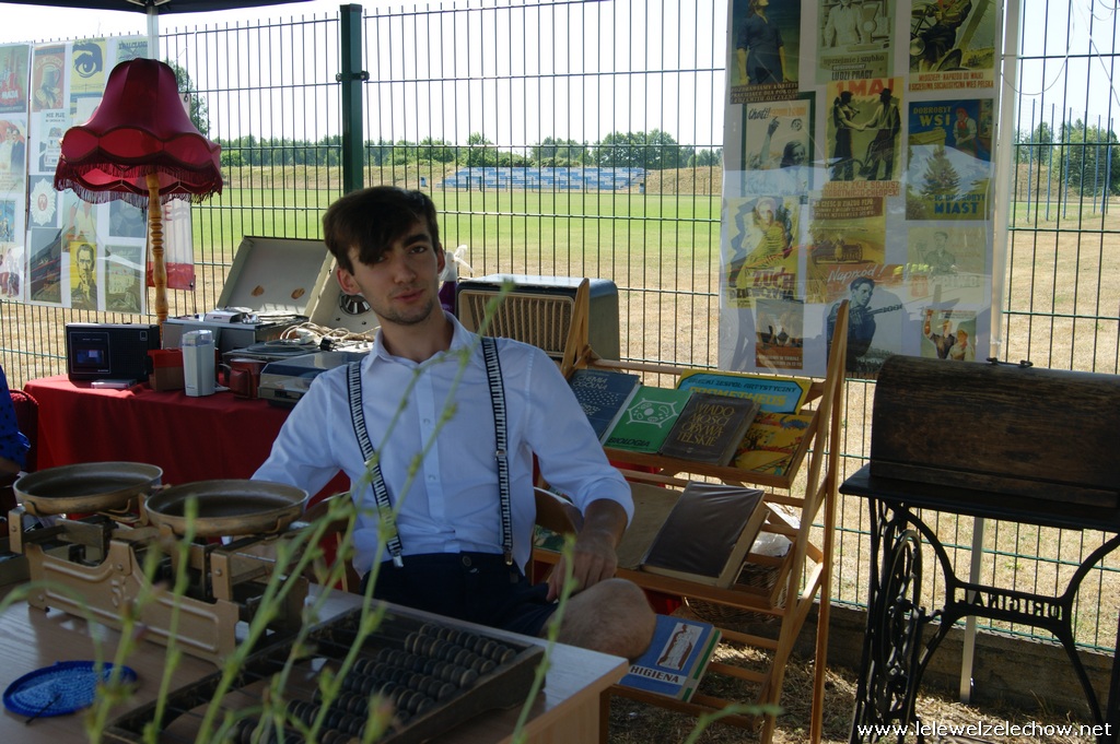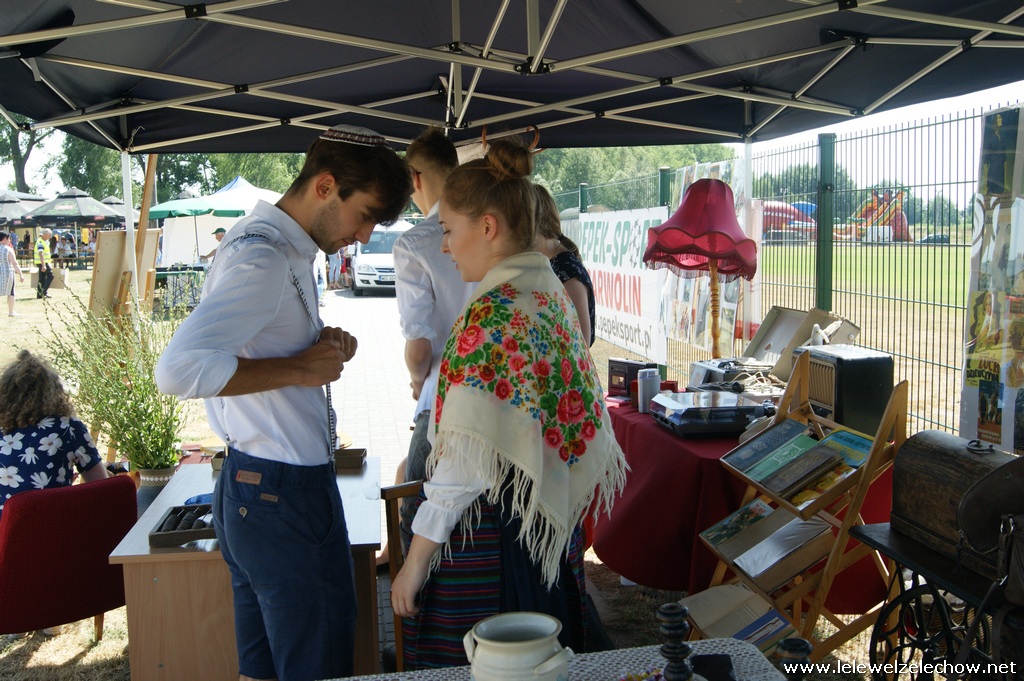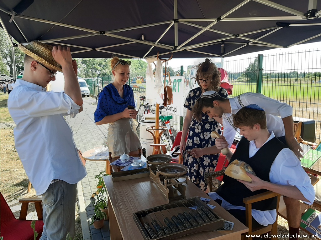 Dni Żelechowa i nasza wystawa przedmiotów codziennego użytku z XX w. Wśród nich znalazła się maszyna do szycia ,,Singer" (?), pralka ,,Frania", płyty analogowe, kasety magnetofonowe, stare monety, telefon, liczydła i wiele, wiele innych. Wystawę podzieliliśmy na część wiejską, część miejską i część handlową. Każdy z uczniów dopasował się strojem do danej strefy. Mimo upału dzielnie stali na swoich stanowiskach sami również się bawiąc. Wystawa cieszyła się zainteresowanie dorosłych i dzieci. Wśród odwiedzających znalazł się także Burmistrz Żelechowa Łukasz Bogusz oraz ...pani Halina Frąckowiak, która została obdarowana przez nas jednym z eksponatów, który sobie wypatrzyła.