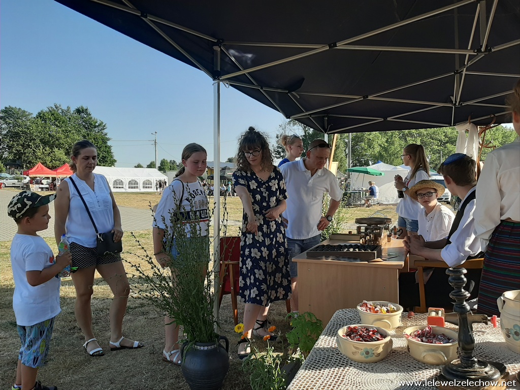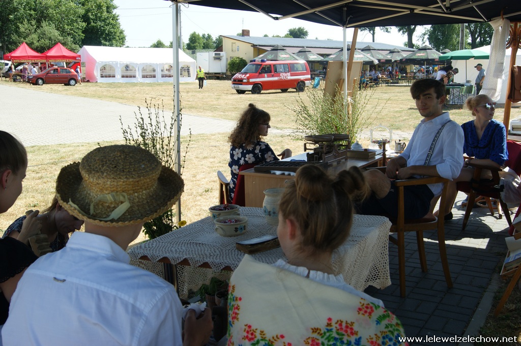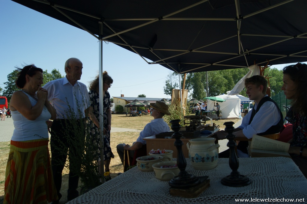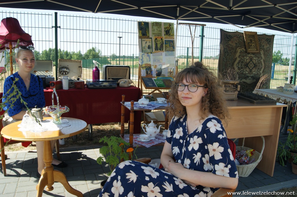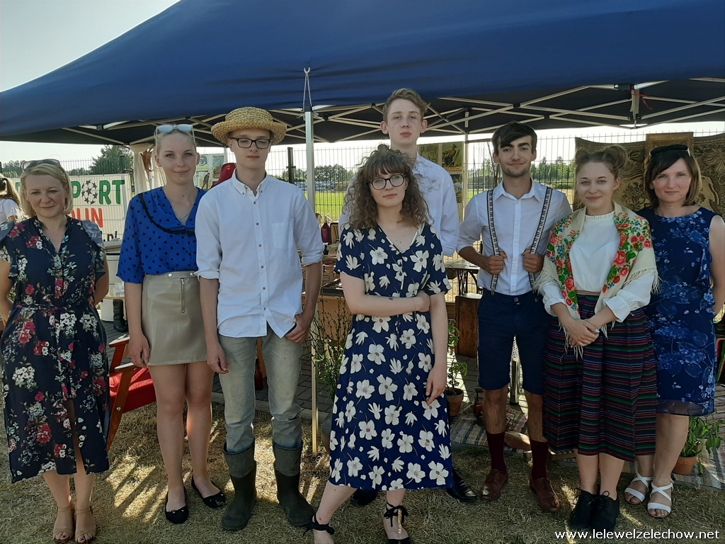 Dni Żelechowa i nasza wystawa przedmiotów codziennego użytku z XX w. Wśród nich znalazła się maszyna do szycia ,,Singer" (?), pralka ,,Frania", płyty analogowe, kasety magnetofonowe, stare monety, telefon, liczydła i wiele, wiele innych. Wystawę podzieliliśmy na część wiejską, część miejską i część handlową. Każdy z uczniów dopasował się strojem do danej strefy. Mimo upału dzielnie stali na swoich stanowiskach sami również się bawiąc. Wystawa cieszyła się zainteresowanie dorosłych i dzieci. Wśród odwiedzających znalazł się także Burmistrz Żelechowa Łukasz Bogusz oraz ...pani Halina Frąckowiak, która została obdarowana przez nas jednym z eksponatów, który sobie wypatrzyła.