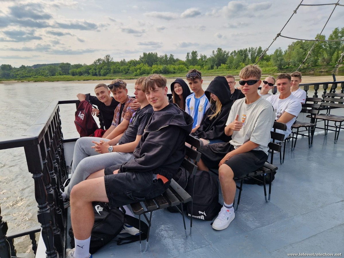 Kolejną atrakcją był rejs statkiem po Wiśle, podczas którego młodzież podziwiała urokliwe widoki i panoramę z widokiem na zamek w Janowcu. Wieczorem nie zabrakło czasu na wspólną integrację przy ognisku i pieczeniu kiełbasek.