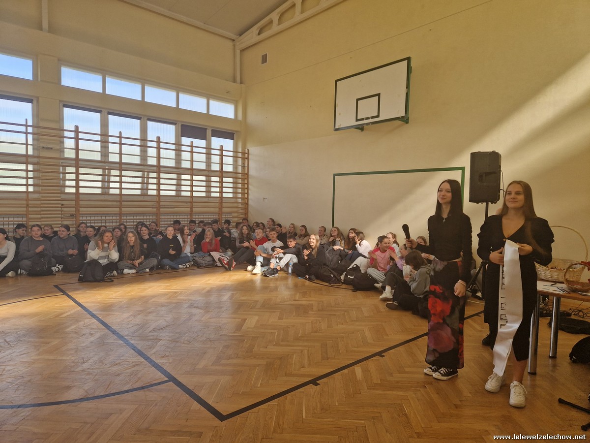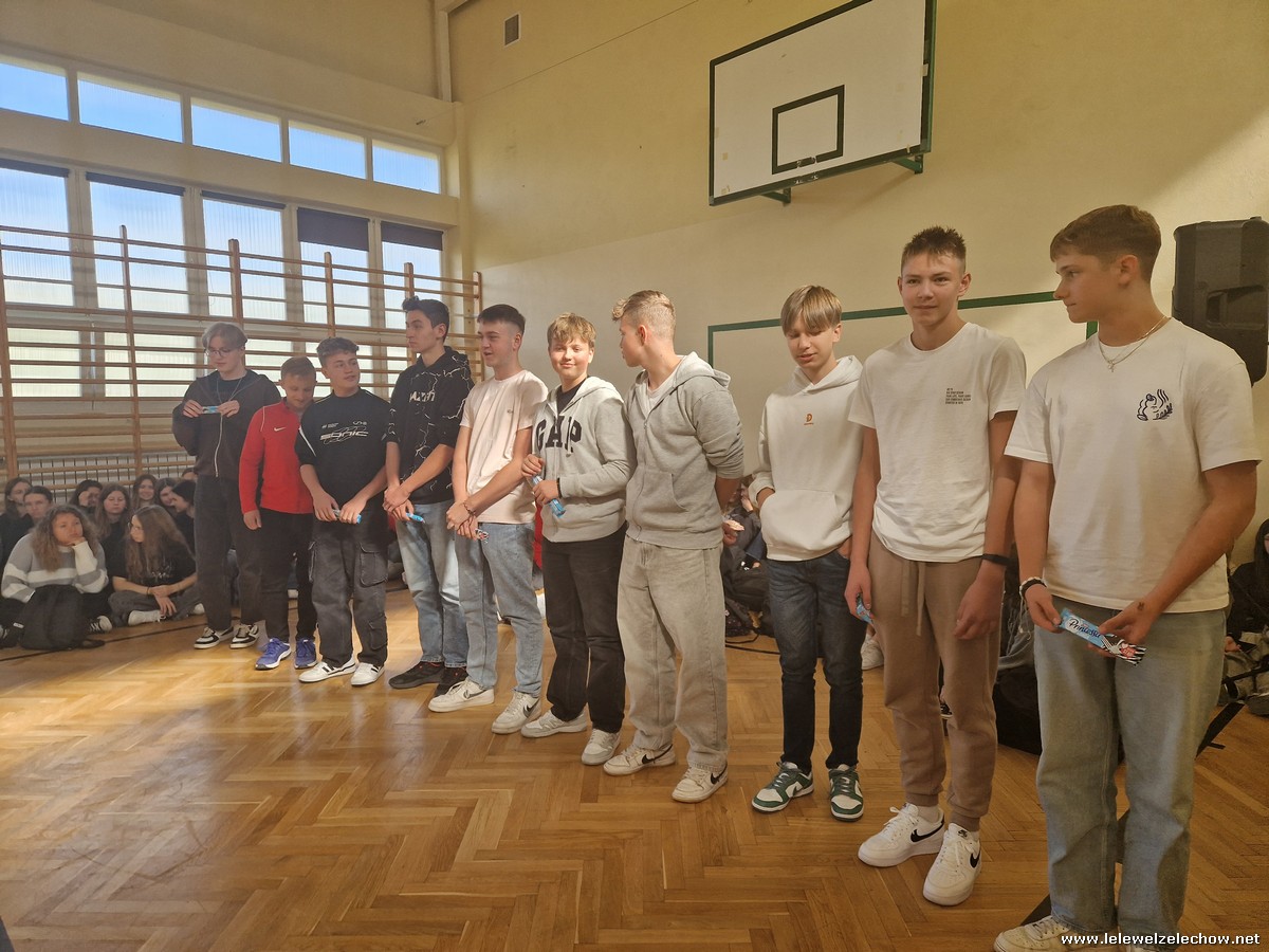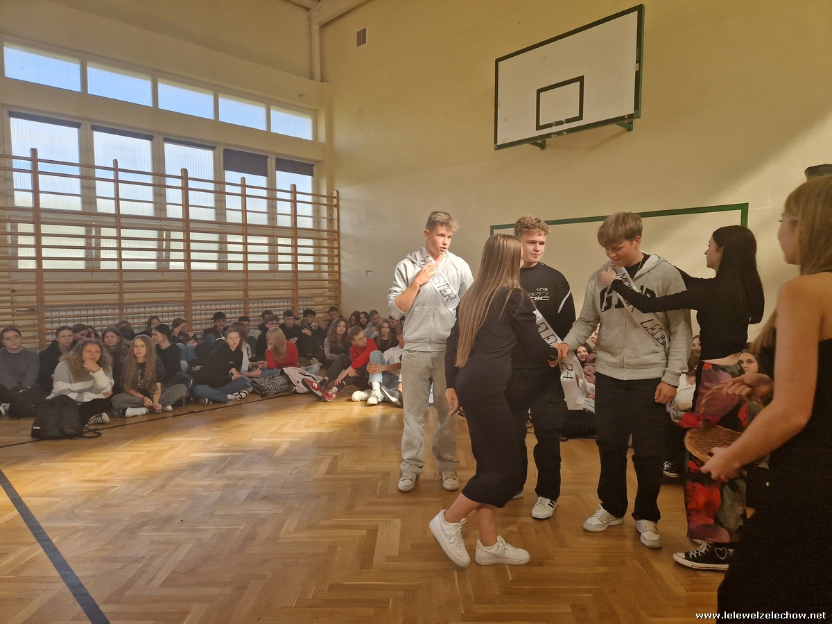 Dziś, 30 września, w naszej szkole odbył się Dzień Chłopaka. Dziewczęta z poszczególnych klas wytypowały misterów swoich klas, którzy dziś walczyli o zaszczytny tytuł Mistera szkoły. Chłopcy zostali postawieni przed nie lada wyzwaniami jak zaplatanie warkoczy, wykonanie pompek czy rozwiązanie rebusów. Z tych konkurencji zwycięsko wyszli Maks, Dawid i Hubert, którzy spotkali się w dogrywce. Ostatecznie Misterem szkoły został Dawid, natomiast wicemisterami Maks i Hubert. Misterem nauczycieli kolejny rok z rzędu został sor Ekiert.